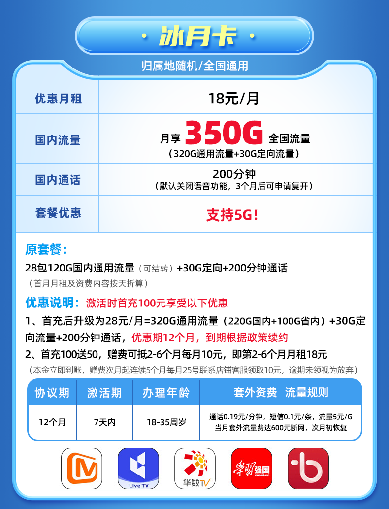 【流量Plus版·支持5G】到期可续约!省内归属地!仅发湖南!冰月卡