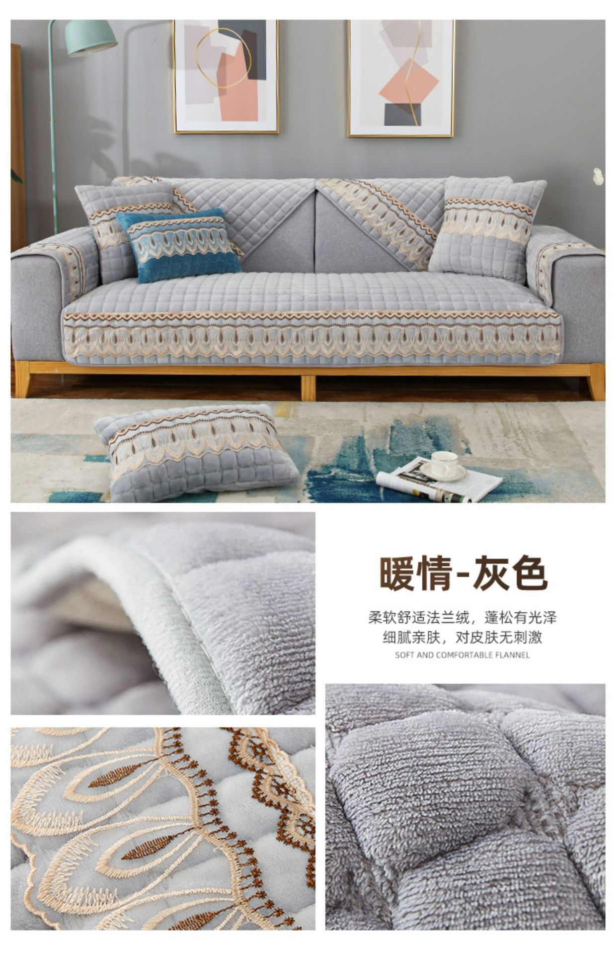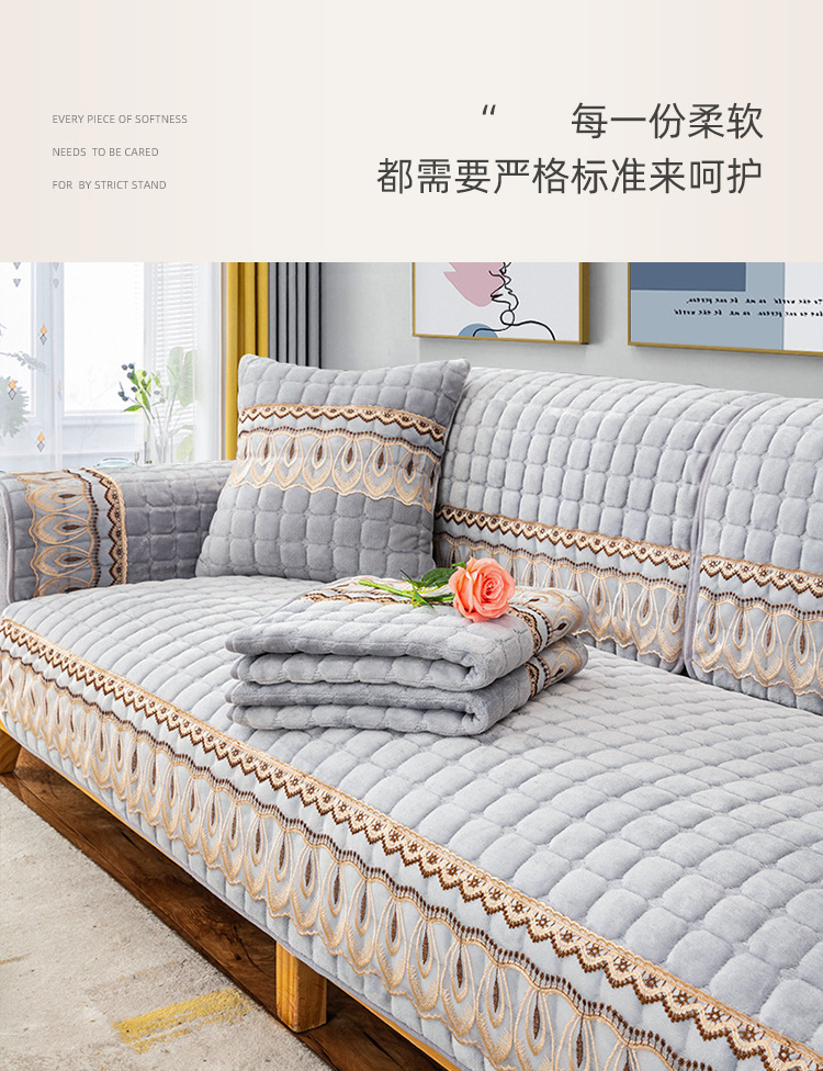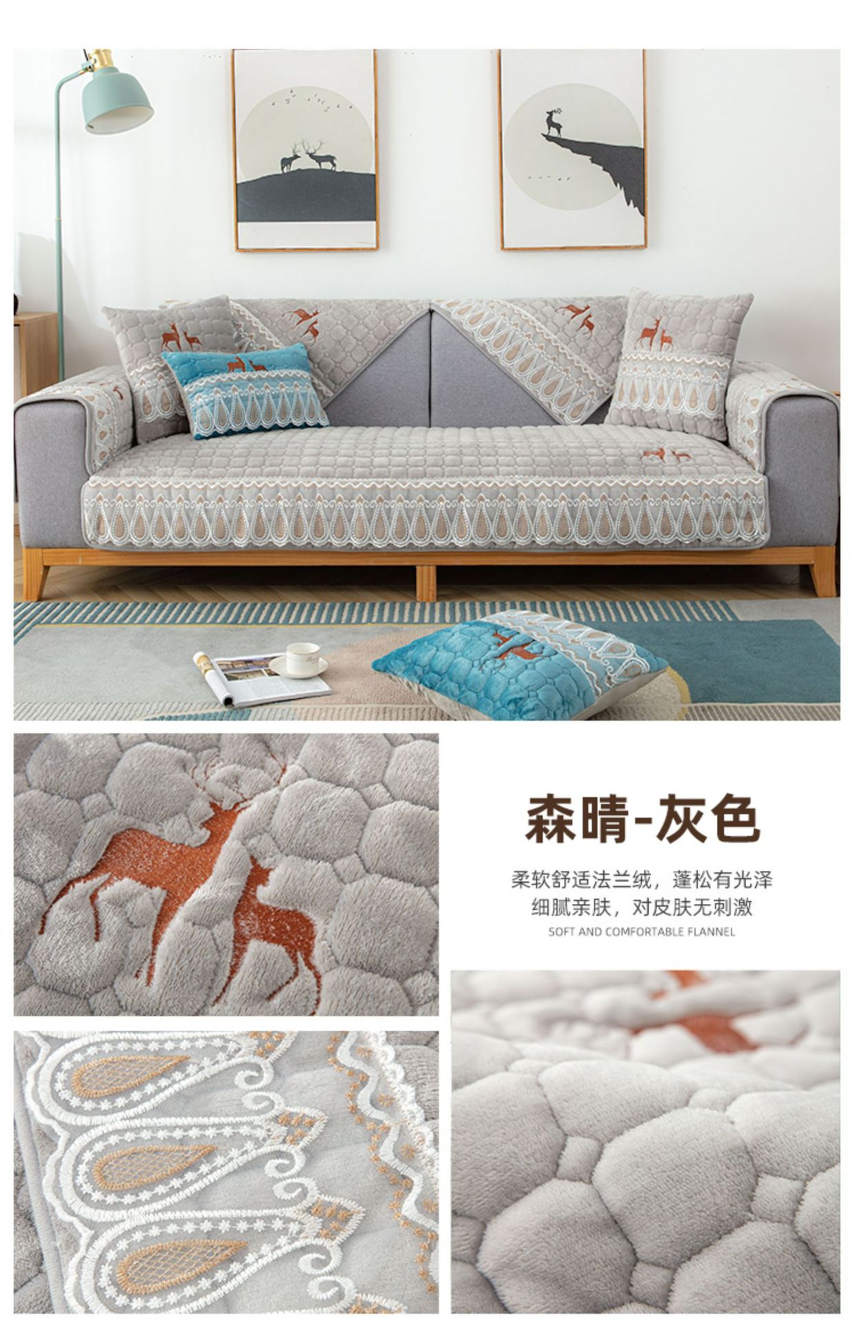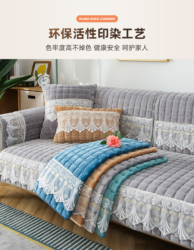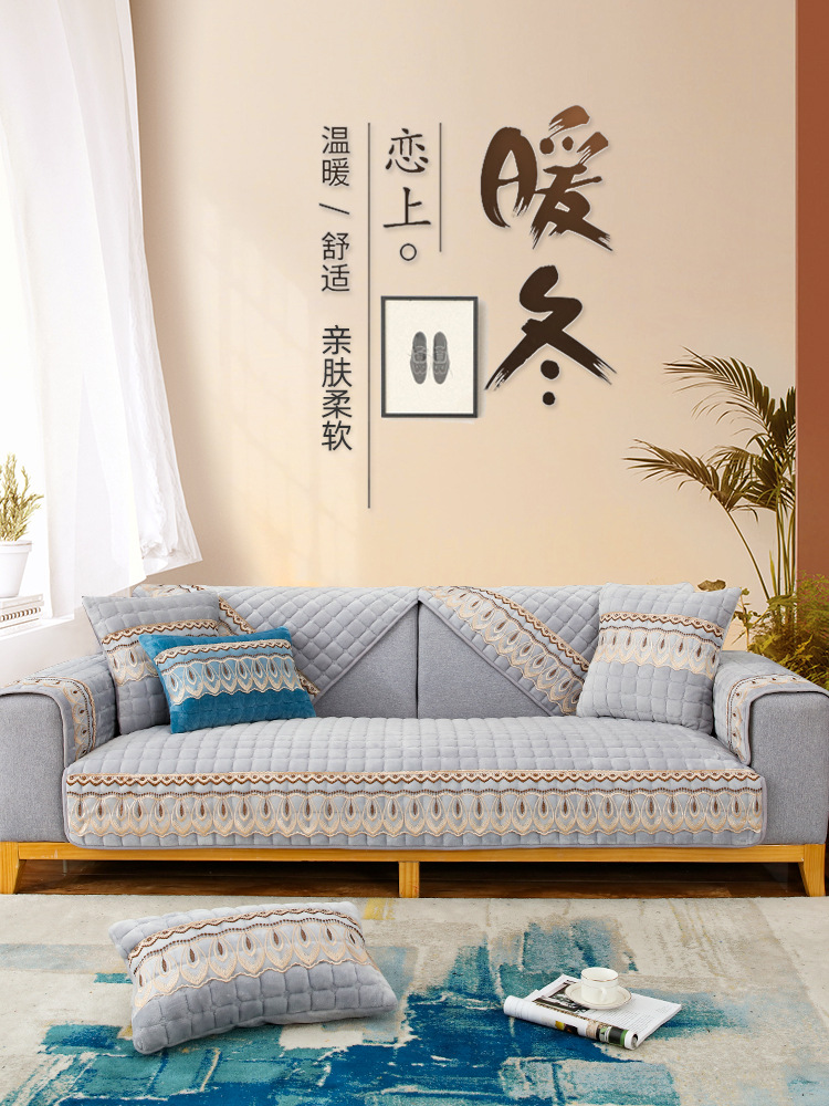 【低至5折购】秋冬季欧式风毛绒沙发垫 现代简约加厚防滑沙发套罩
