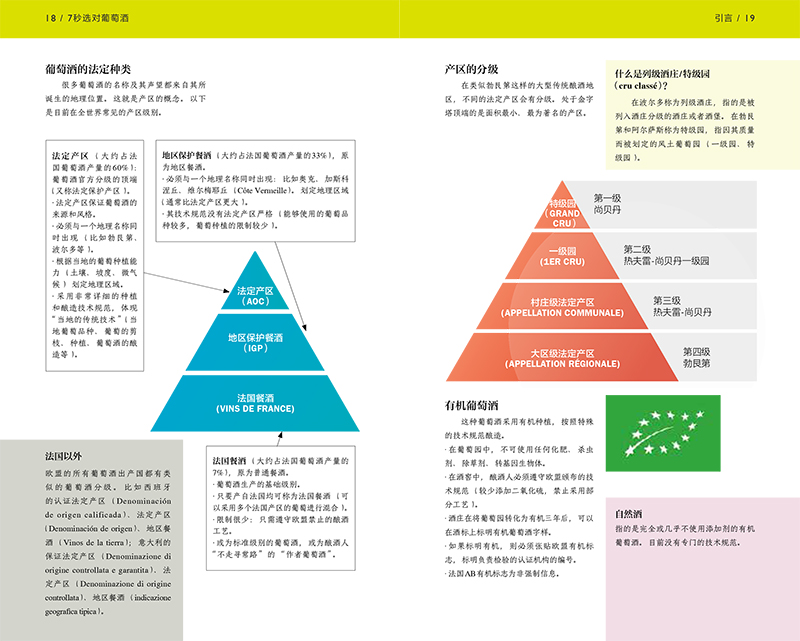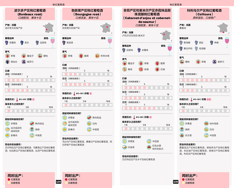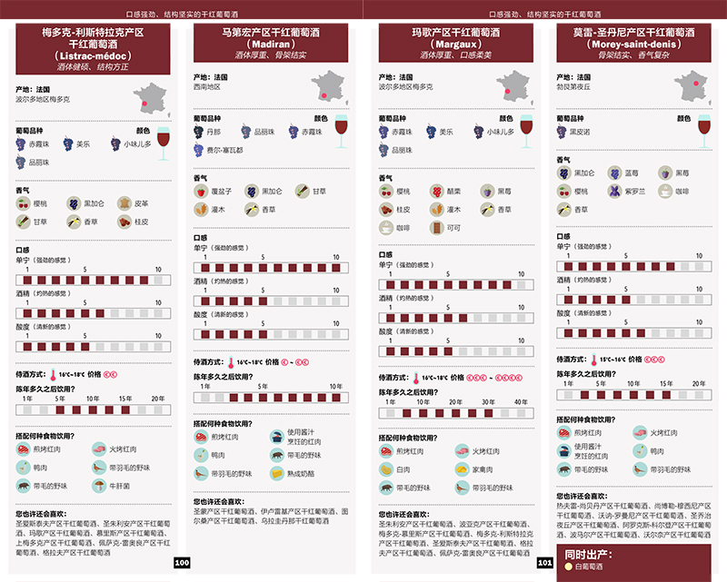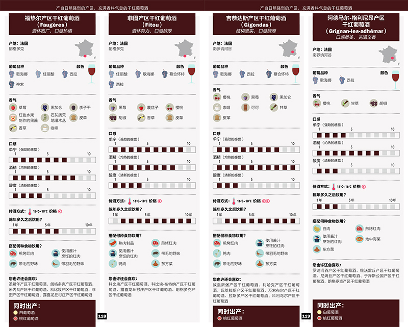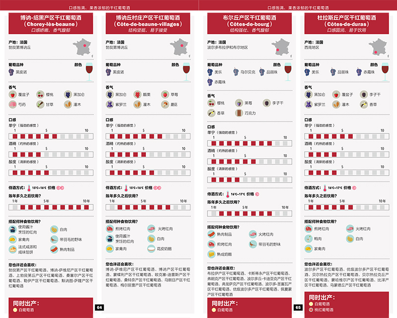 2.图表化!全书以图表、图标及插图的形式介绍了300余种法国及世界其他国家和地区的葡萄酒,让读者一目了然能够掌握挑选葡萄酒的要点。