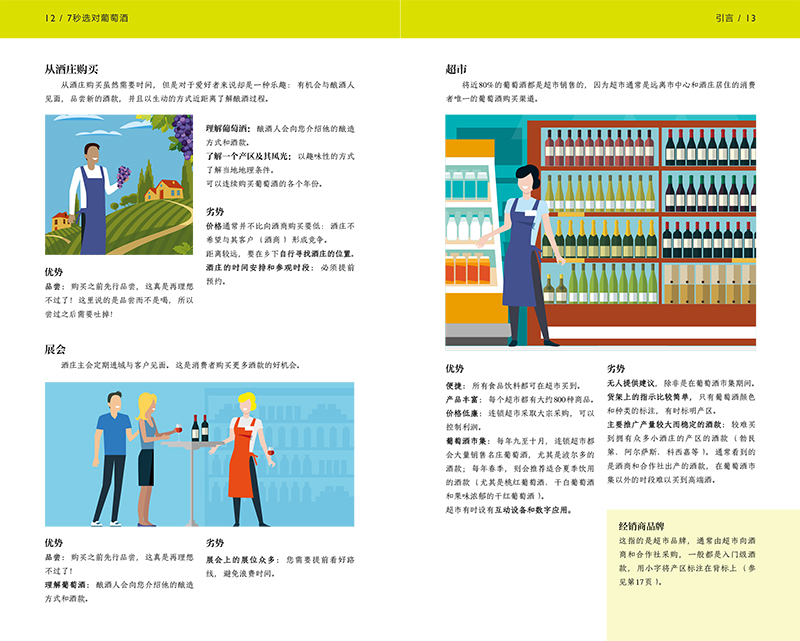 1.专业化!阿歇特集团出版的酒类书籍一直在酒类行业享有盛誉,《7秒选对葡萄酒》由阿歇特编撰,简明扼要地介绍了葡萄酒的知识点,例如,顾客应该去哪里购买葡萄酒?如何从葡萄酒的酒瓶形状大致了解葡萄酒的类型?如何从酒标迅速了解葡萄酒的信息?如何品鉴葡萄酒?葡萄酒应该如何搭配食物?