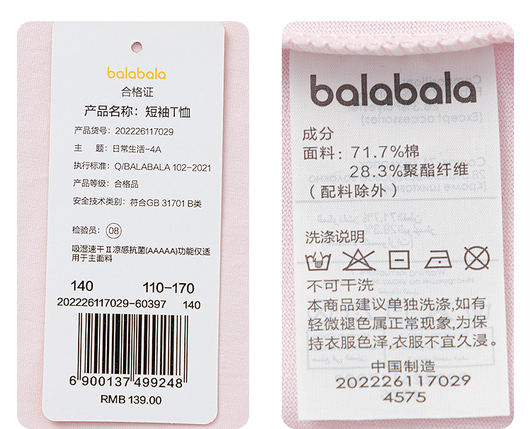 【商场同款】巴拉巴拉童装女童短袖t恤儿童2026新款夏装速干凉感