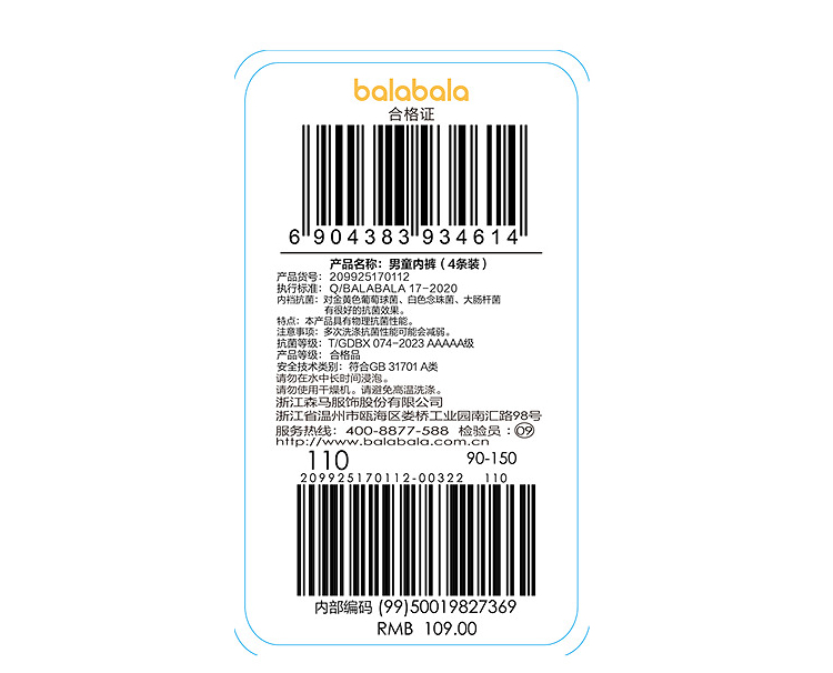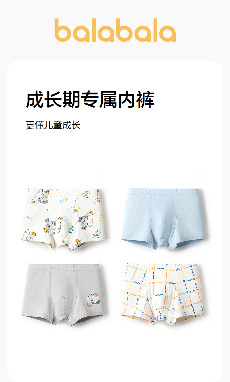 巴拉巴拉男童内裤棉平角儿童四角短裤舒适亲肤宝宝不夹PP四条装