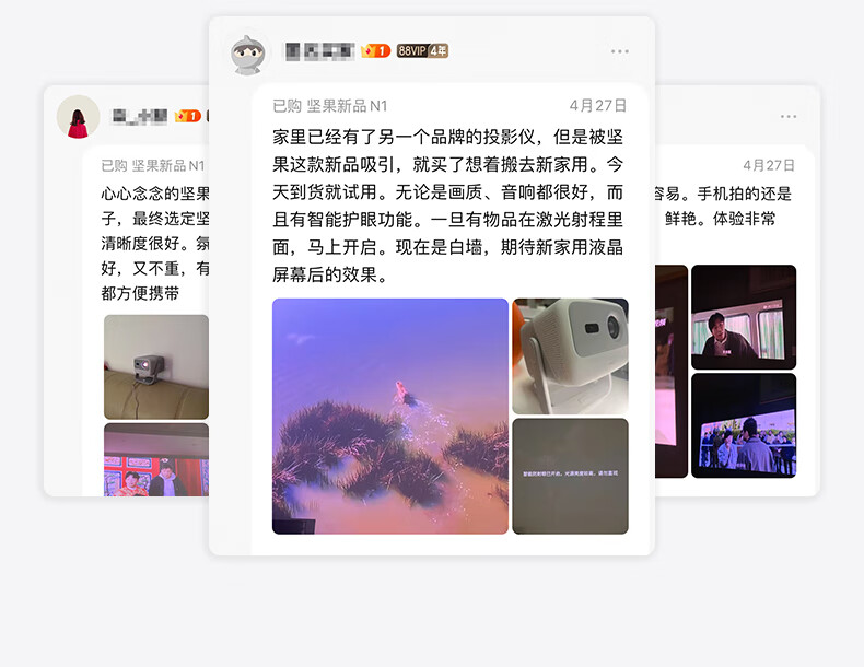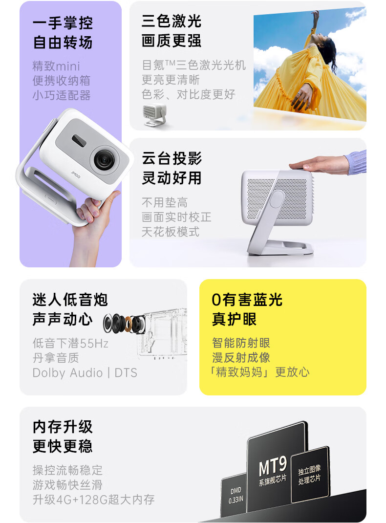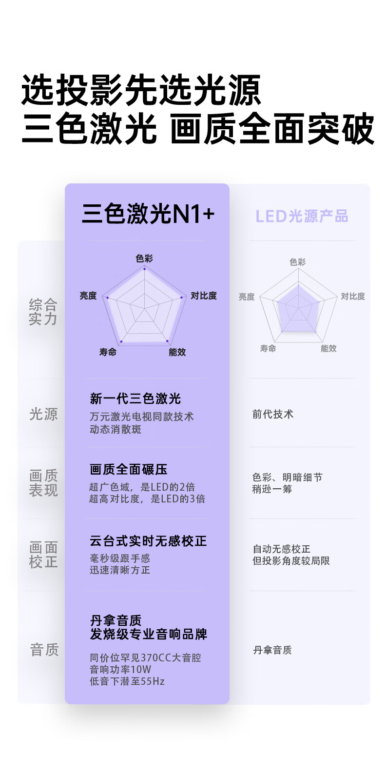 坚果(JMGO)N1+投影仪家用三色激光云台投影 办公智能家庭影院 单机