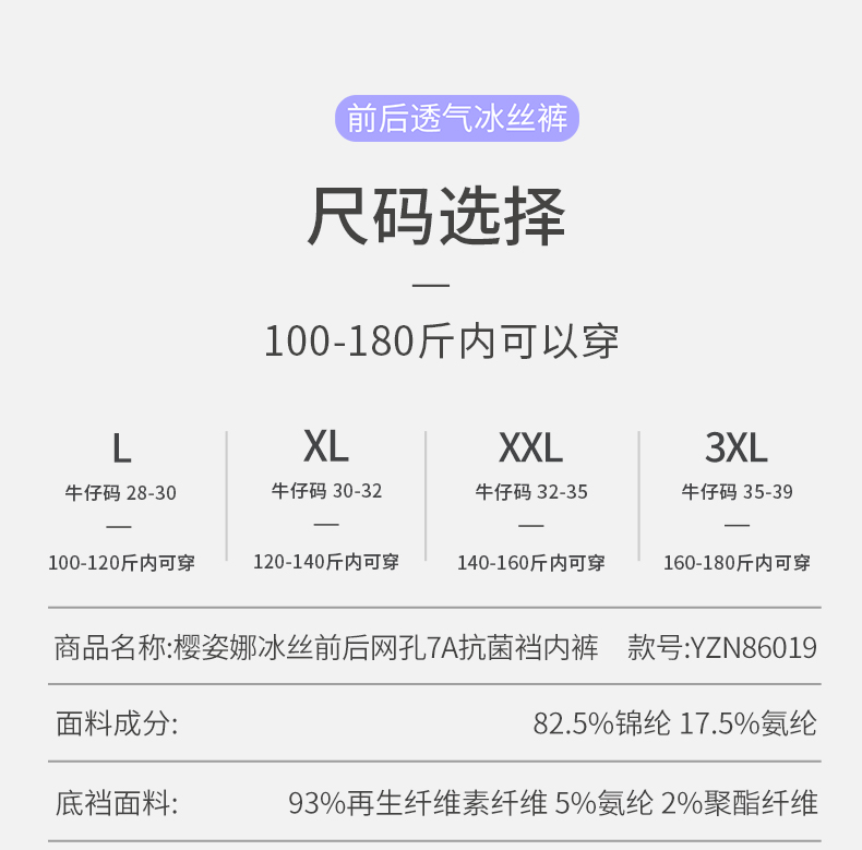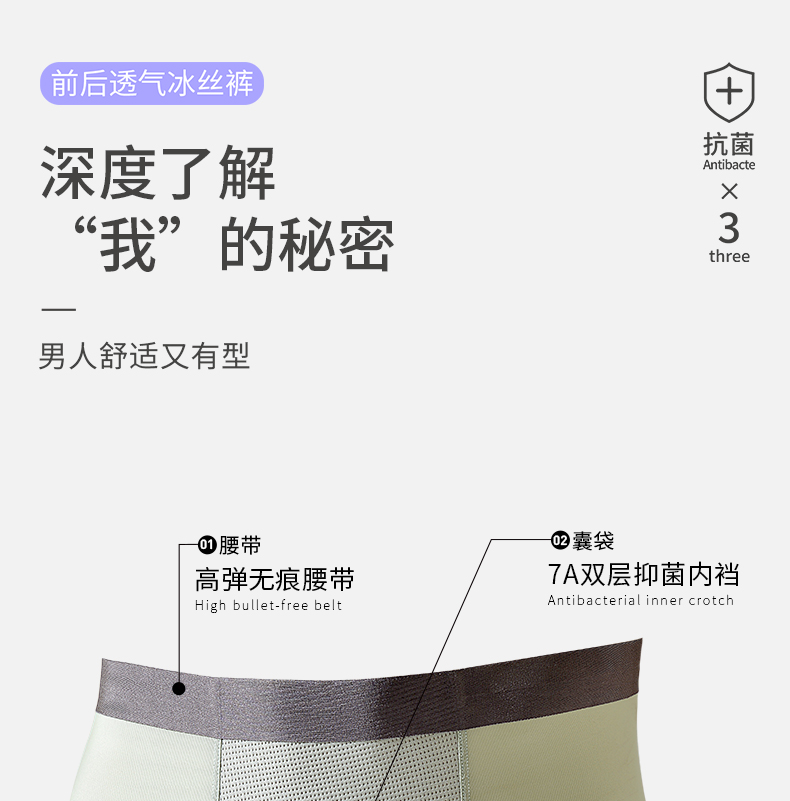 【樱姿娜上新】男款夏日冰感空调裤-WL86019,3条礼盒装