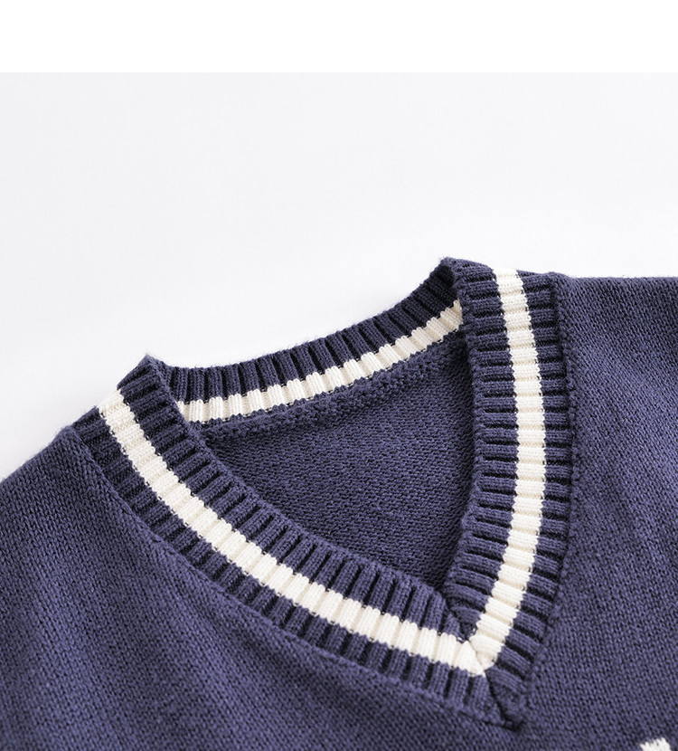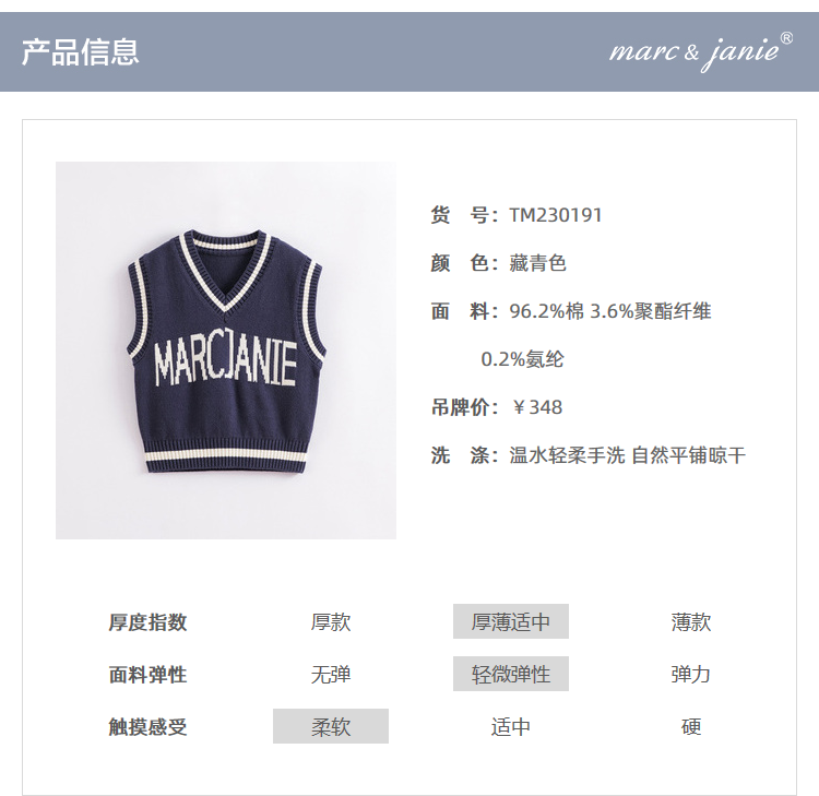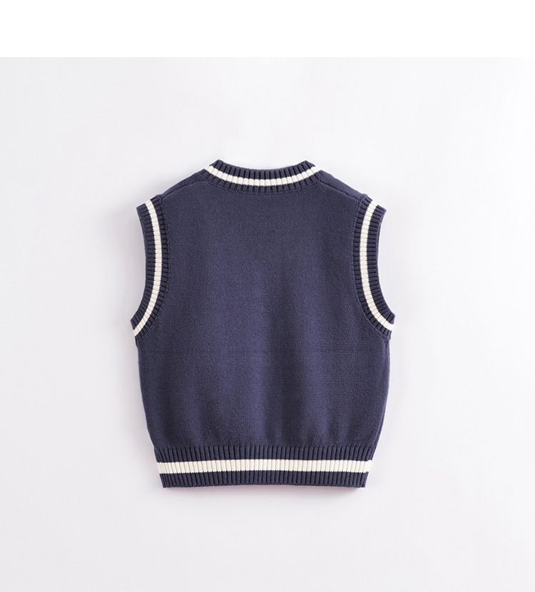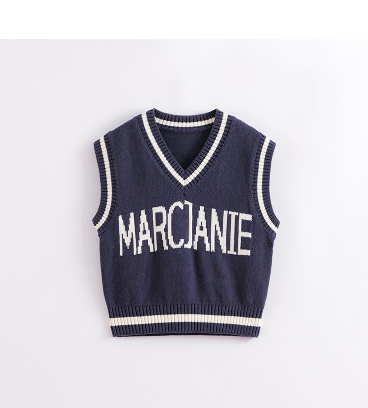 马克珍妮春装新款 男女童学院风字母V领针织马甲230191