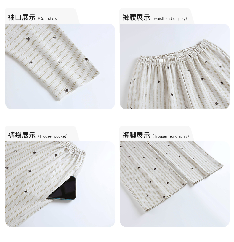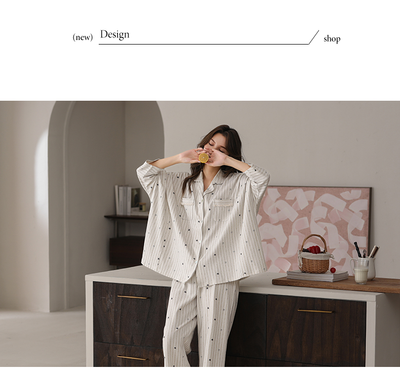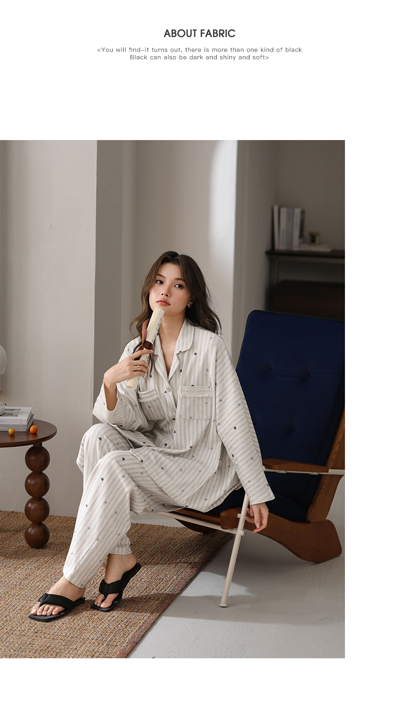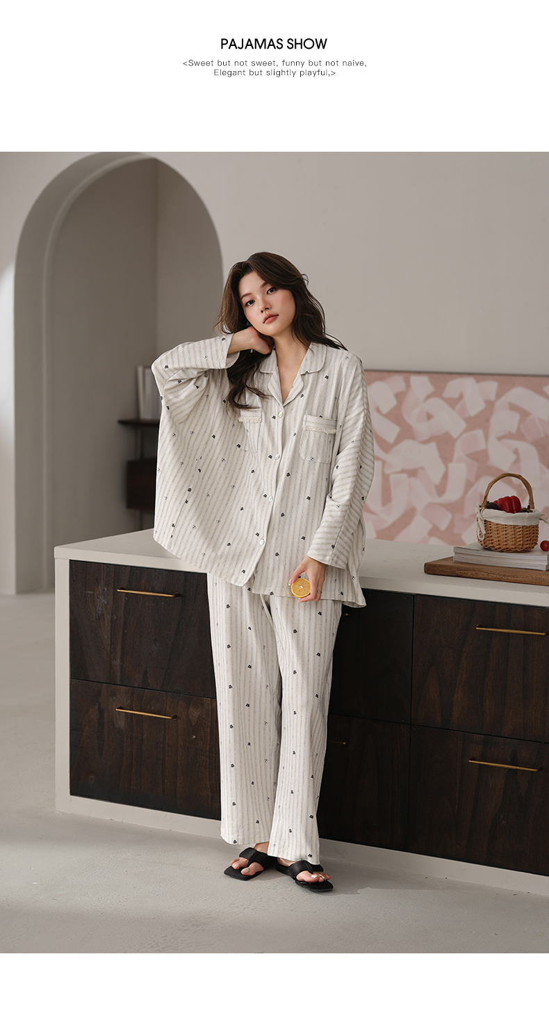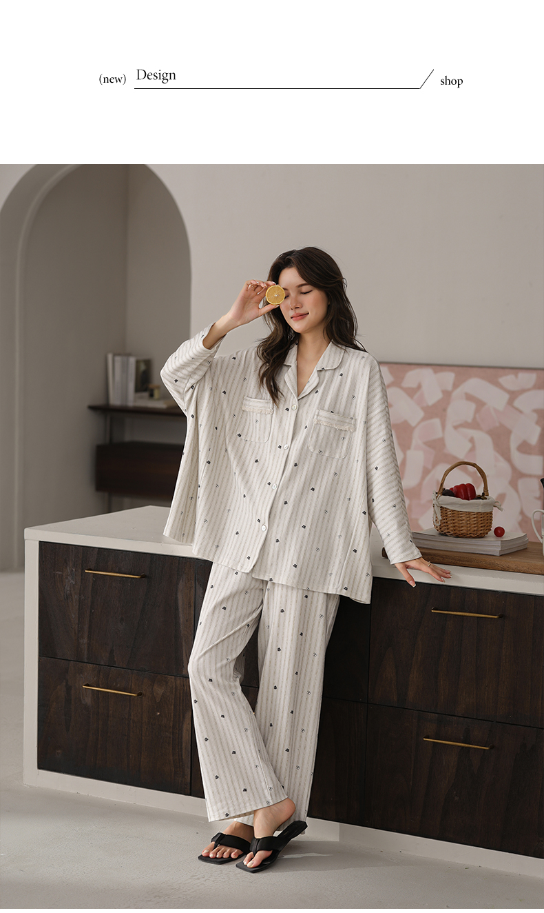可人儿春秋季带胸垫泡泡绵女士长袖长裤睡衣可外出小众家居服套装