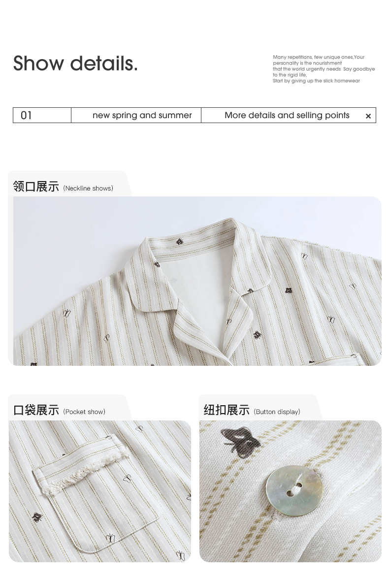可人儿夏季情侣纯棉睡衣简约休闲薄款条纹睡裙女可外穿家居服套装
