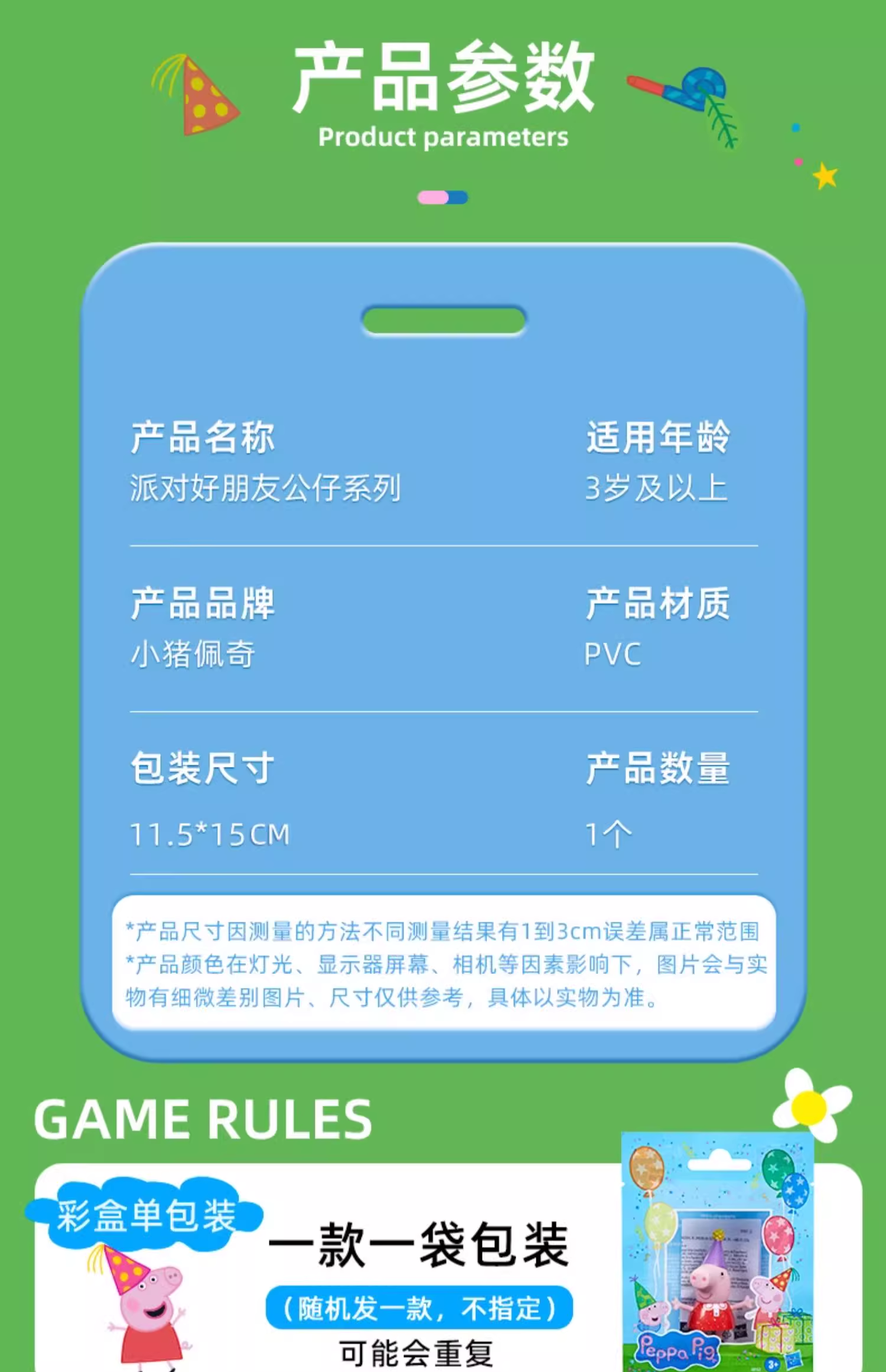 孩之宝Hasbro 小猪佩奇派对朋友公仔系列HASCG01525C40随机发