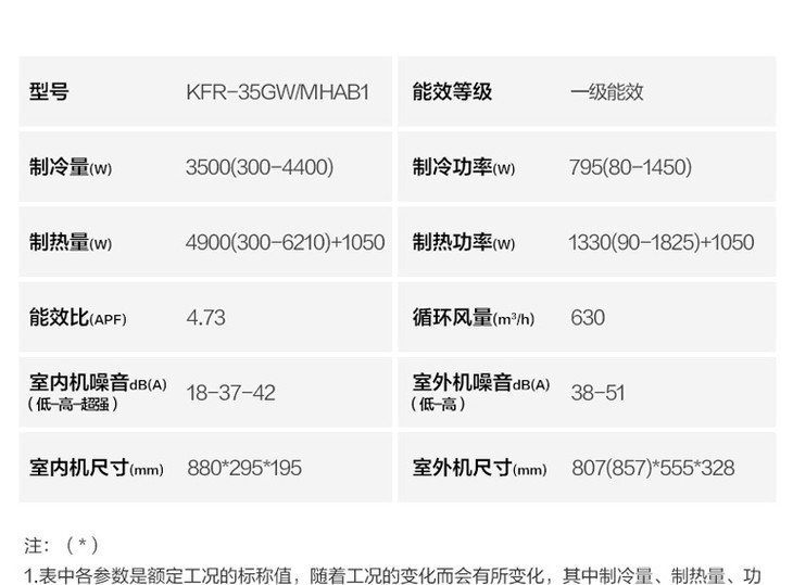 美的(Midea)大1.5匹 一级能效 变频冷暖壁挂式空调挂机KFR-35GW/MHAB1(极光先锋