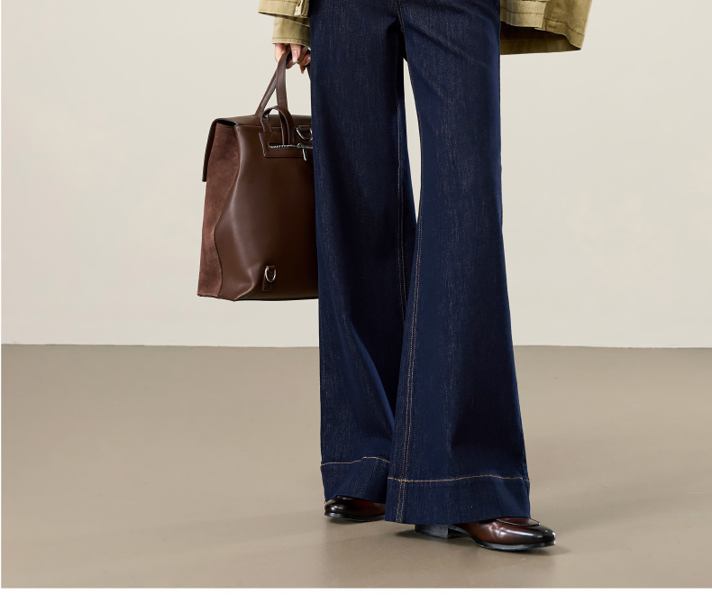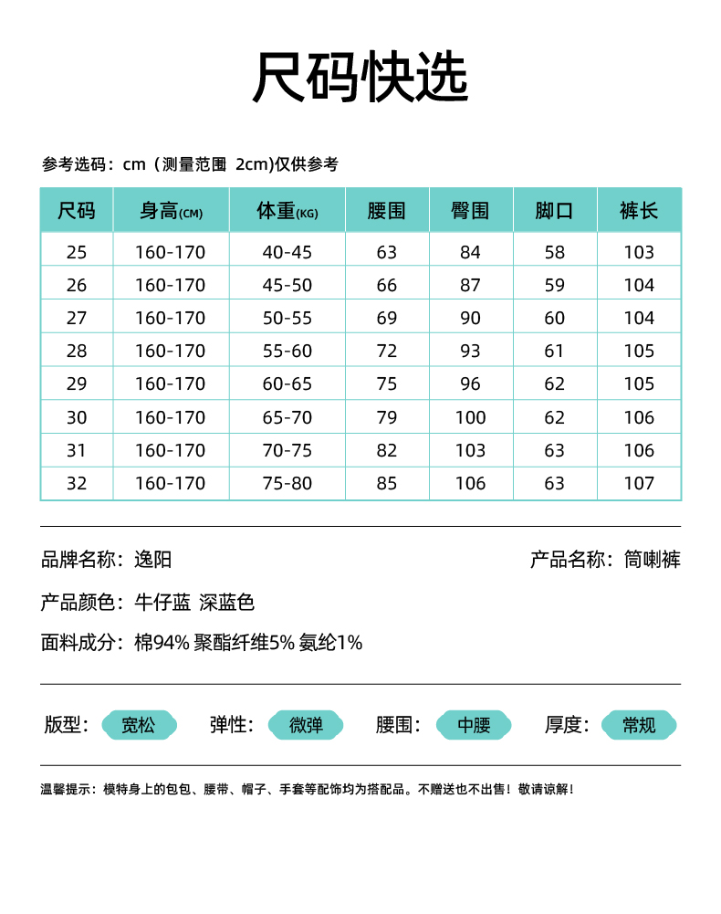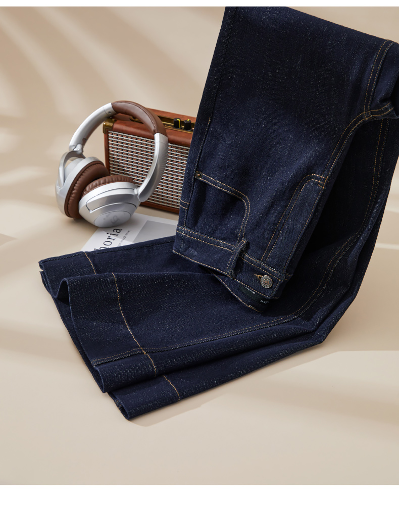 【限时秒杀-秋新品-筒喇牛仔】逸阳不易褪色丹宁蓝宽边显瘦微喇叭牛仔裤子8232