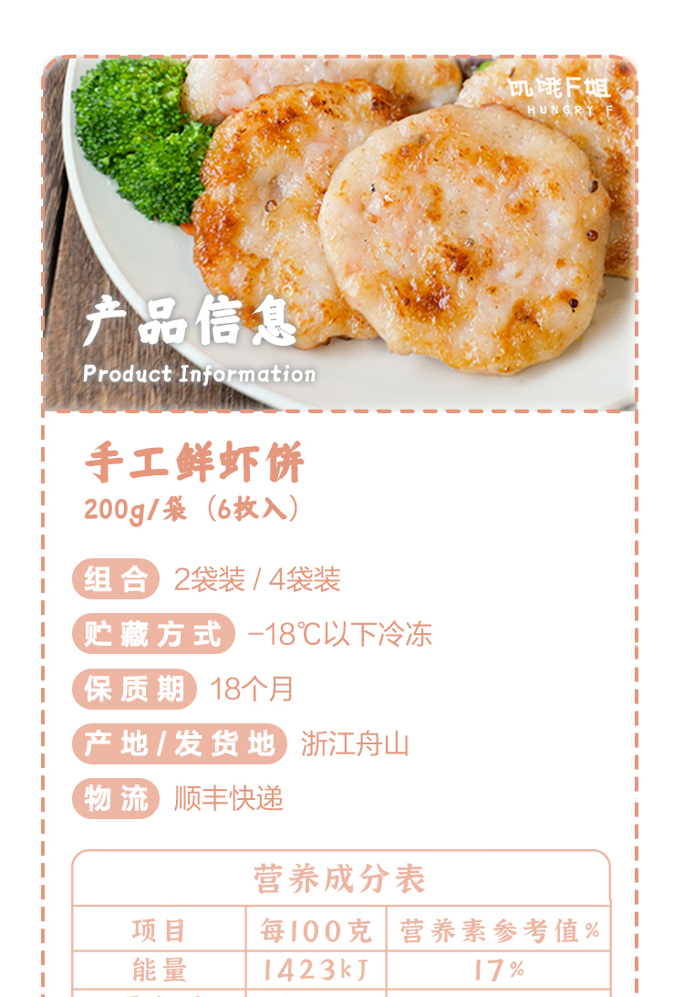 【限时买赠】饥饿F姐·舟山手工鲜虾饼(200g/袋 6枚入)新鲜虾仁制作,扎实Q弹