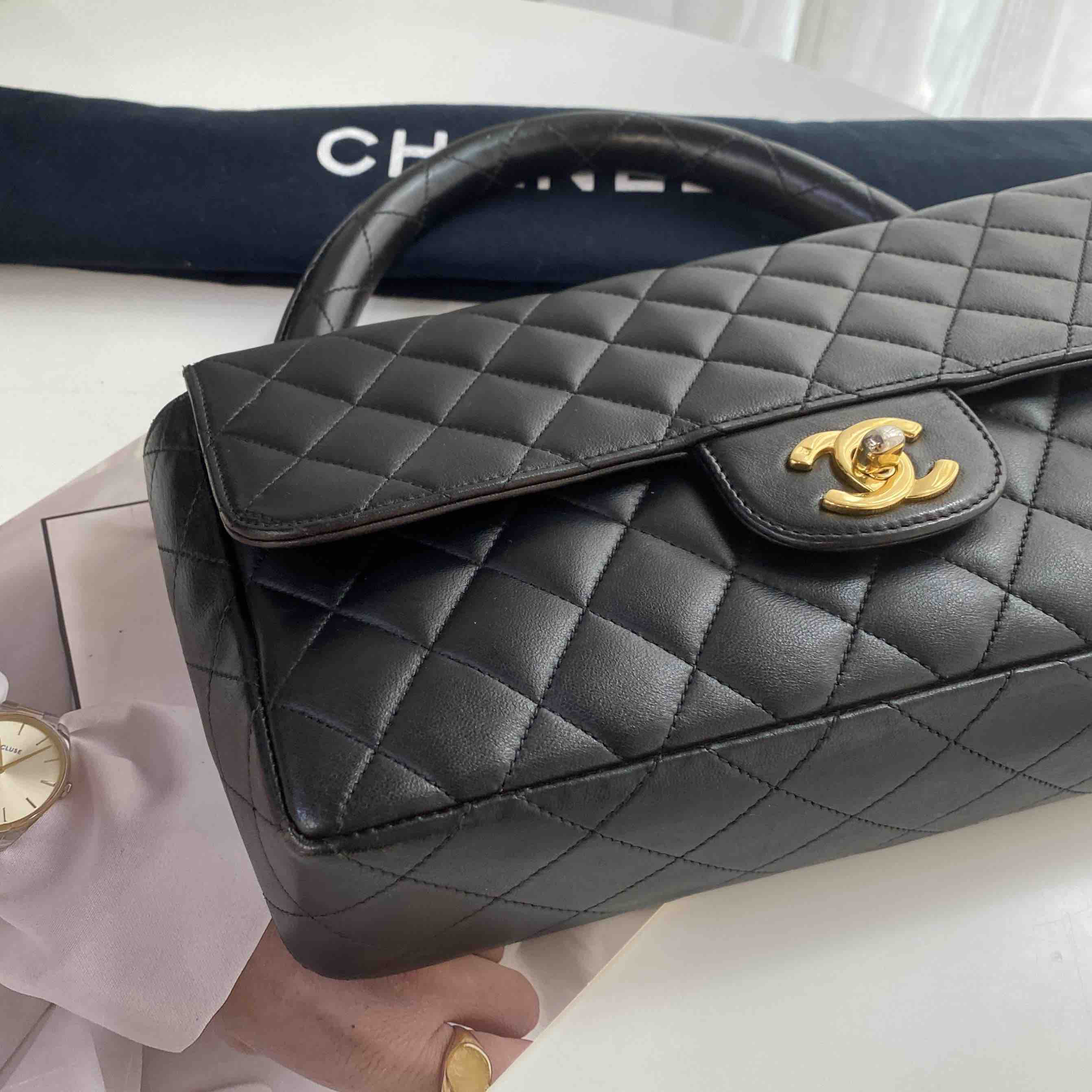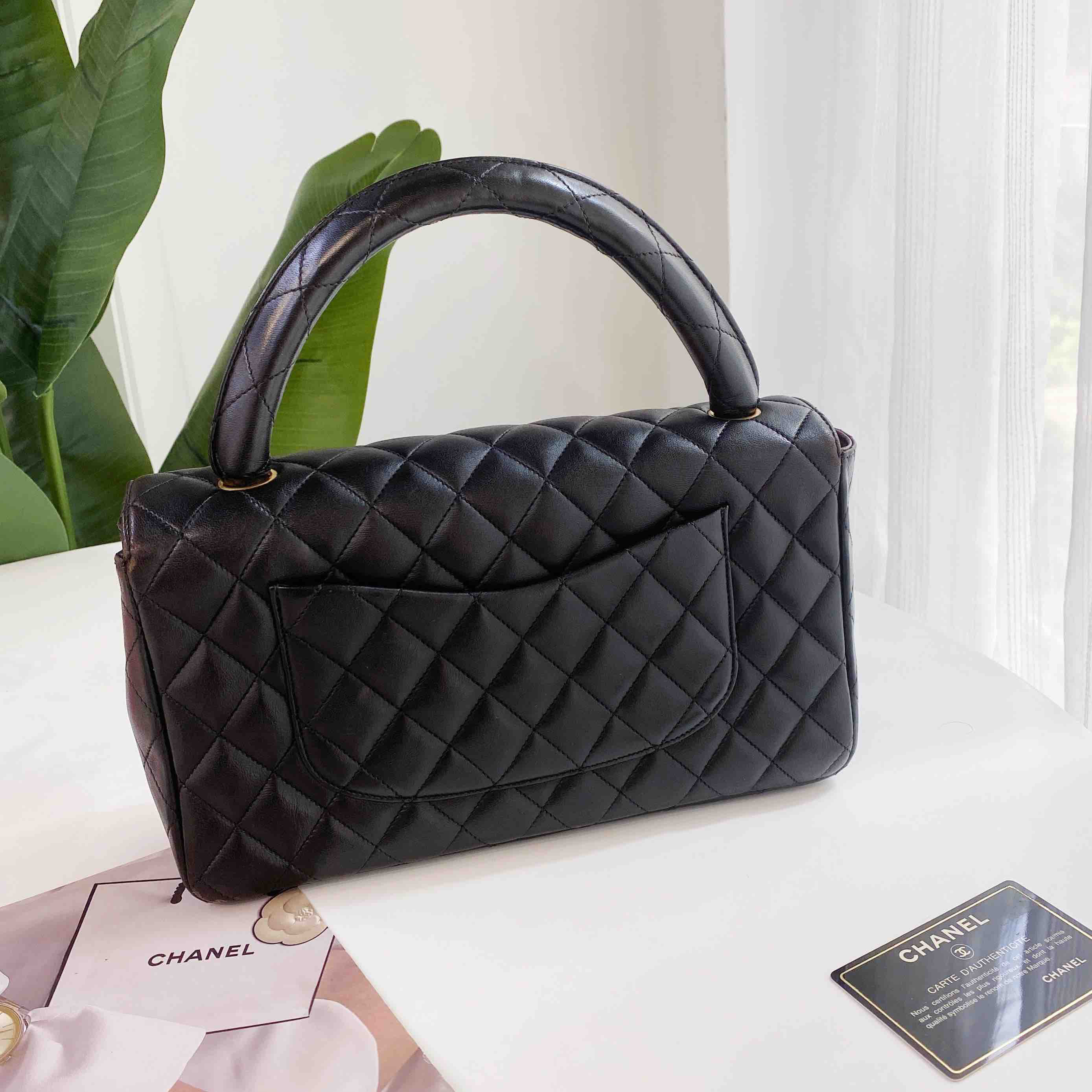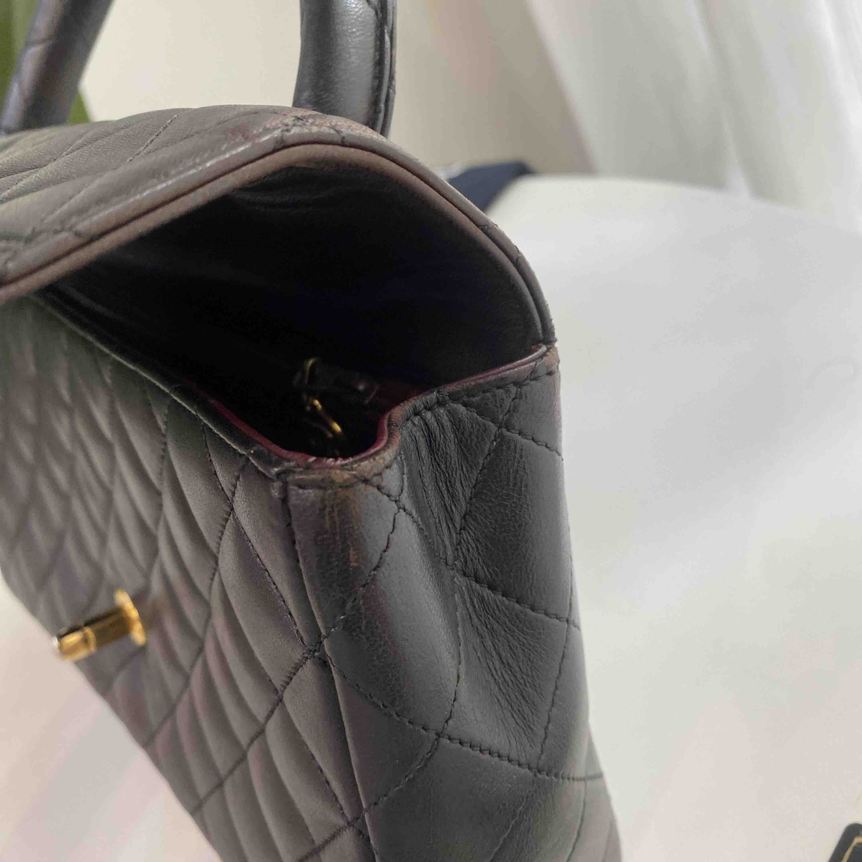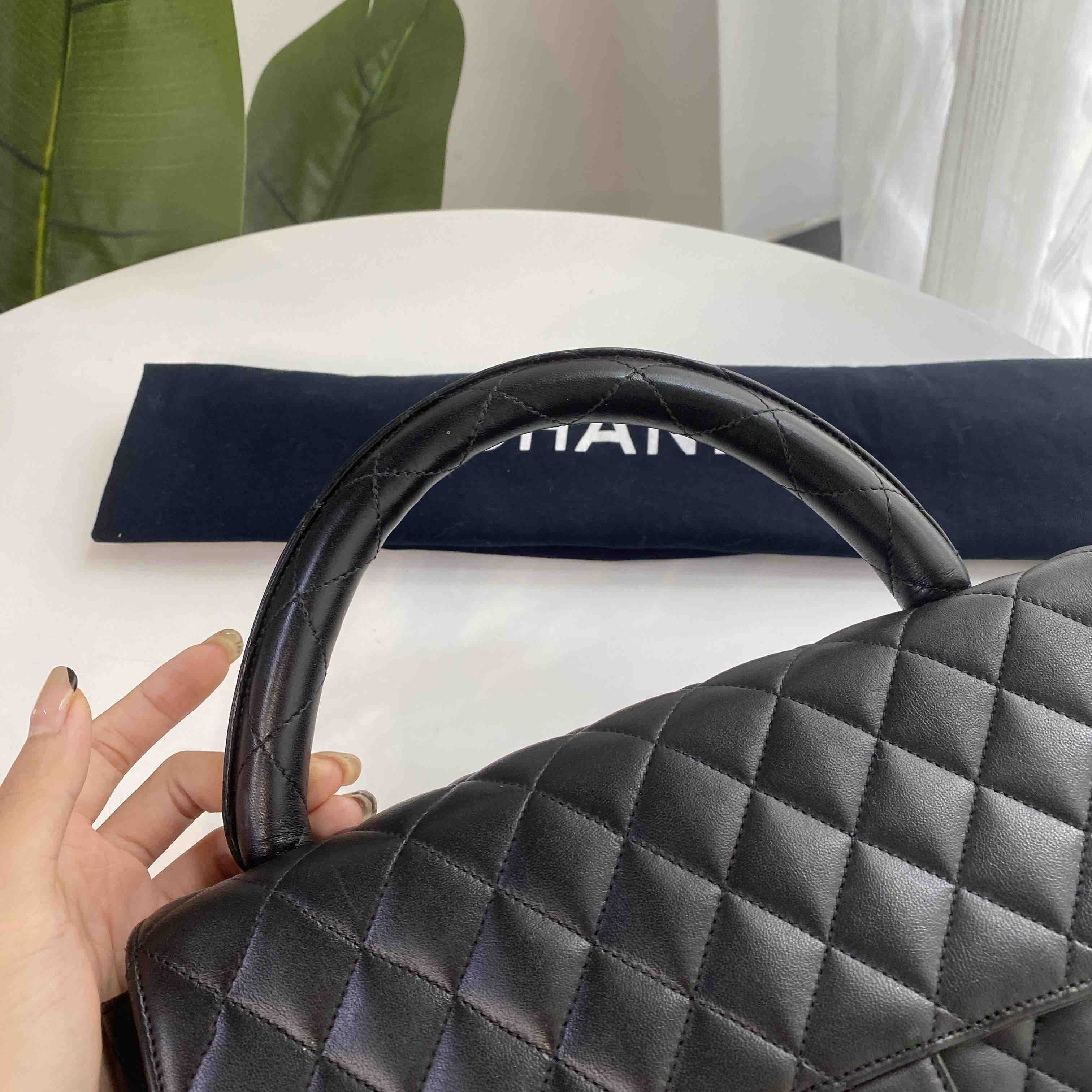 【商品详情】正品二手 Chanel vintage 黑金 羊皮 cocohandle 手提包😘 93新 26×15 有镭射 配件:防尘袋 卡。包底边角和翻盖两侧轻微使用痕迹 五金轻微氧化