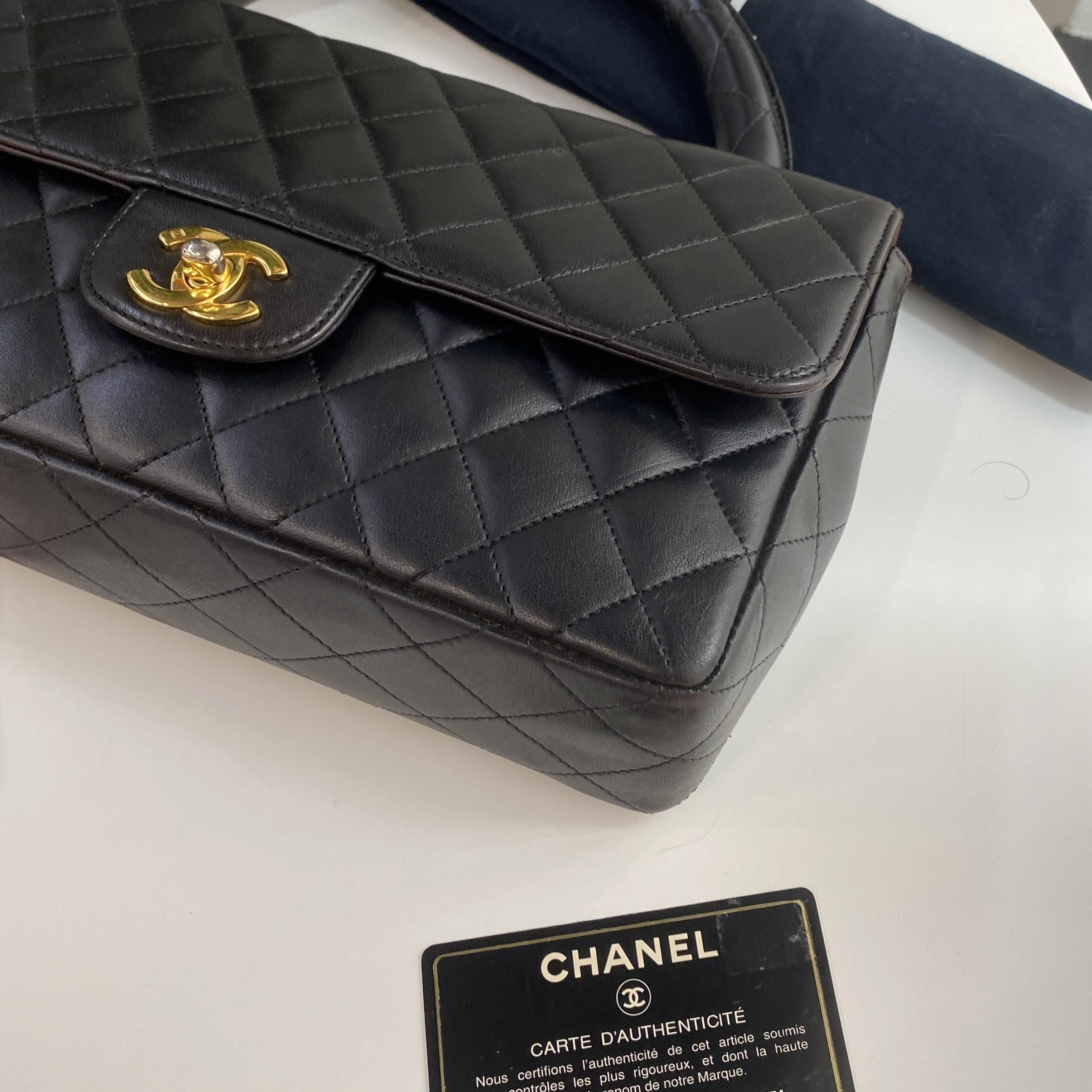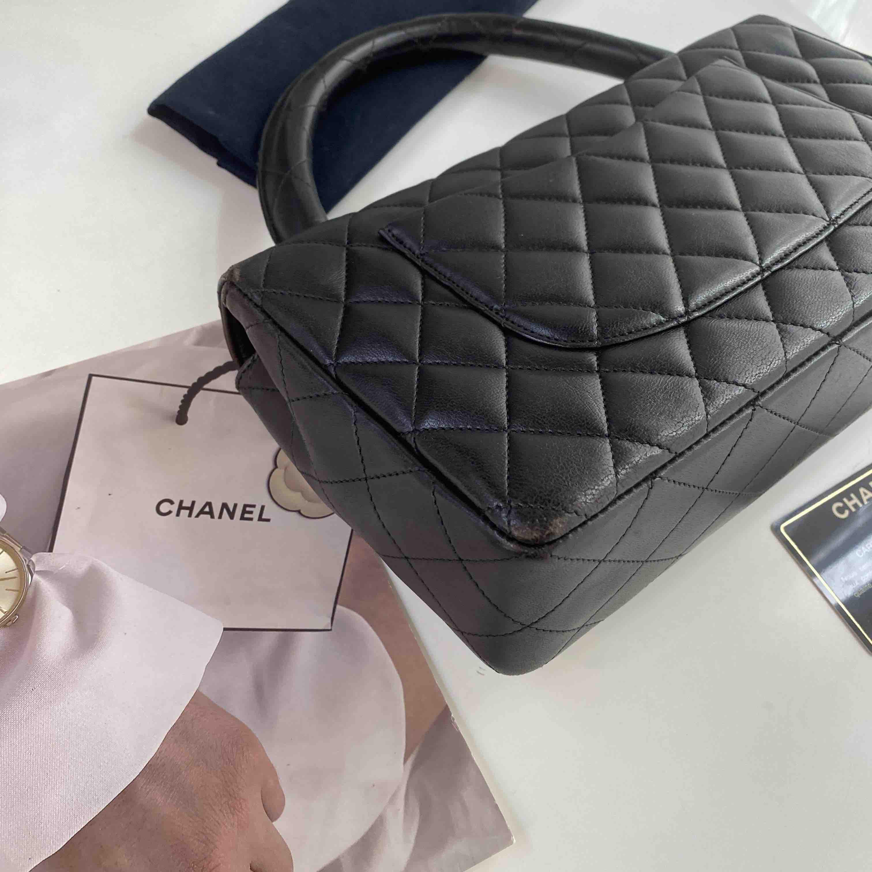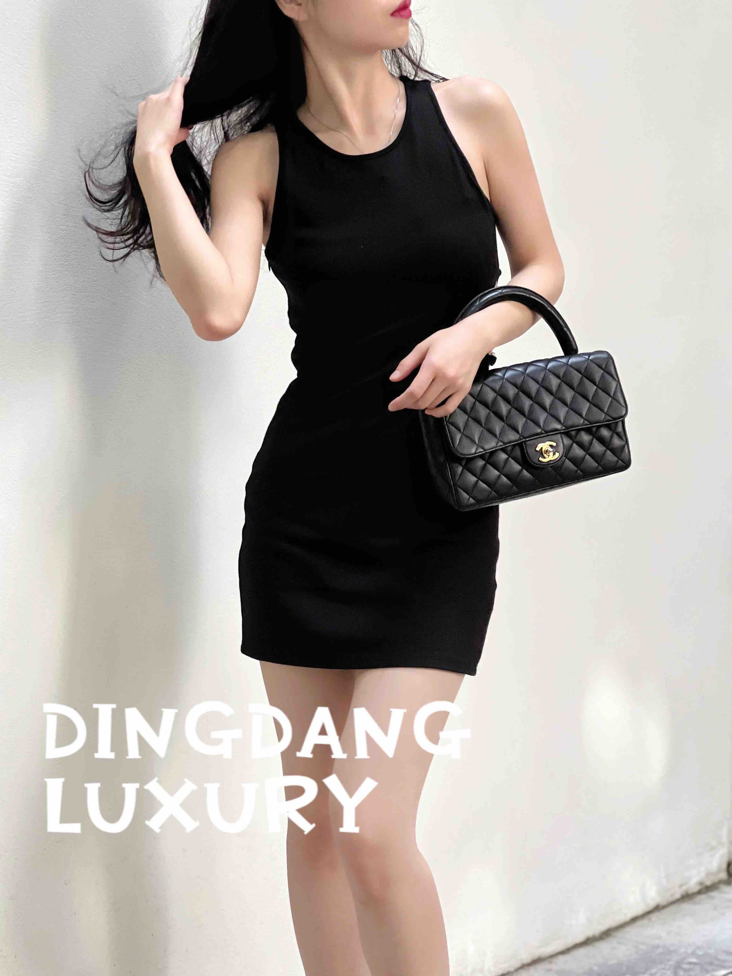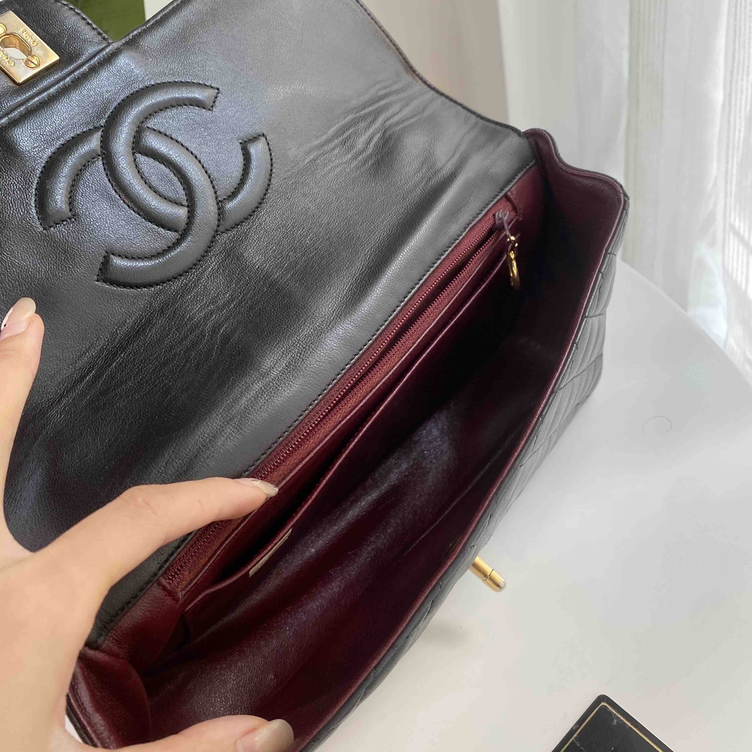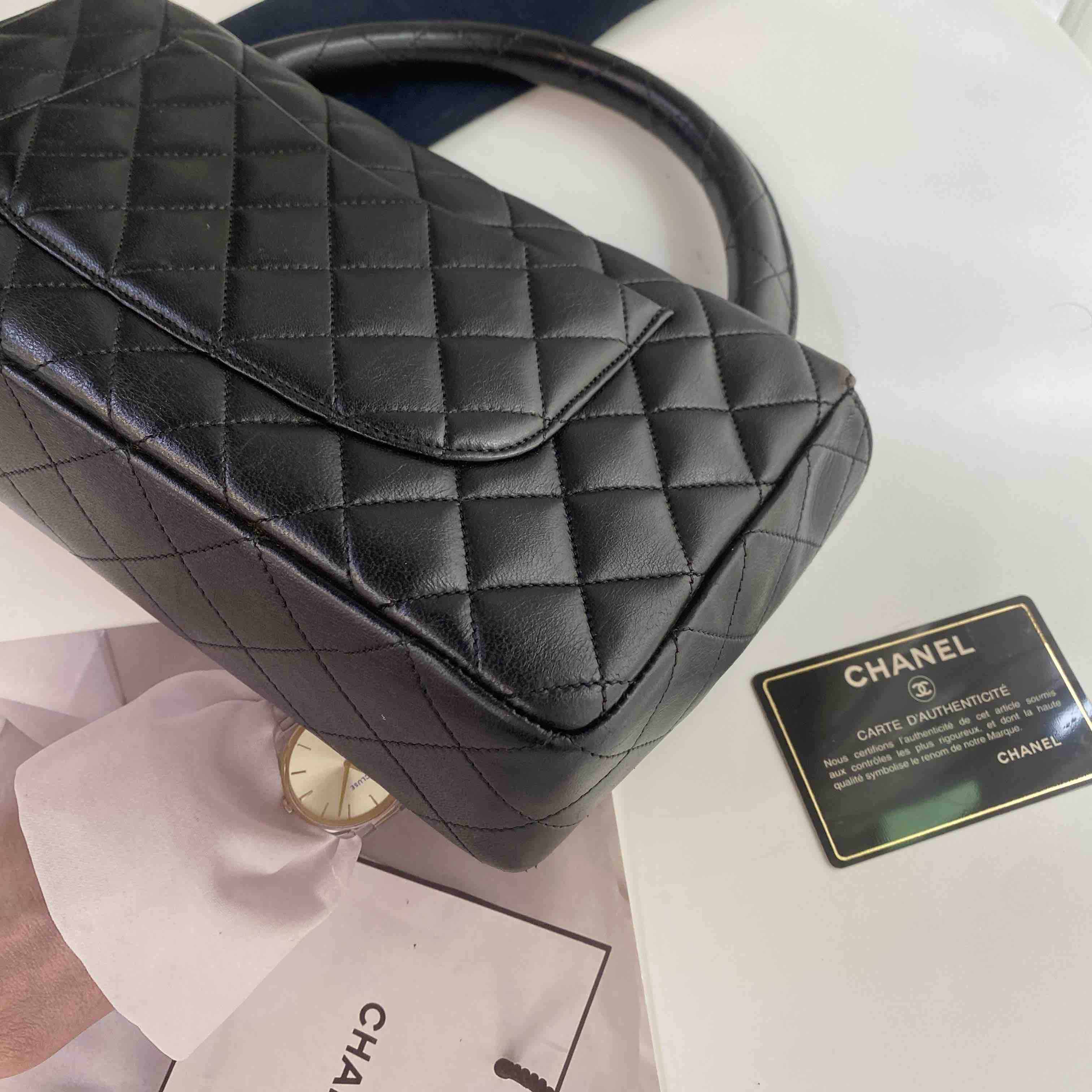 【商品详情】正品二手 Chanel vintage 黑金 羊皮 cocohandle 手提包😘 93新 26×15 有镭射 配件:防尘袋 卡。包底边角和翻盖两侧轻微使用痕迹 五金轻微氧化