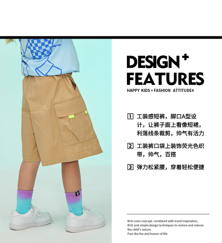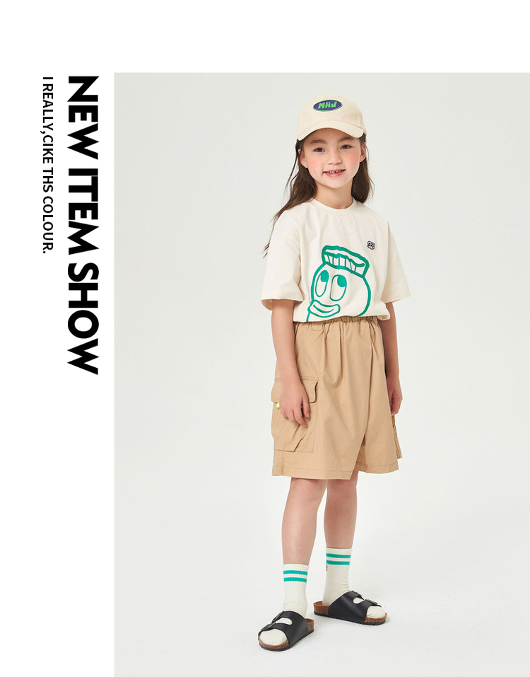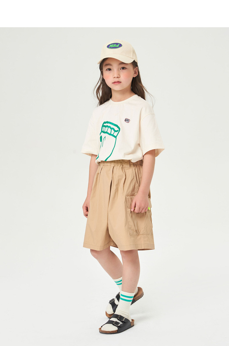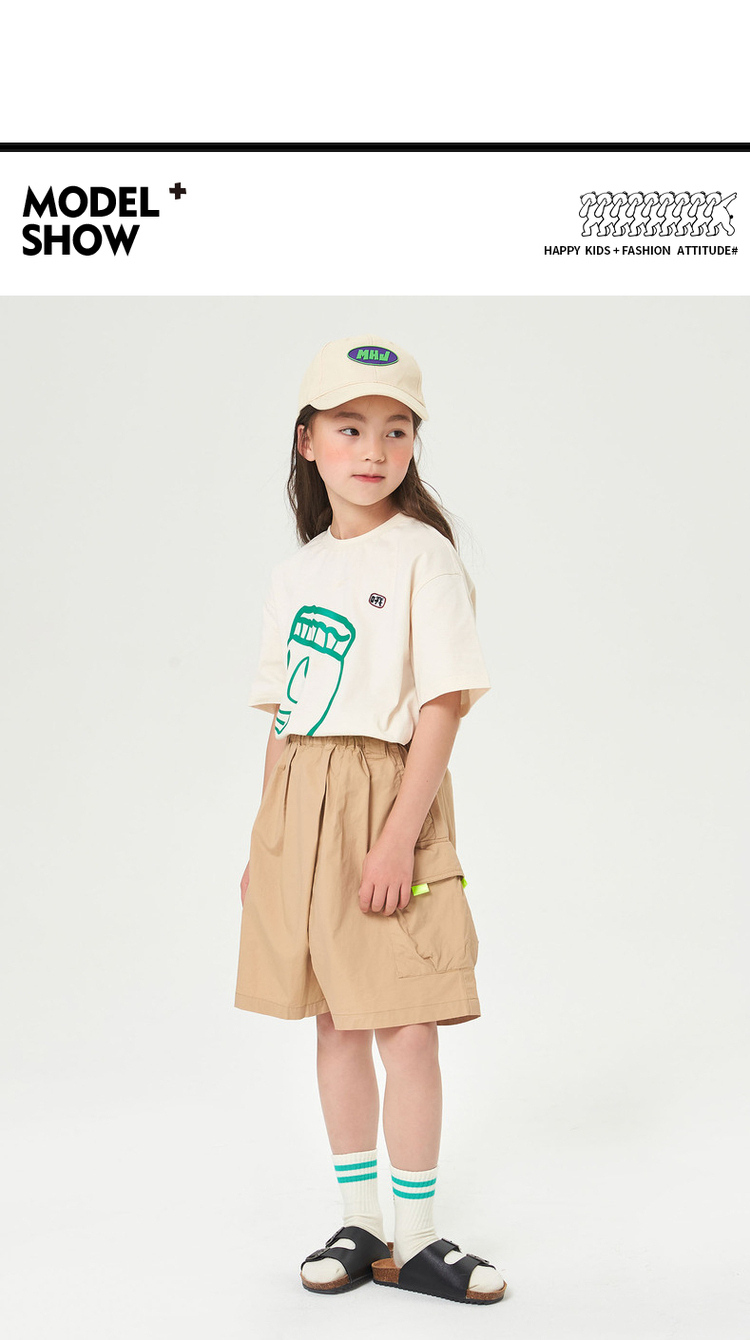 马拉丁潮牌漫画家童装女童裤子夏新品儿童工装感裙裤棉布中裤