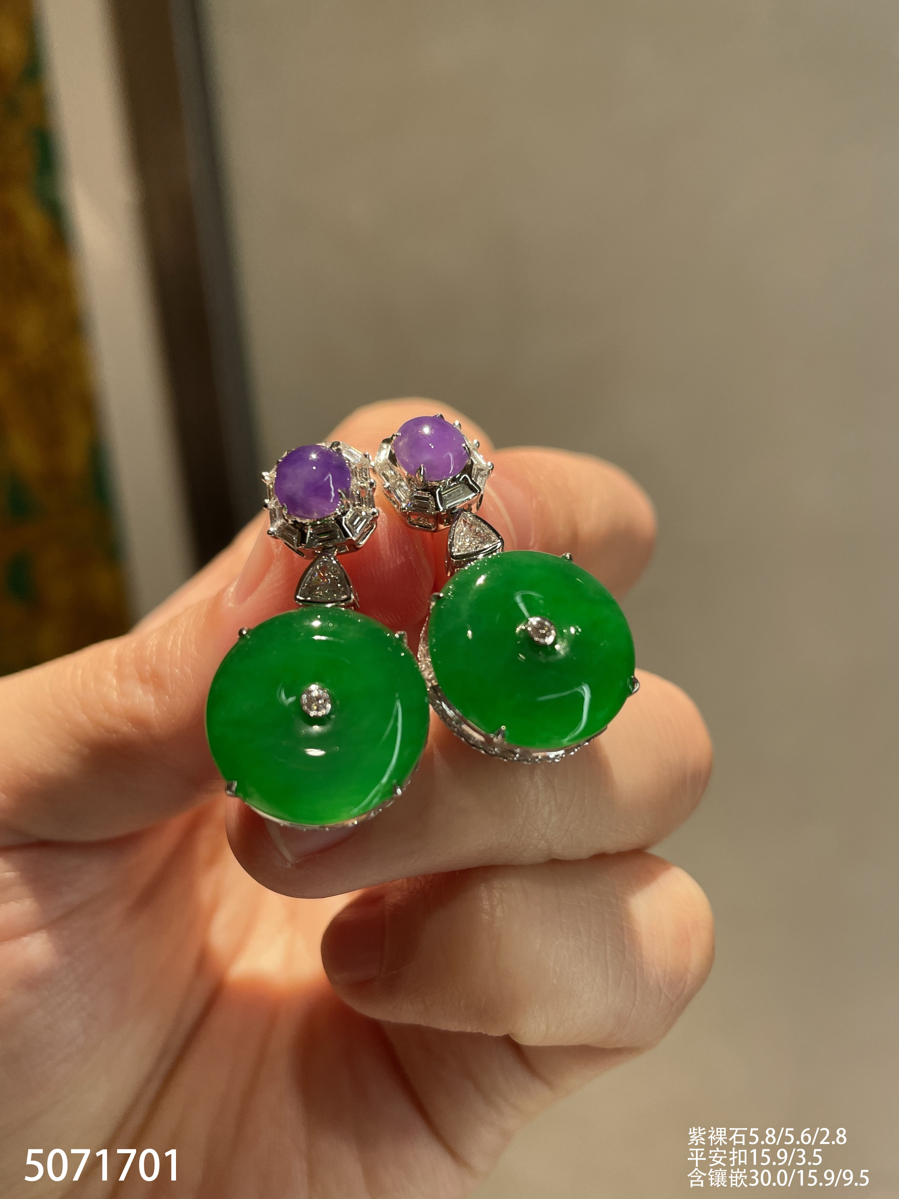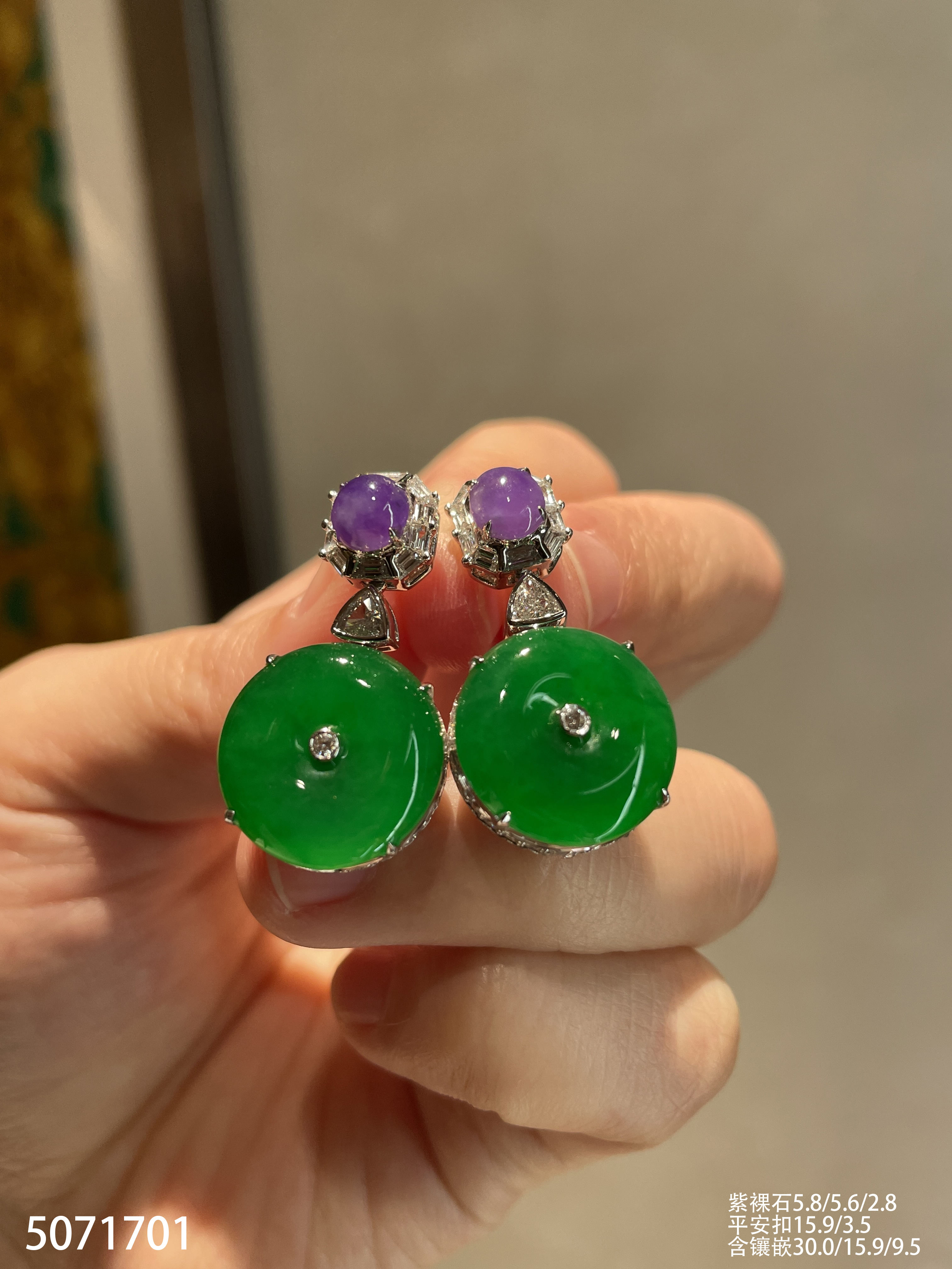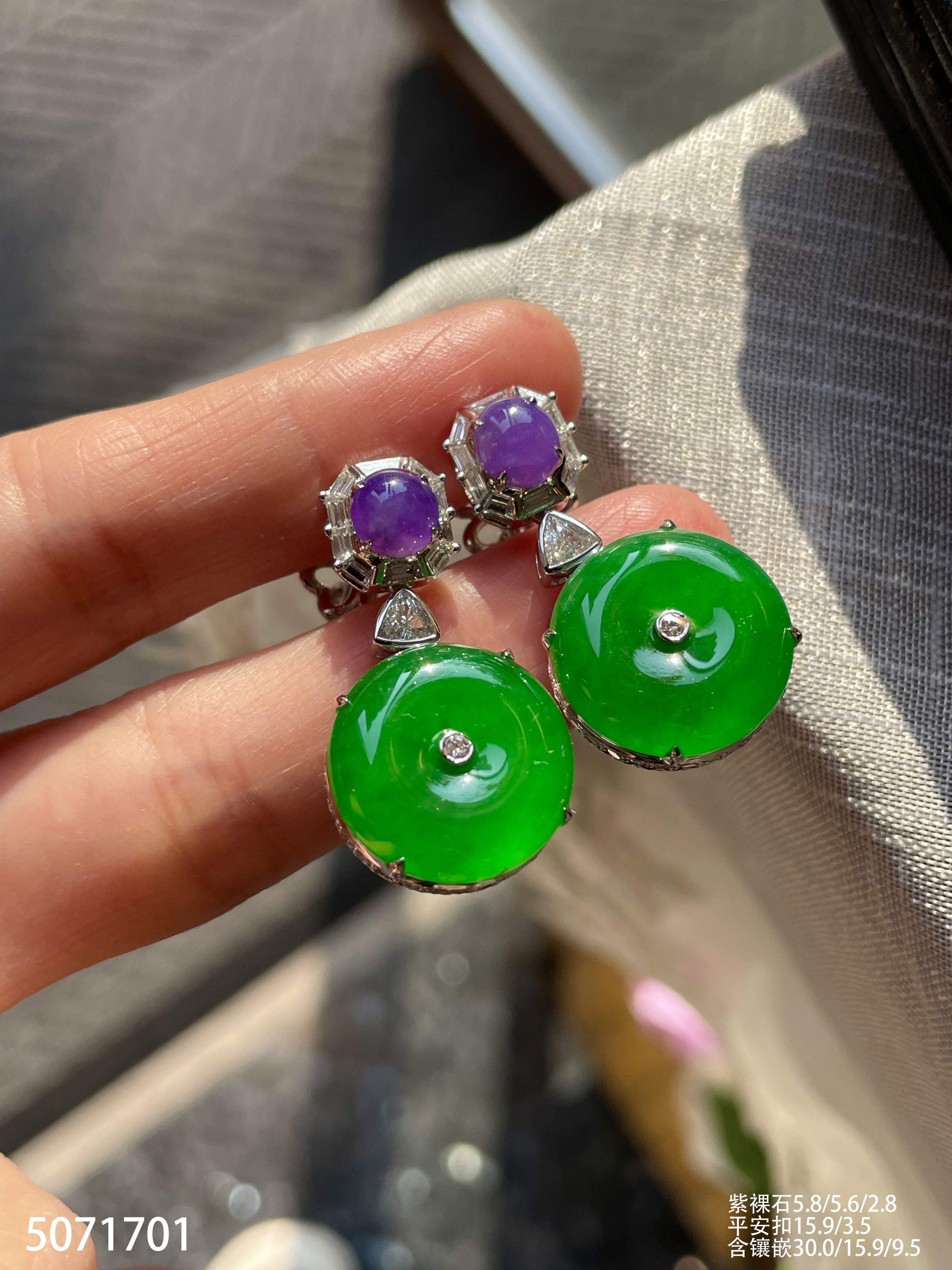 老坑帝王绿平安扣耳坠【5071701】具体价格微信咨询