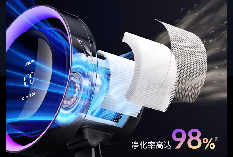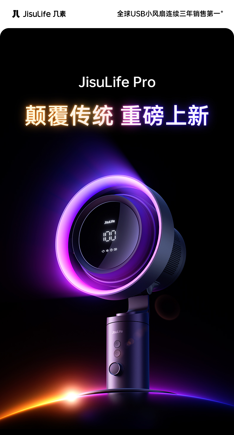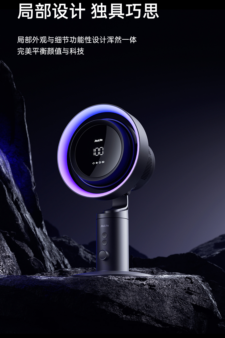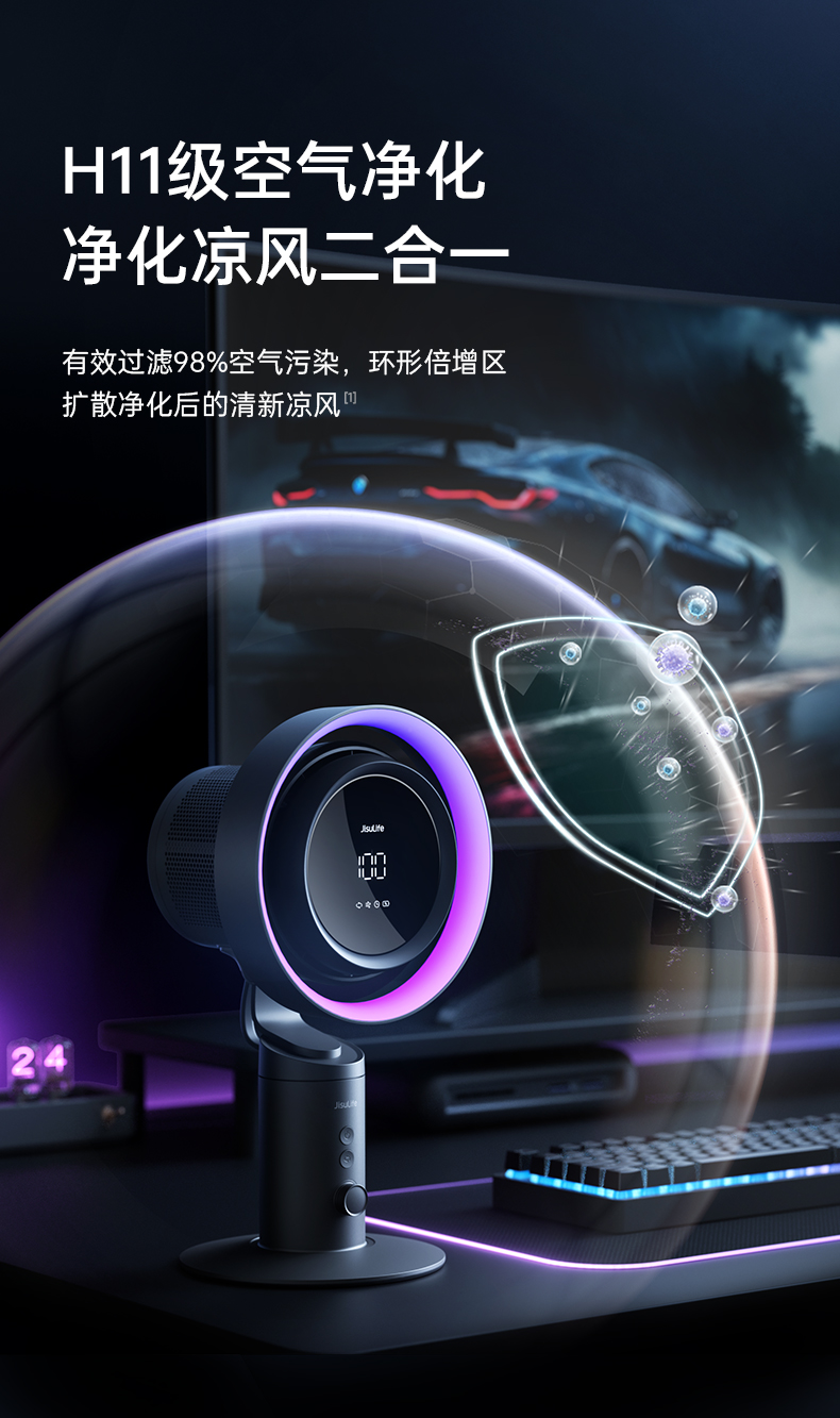 几素高速净化桌面风扇Pro3超长续航空气净化7色灯环24h定时预约100档无极调节广角变频