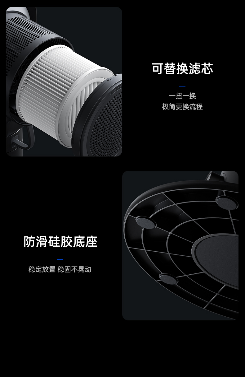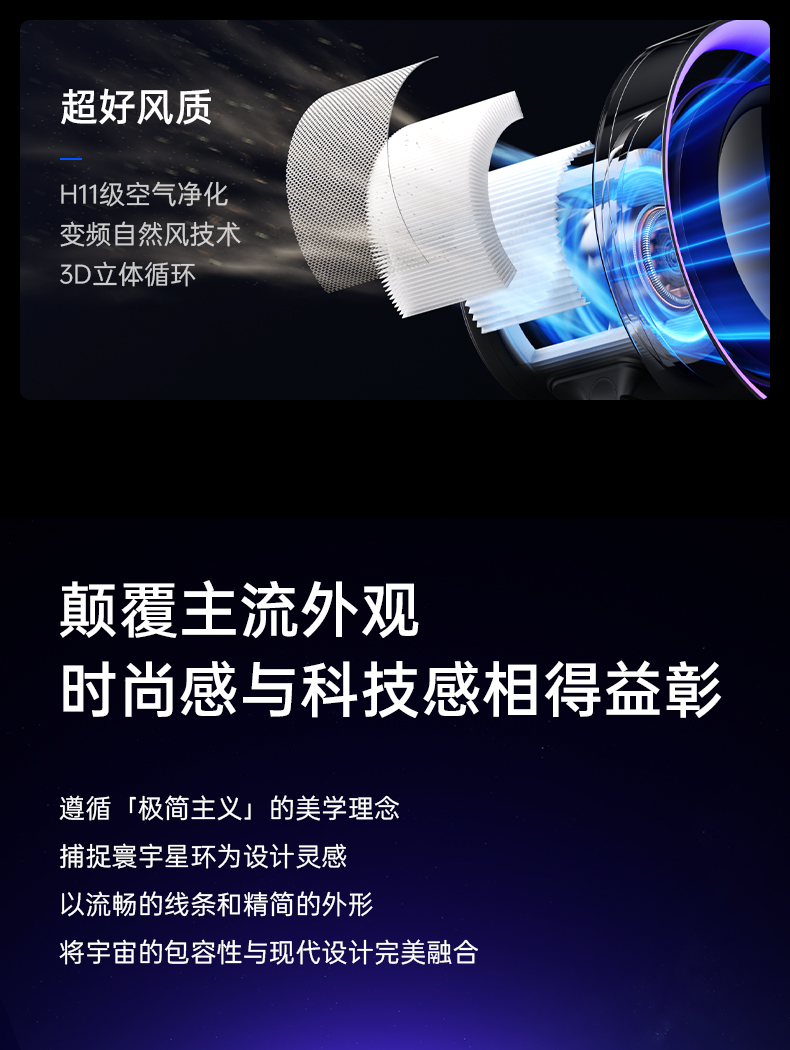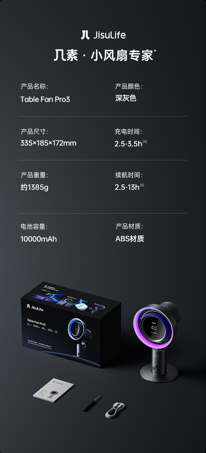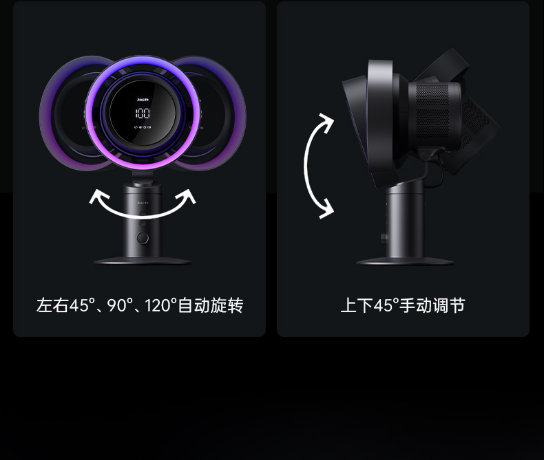 几素高速净化桌面风扇Pro3超长续航空气净化7色灯环24h定时预约100档无极调节广角变频