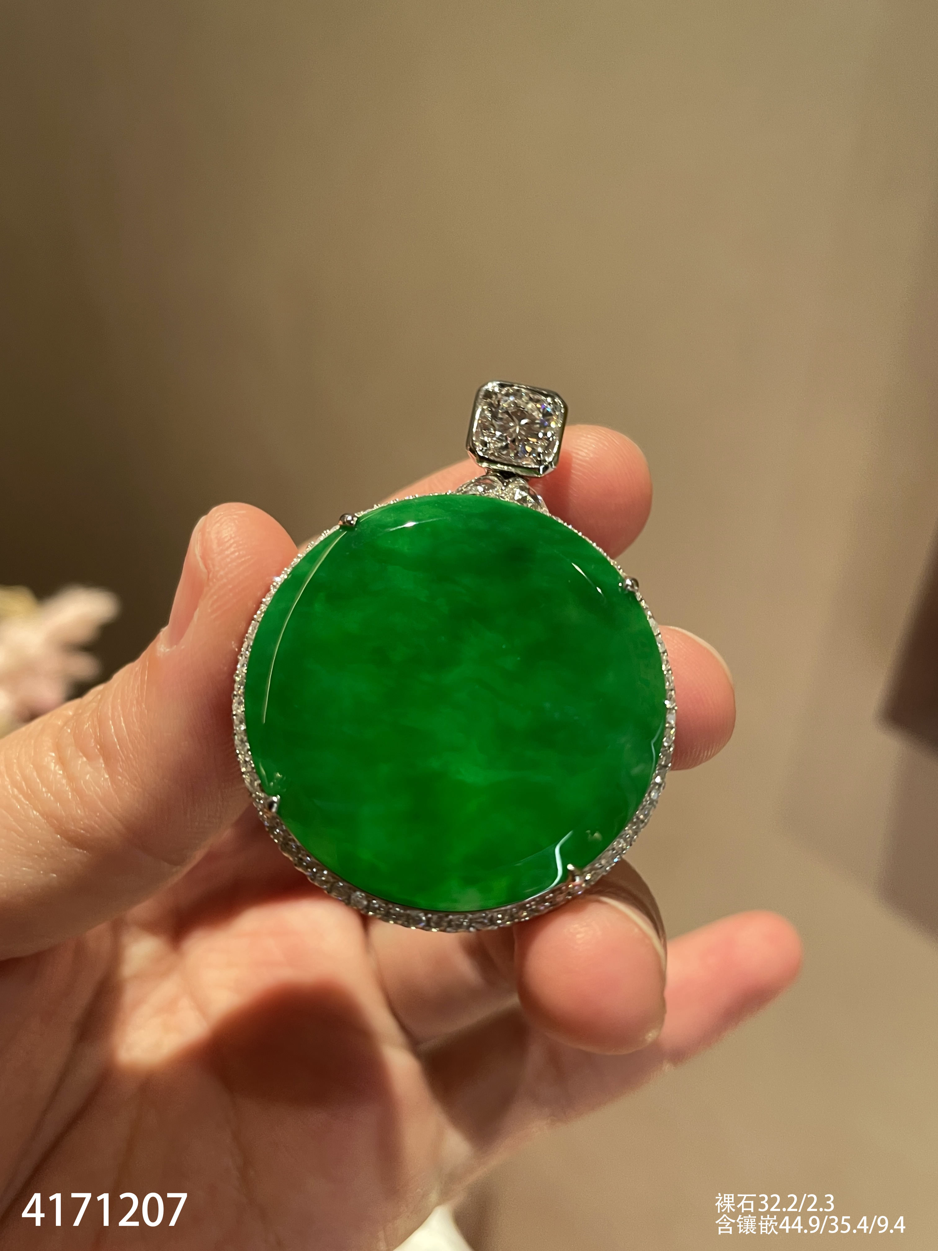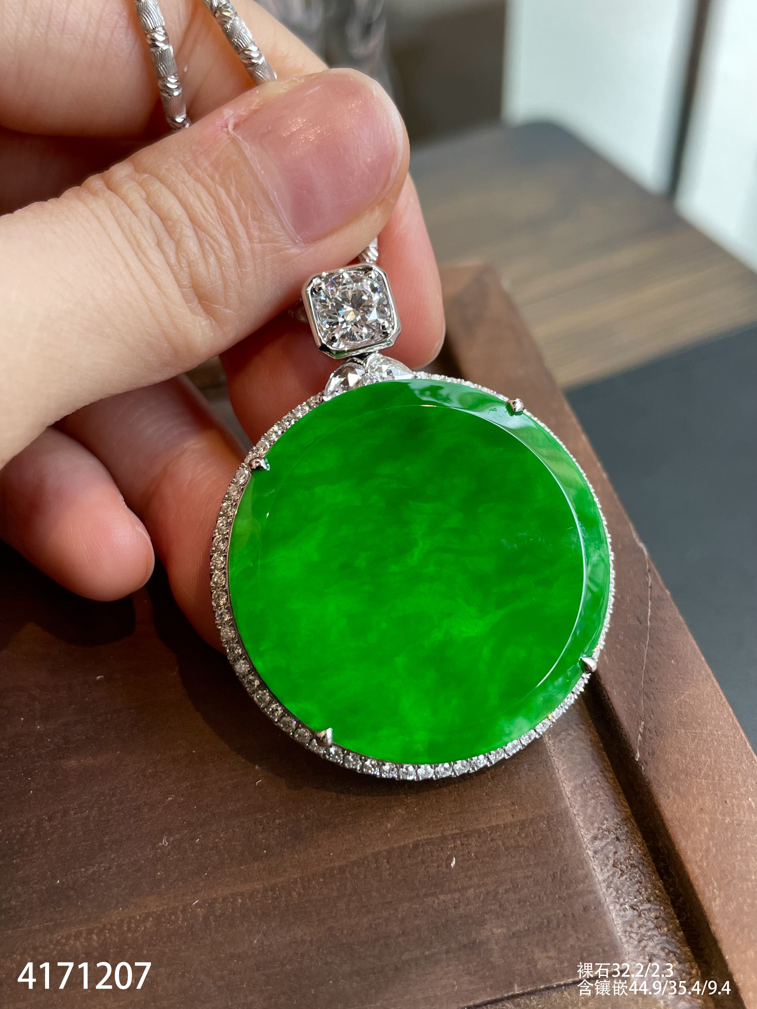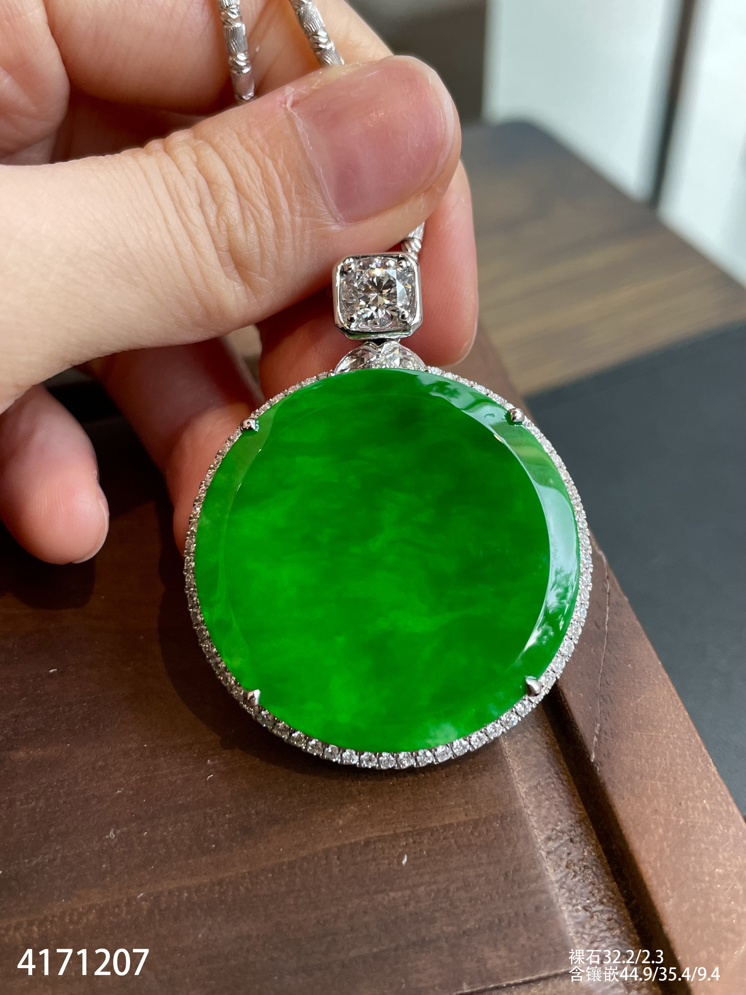 老坑艳绿圆牌吊坠【4171207】具体价格微信咨询