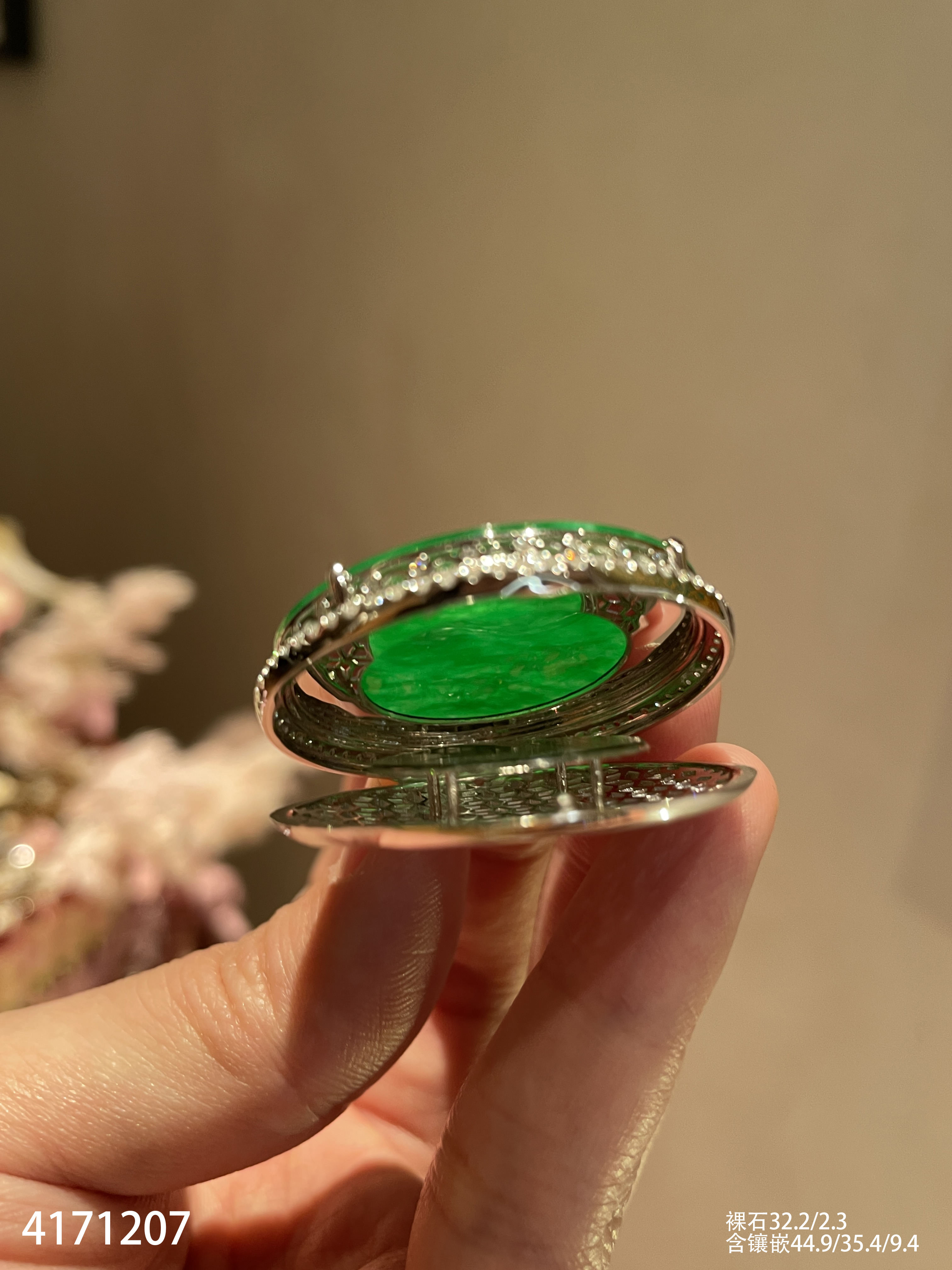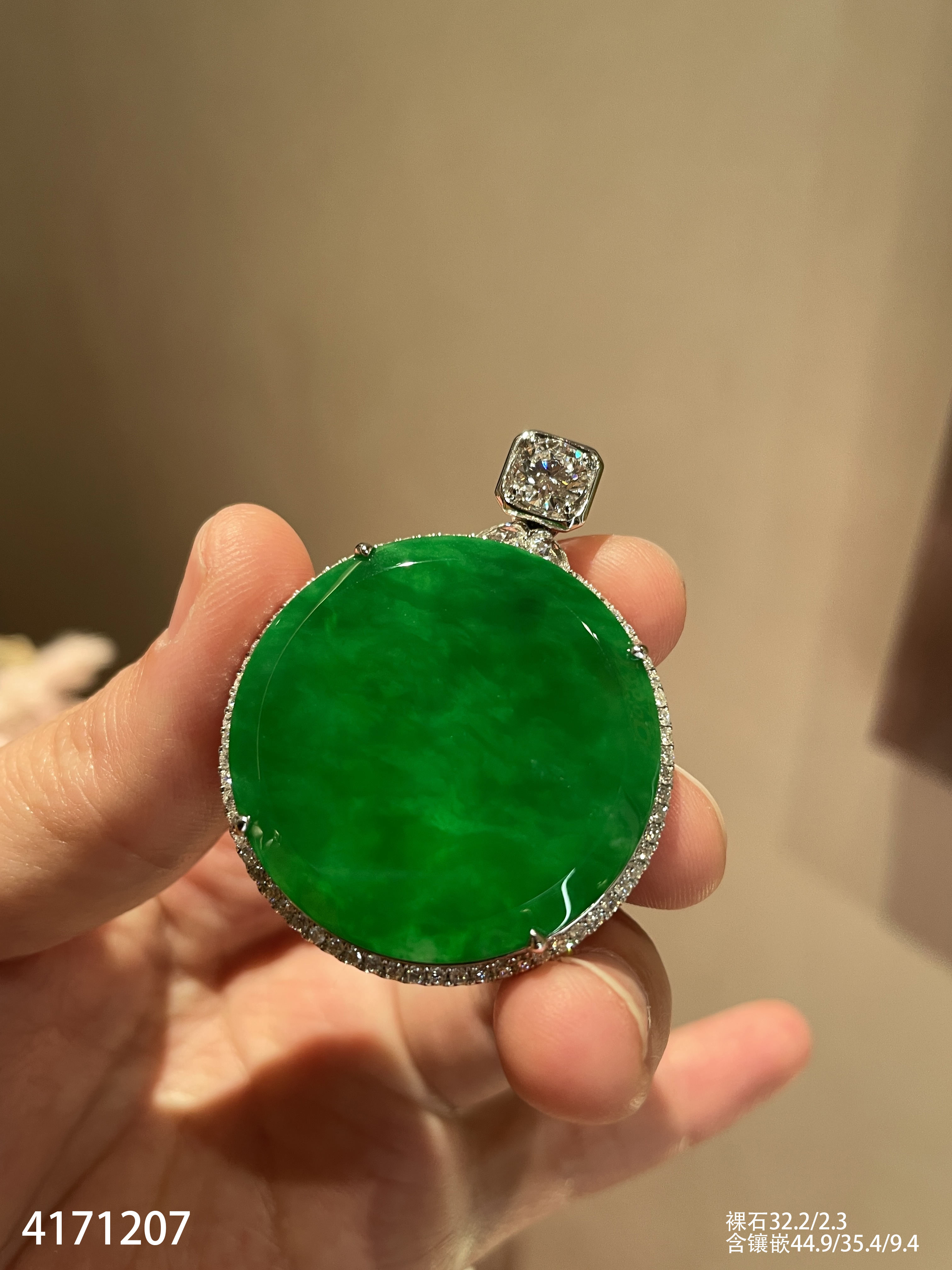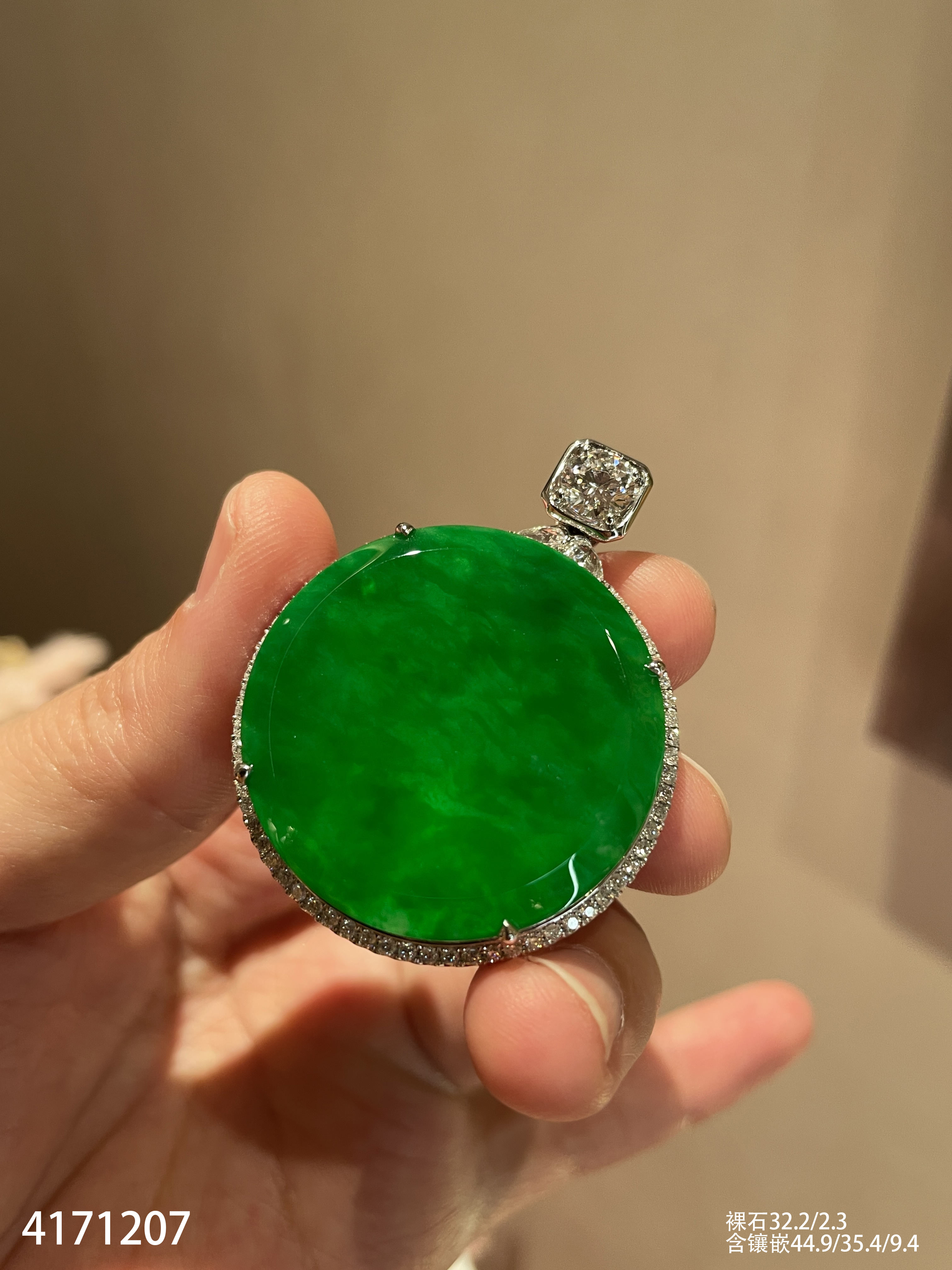 老坑艳绿圆牌吊坠【4171207】具体价格微信咨询