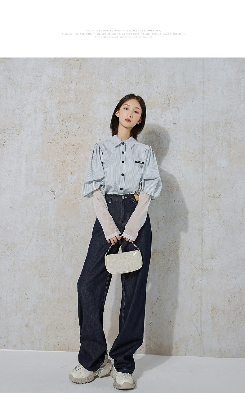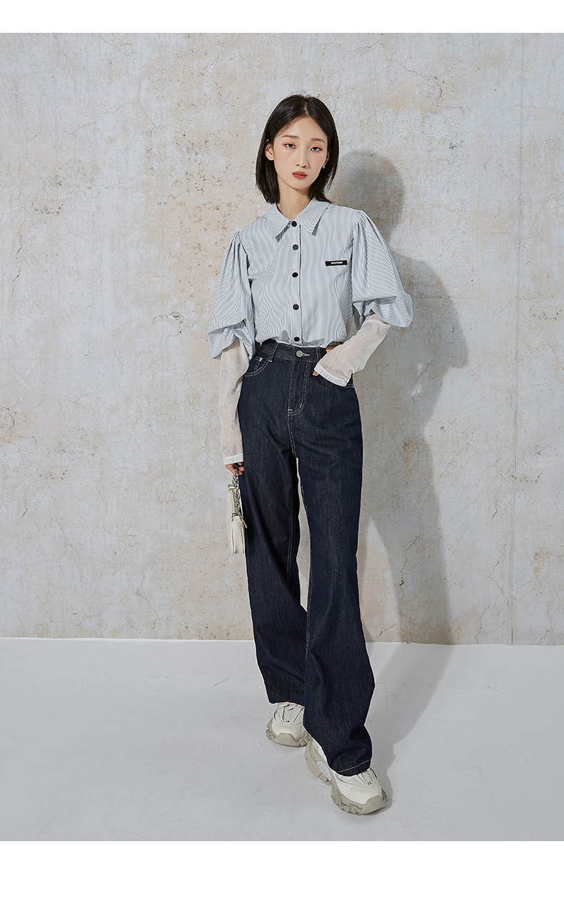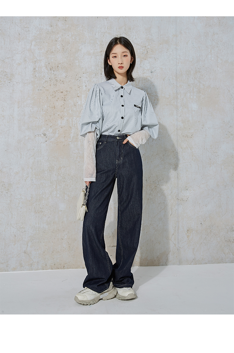 NUTS春秋季新款复古高腰直筒显瘦百搭长款牛仔裤女412113375