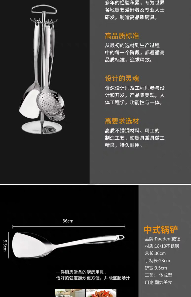 德国戴德 鸿波系列不锈钢一体成型厨具六件套装锅铲