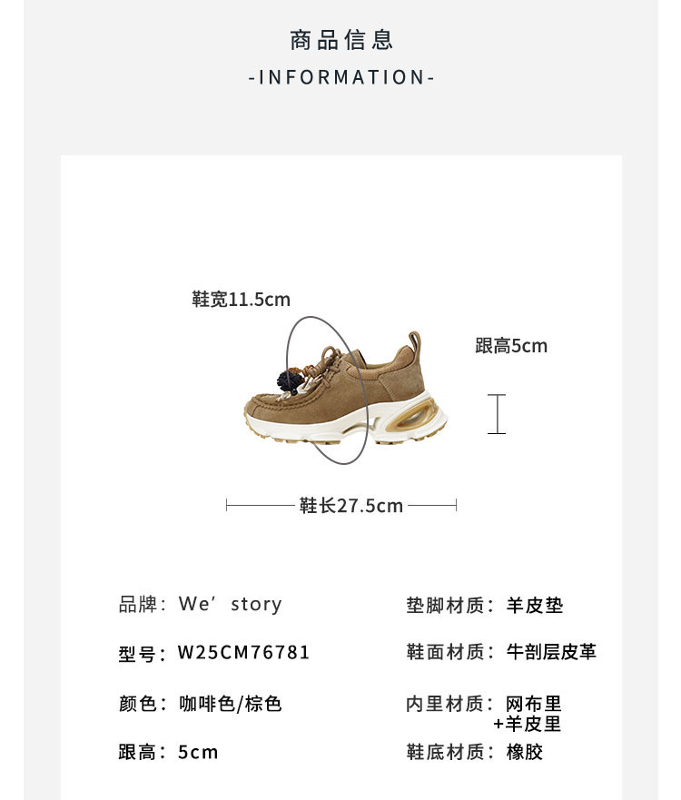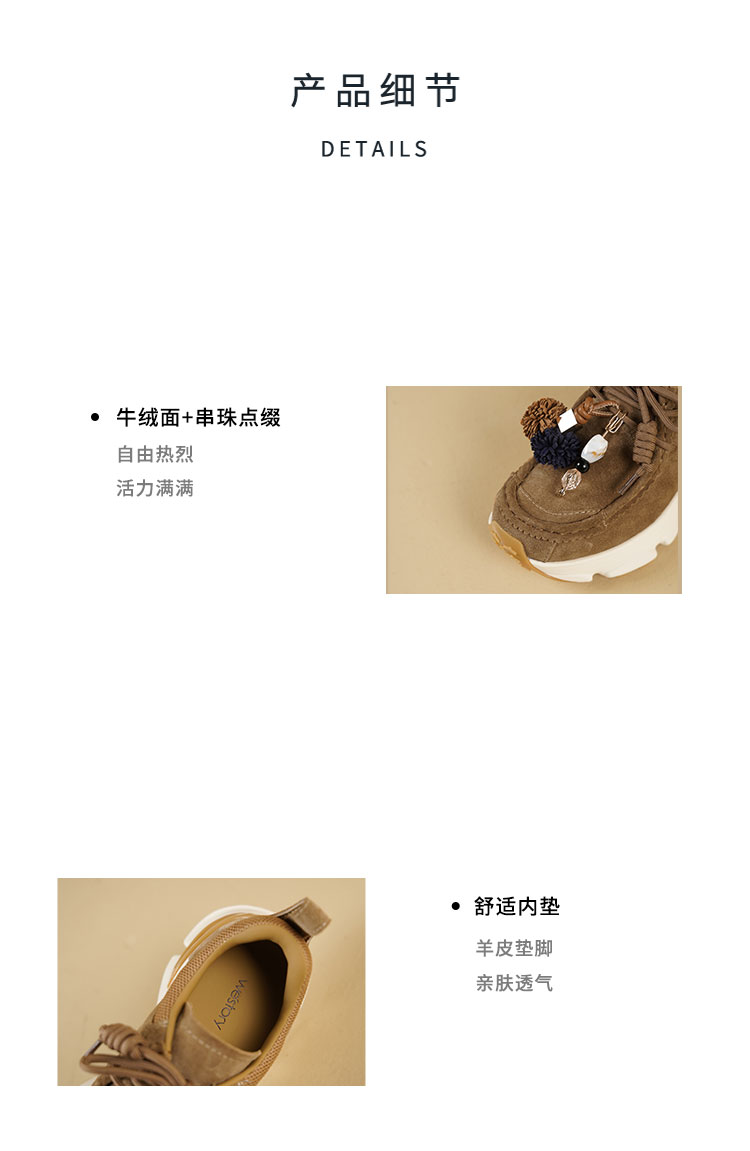 Westory2025年秋季绒面超轻厚底老爹运动鞋袋鼠鞋波西米亚风深口单鞋W25CM76781