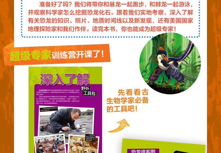来认识一下暴龙吧,顺便见一见剑龙、三角龙、伶盗龙、迷惑龙、甲龙和南方巨兽龙等其它人气明星!除此之外,本书中还有异乎寻常和刚被发掘的新奇恐龙等着你来探索。化石是怎样形成的?导致恐龙灭绝的那场史诗般震撼的大灭绝事件到底是怎样发生的?想不想知道恐龙究竟有没有羽毛?各种有趣知识尽在《美国国家地理超级专家:恐龙》!本书适合7-14岁的小朋友阅读,读完本书,热爱恐龙的你就是恐龙界真正的超级专家!