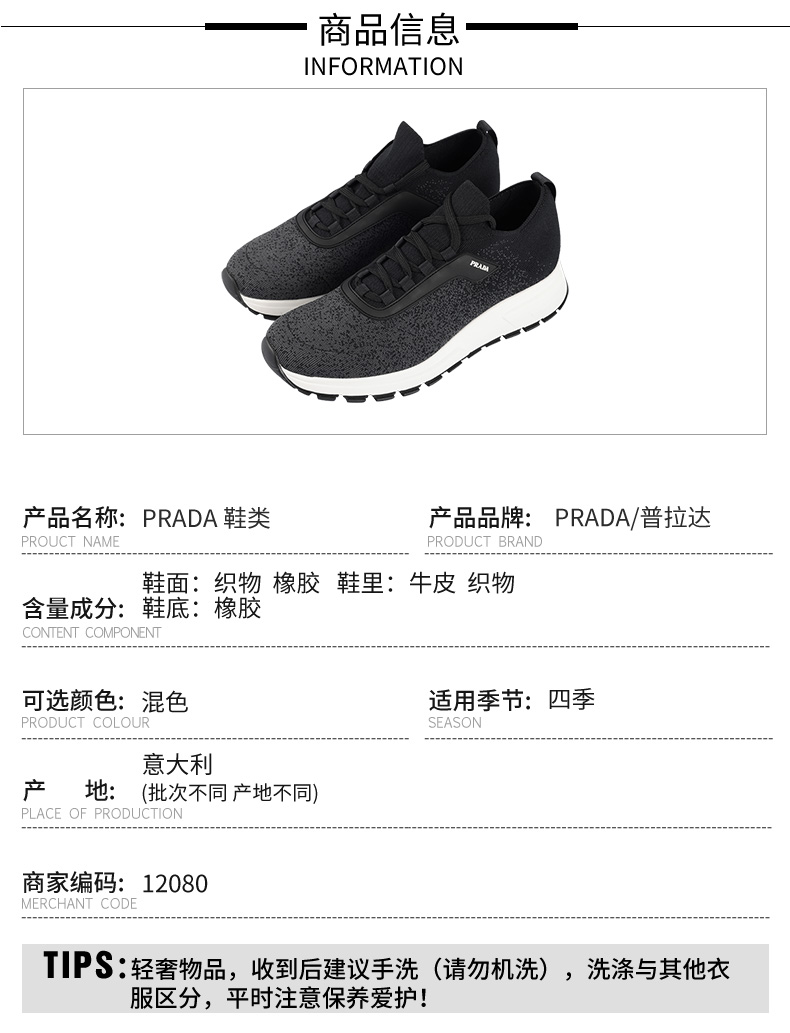 【超惠秒】Prada 普拉达 男士织物真皮舒适百搭运动休闲鞋 12080
