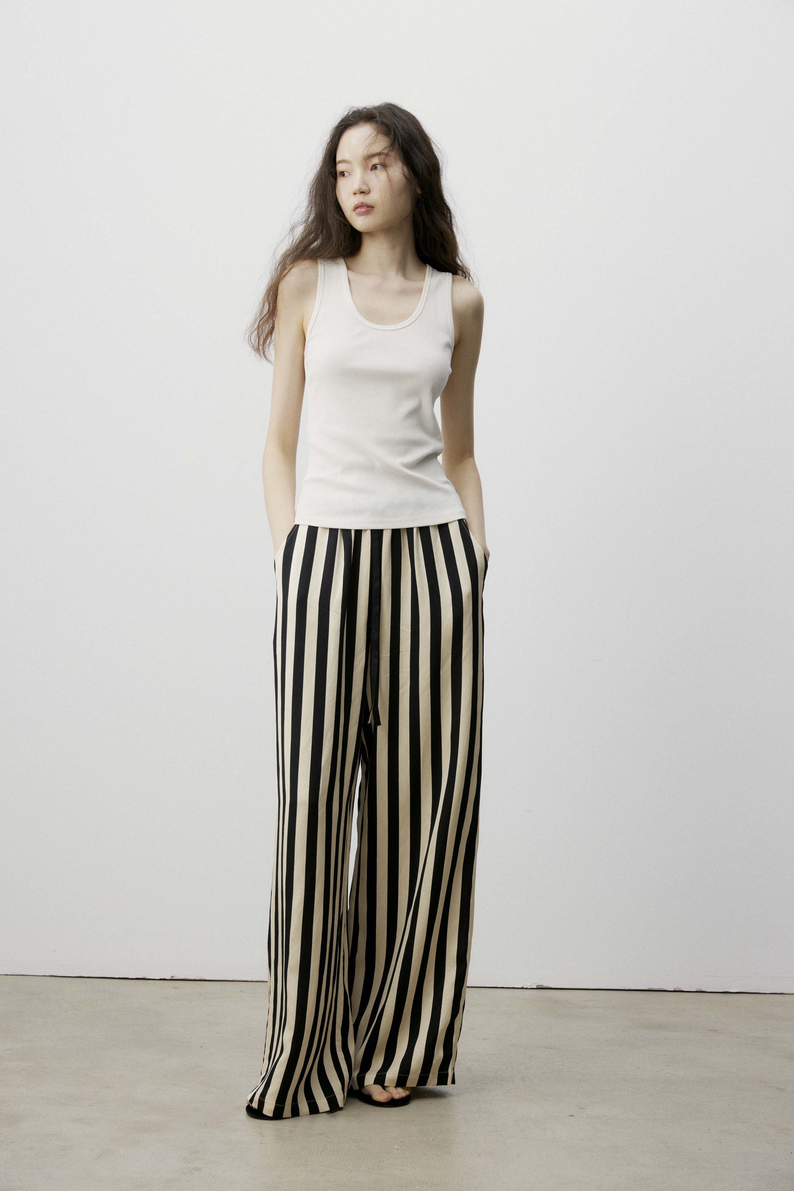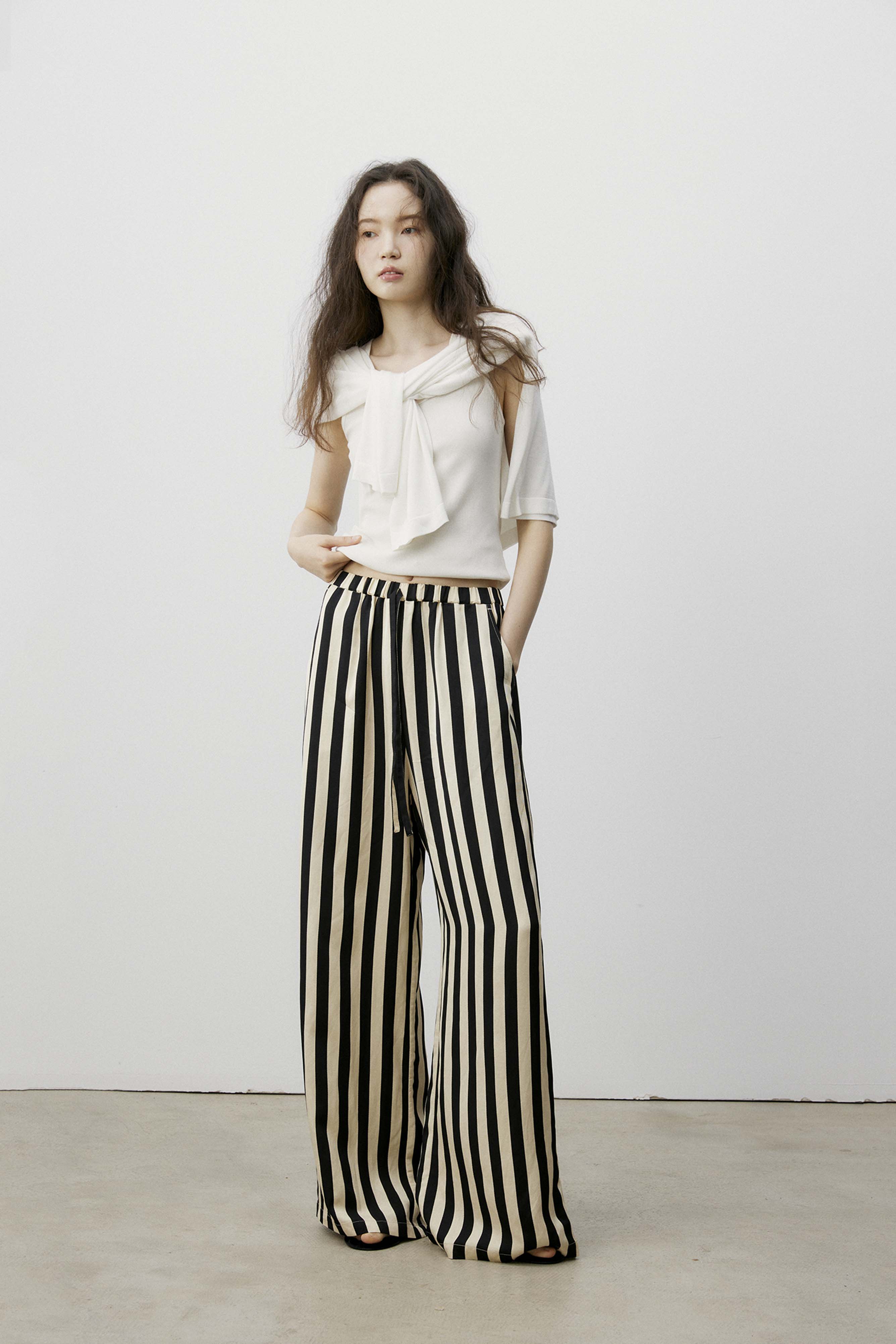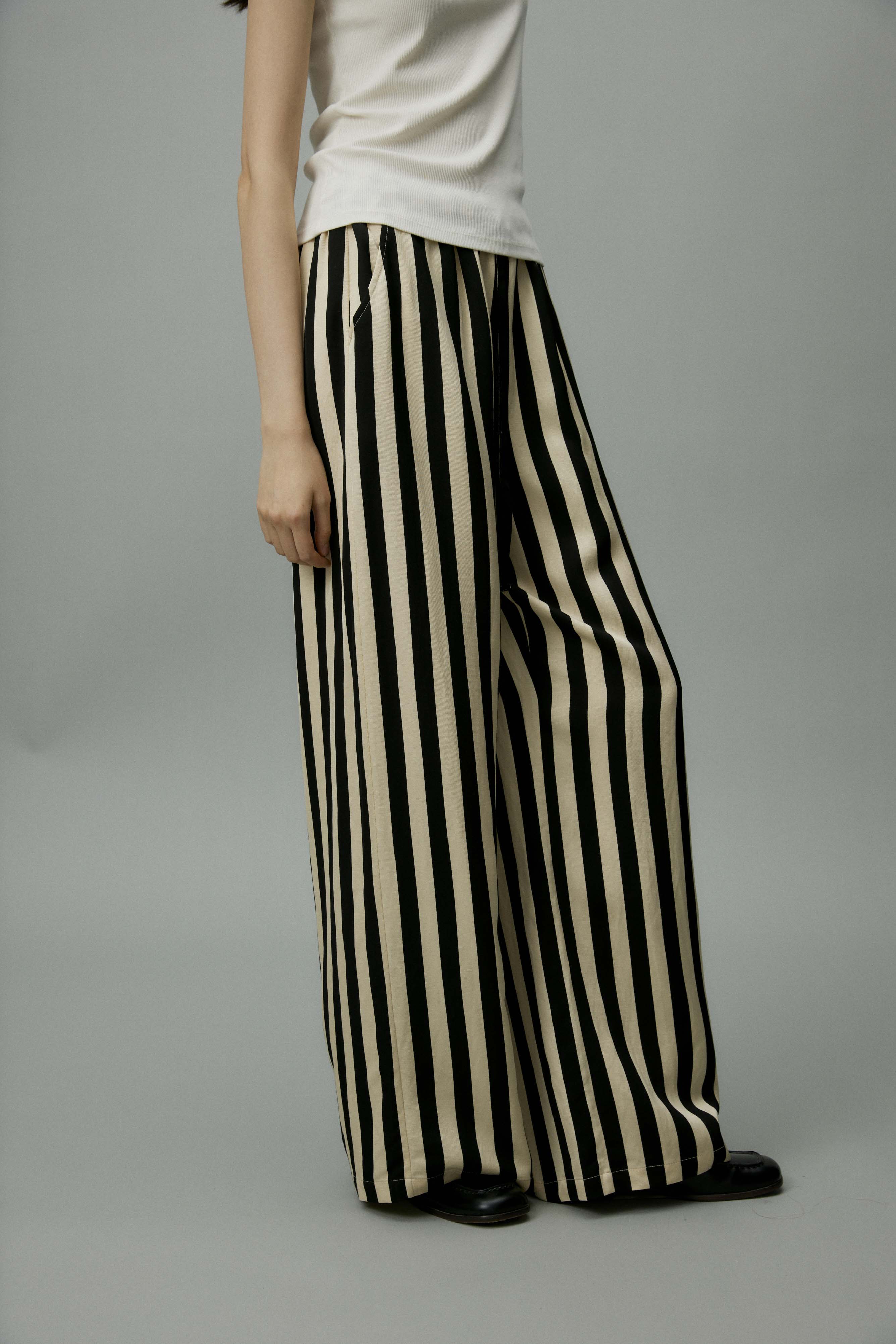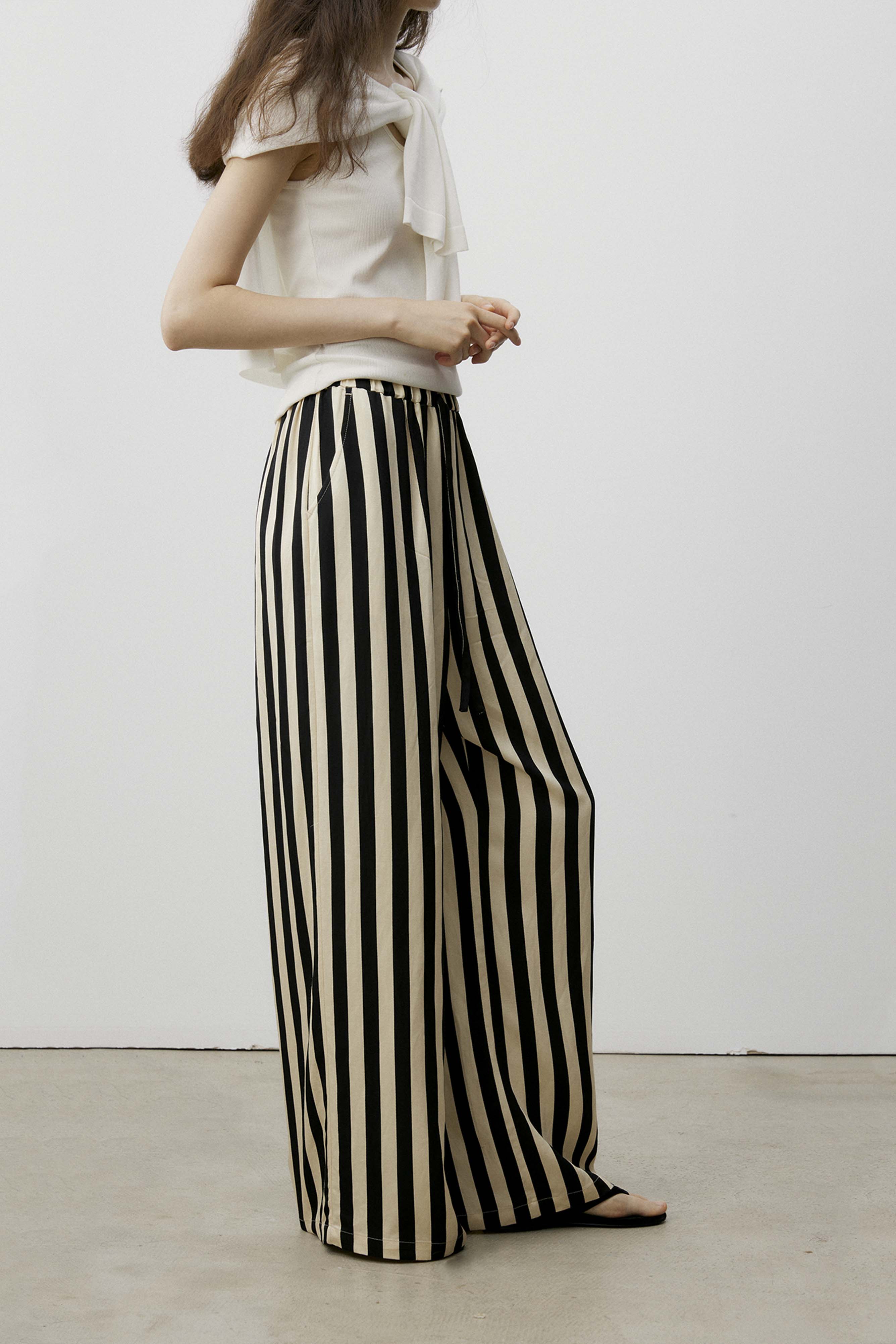 shyshystill/shy202406010/松弛感条纹松紧腰空气裤透气长裤