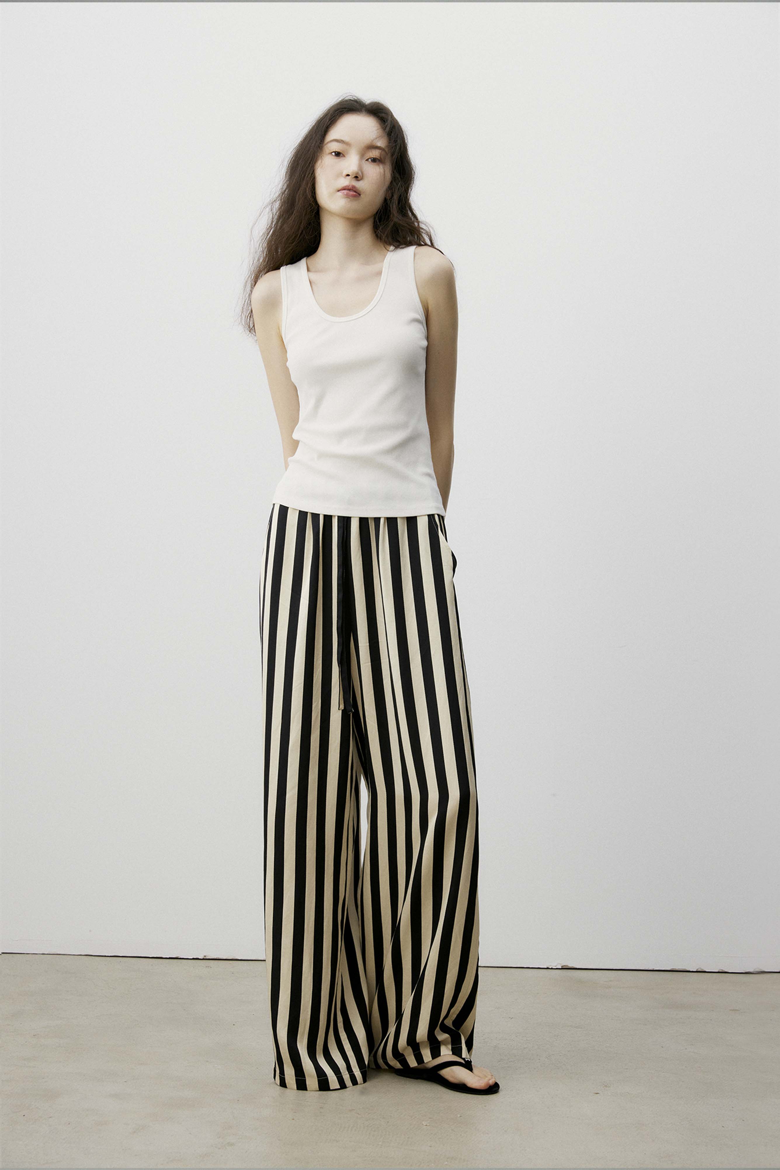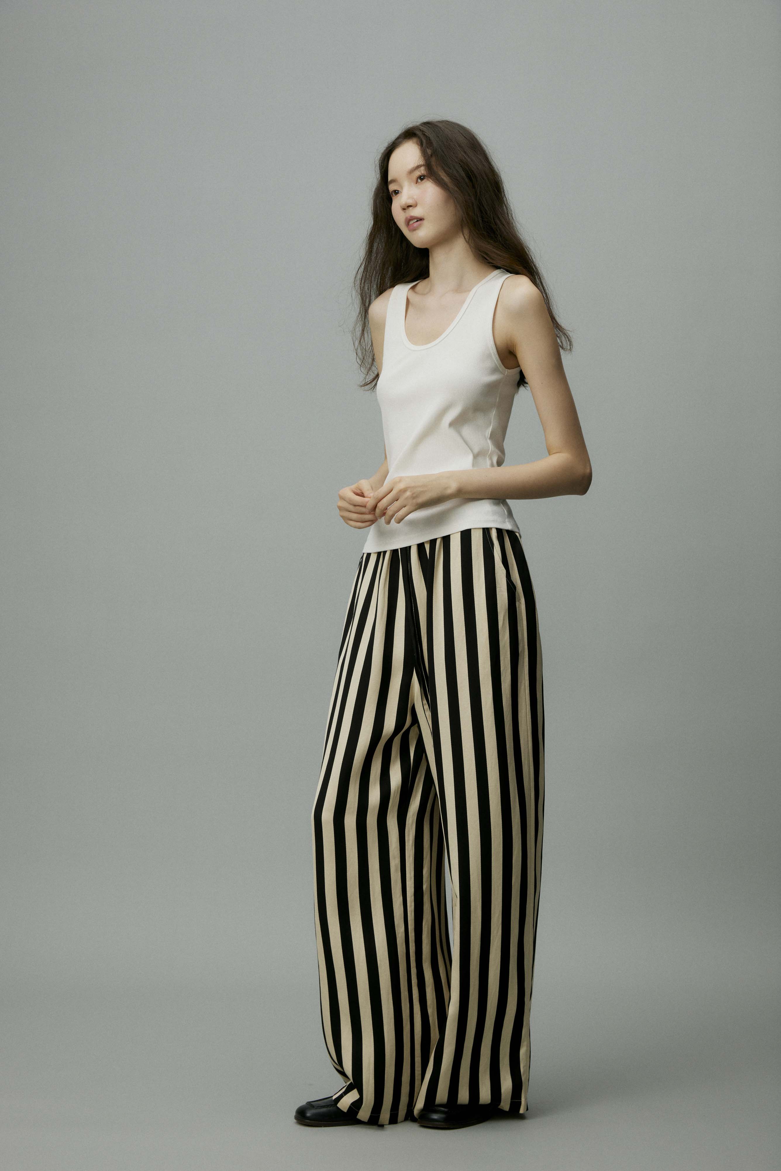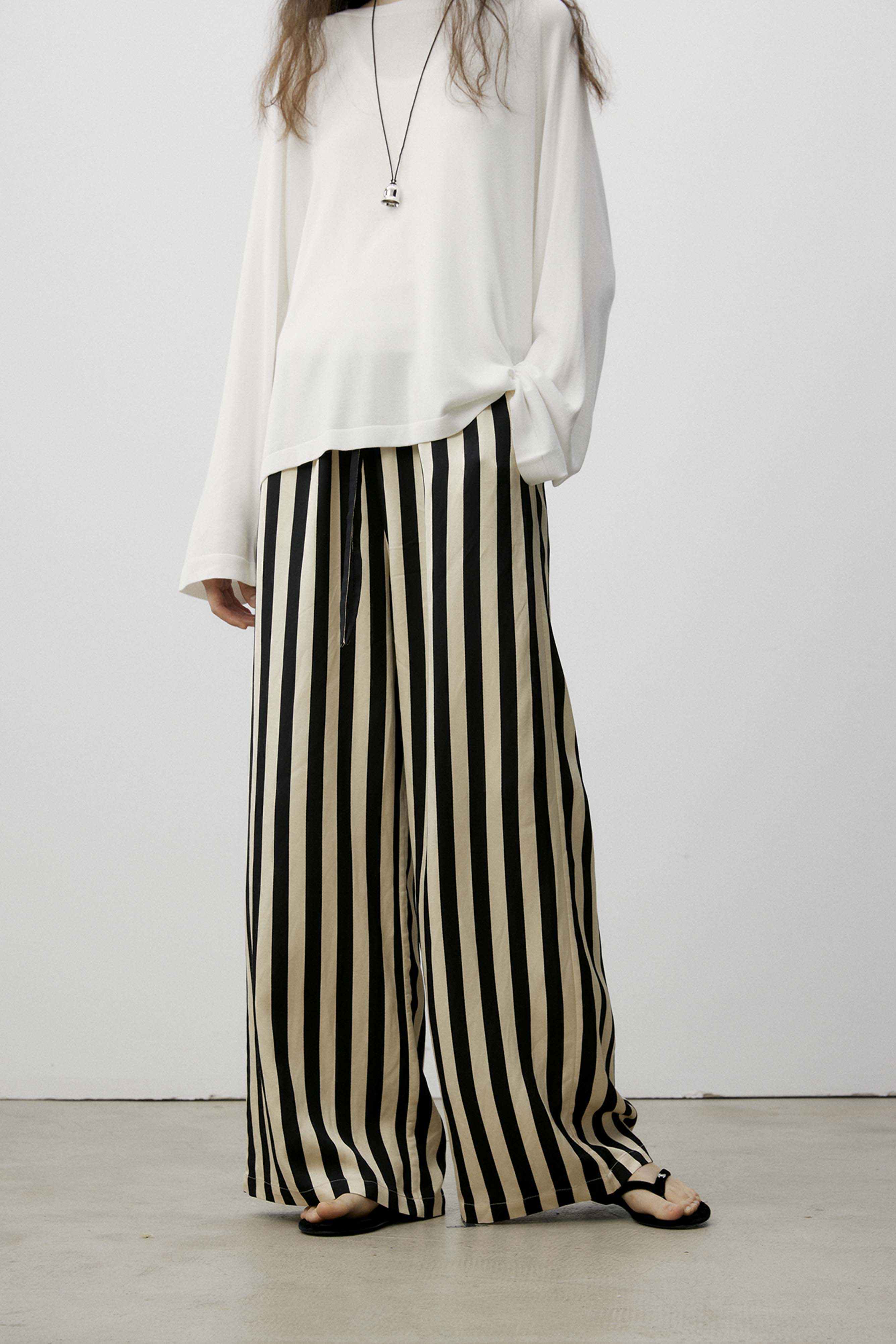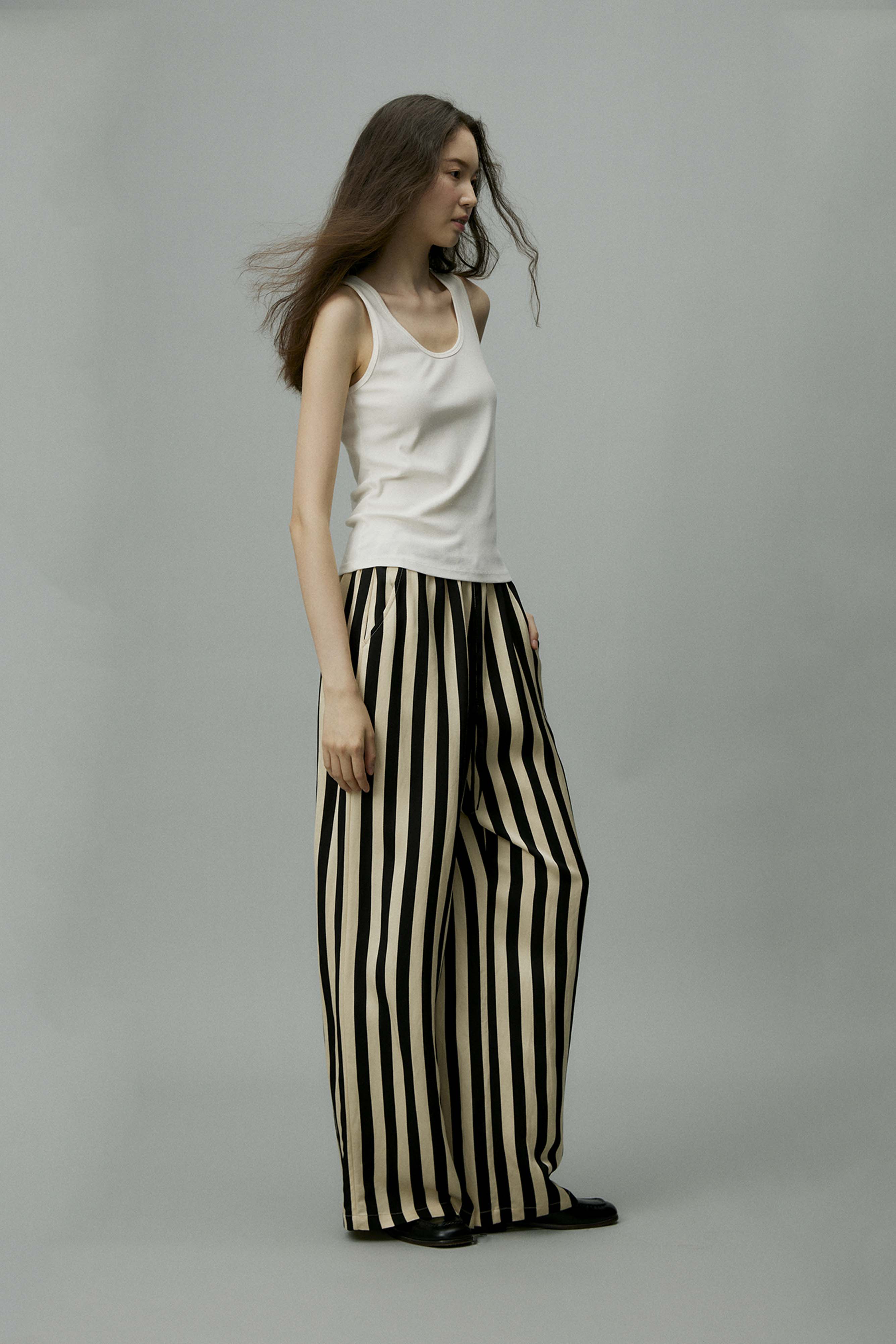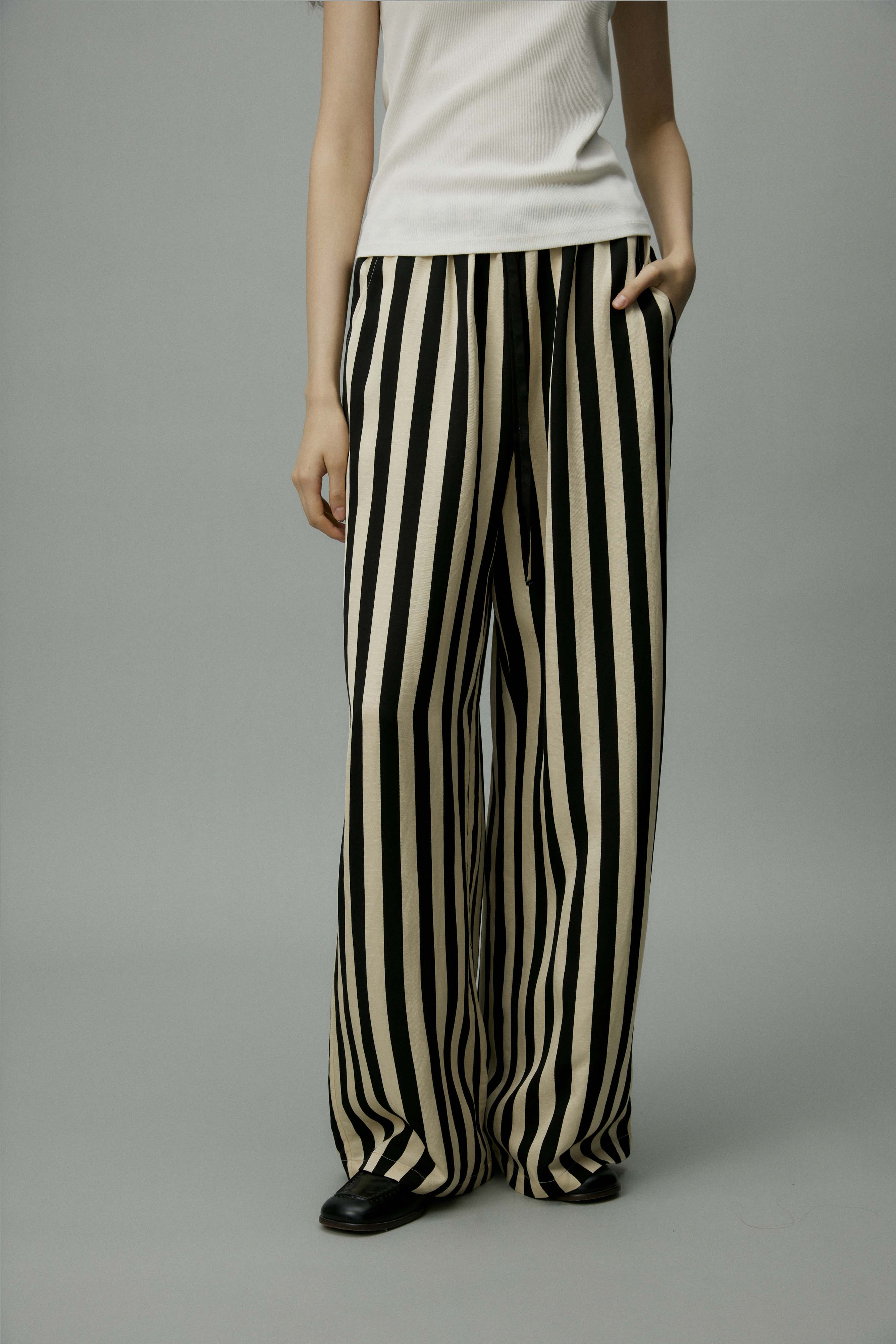 shyshystill/shy202406010/松弛感条纹松紧腰空气裤透气长裤