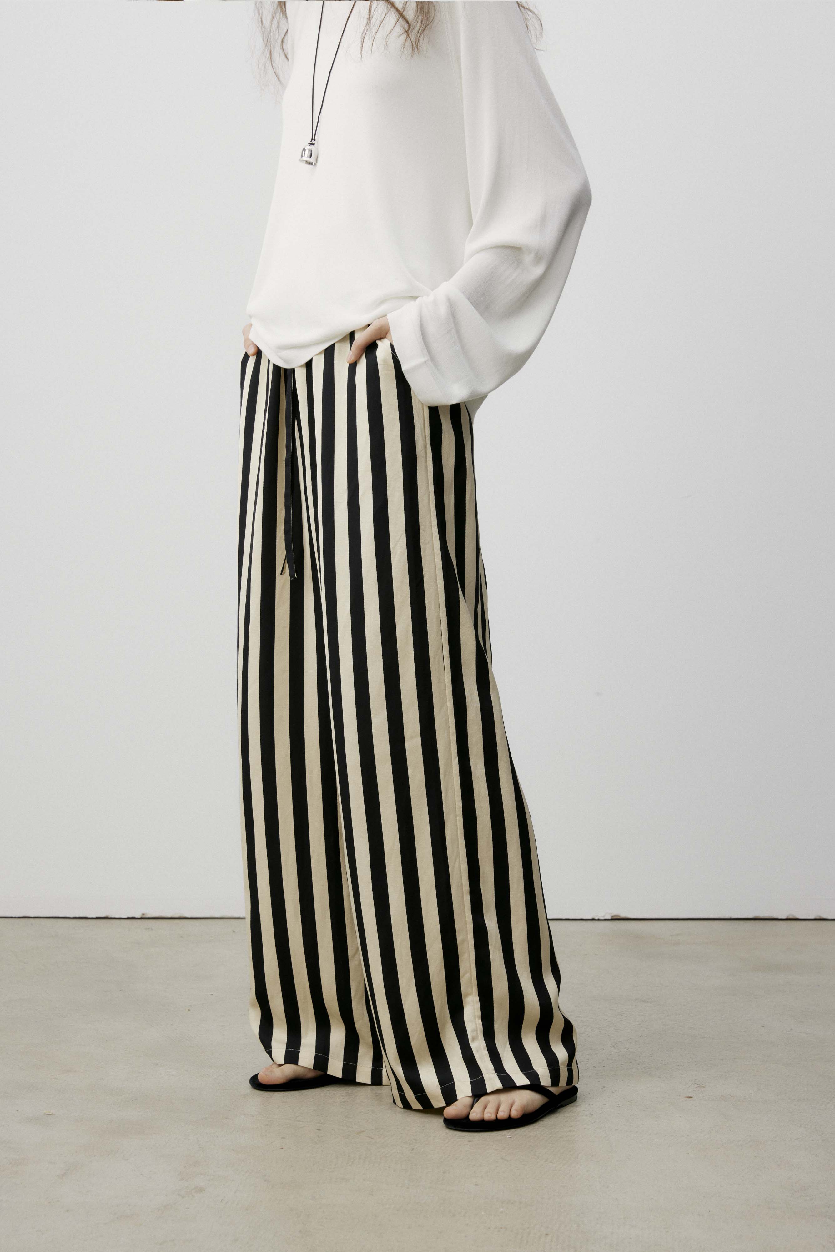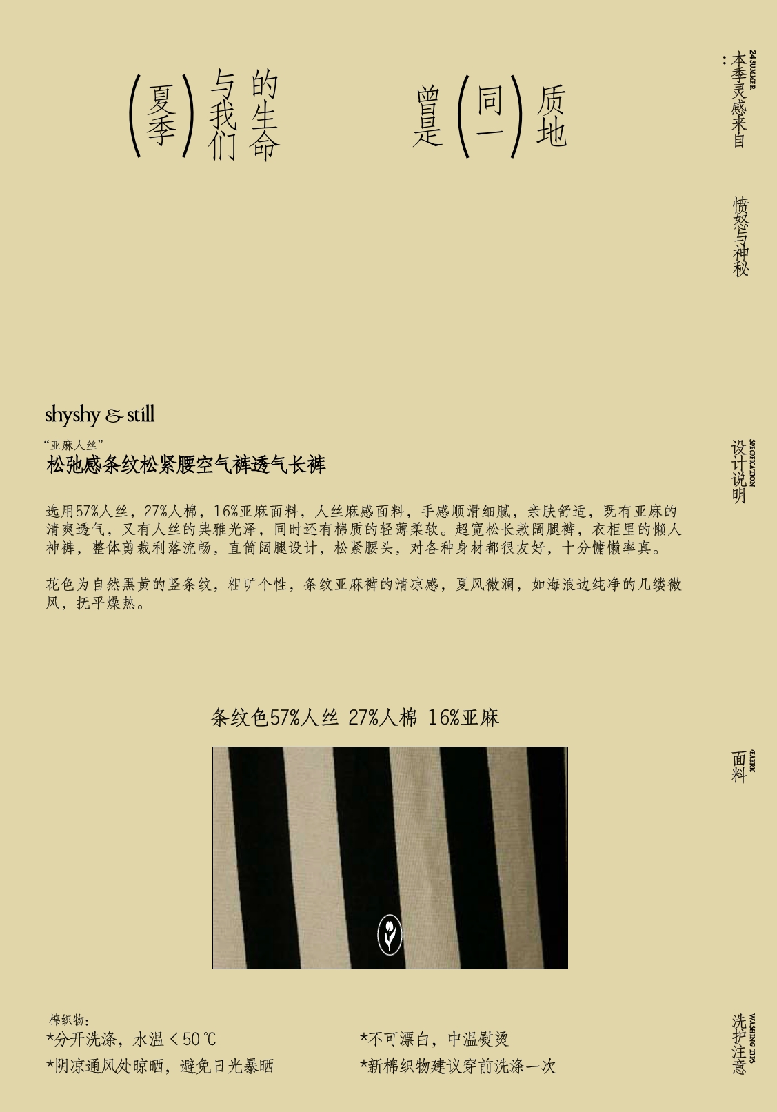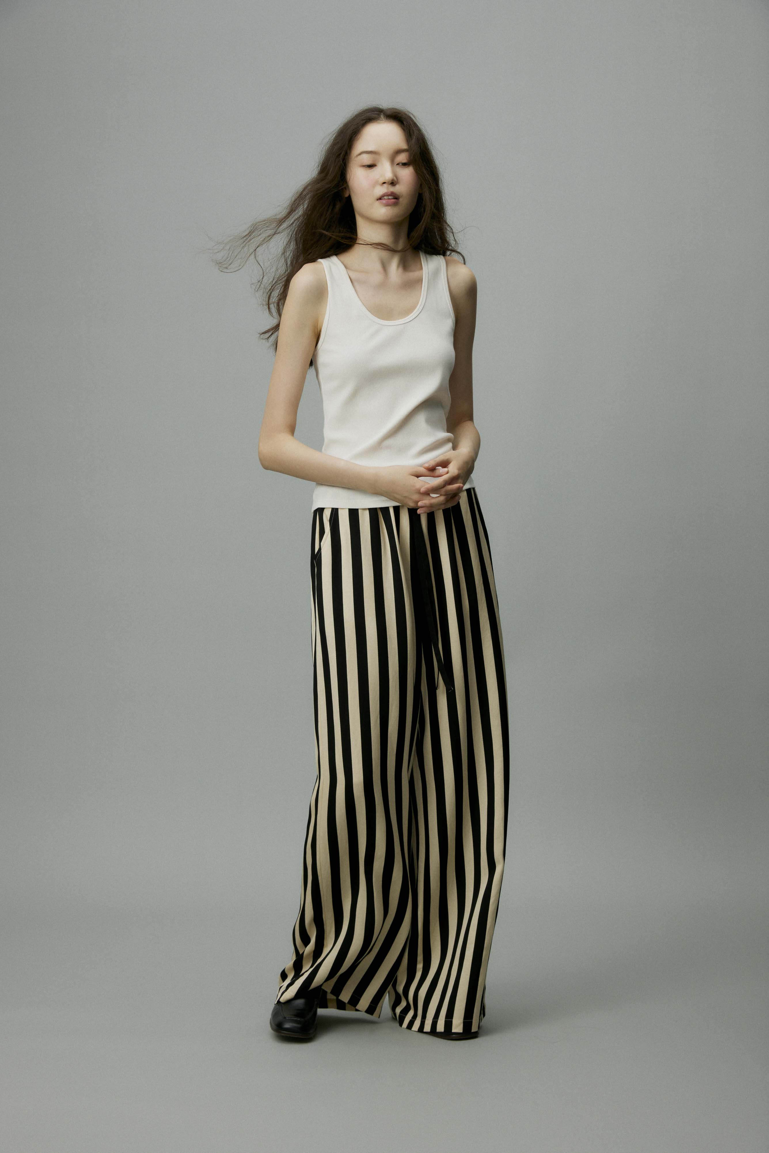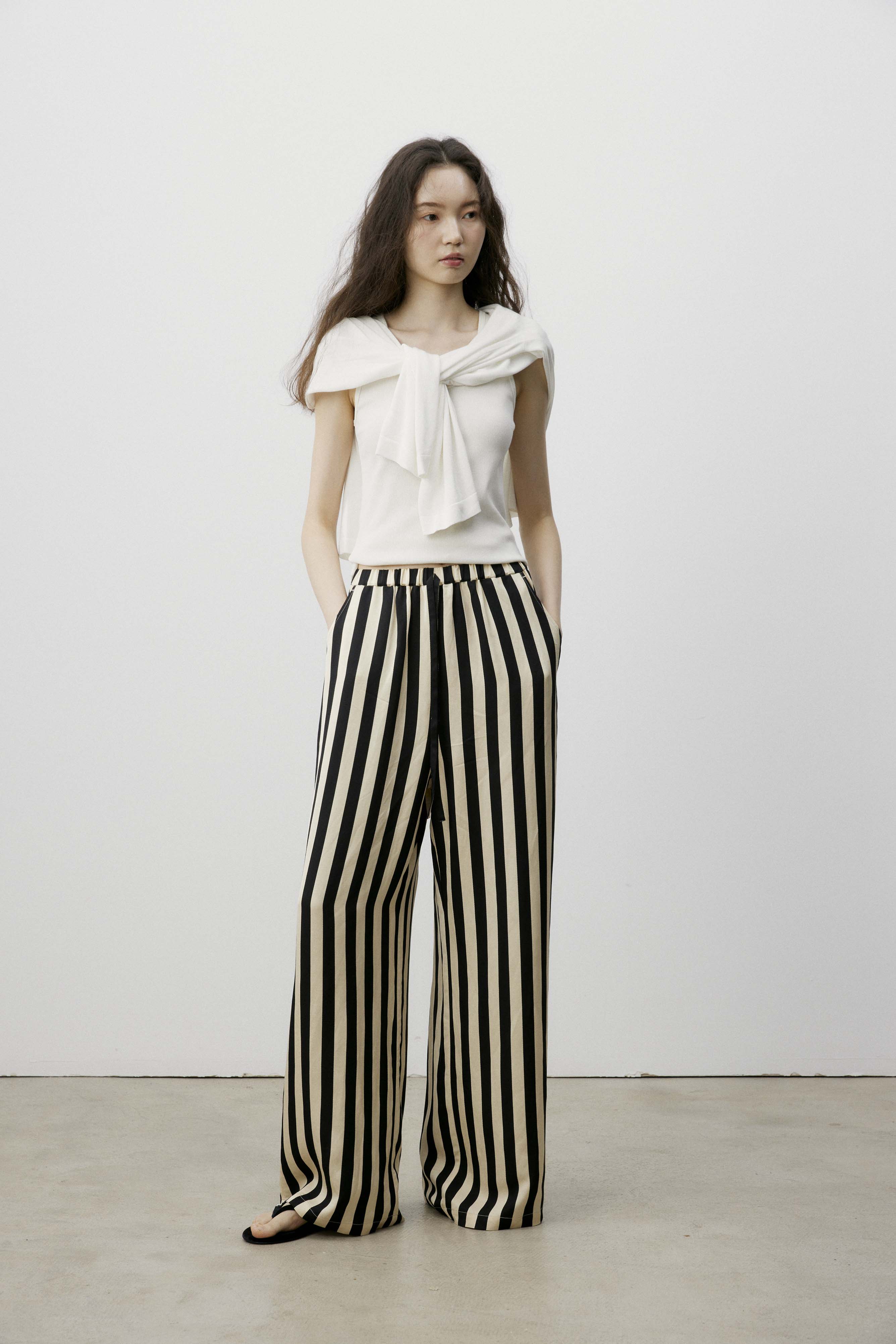 shyshystill/shy202406010/松弛感条纹松紧腰空气裤透气长裤