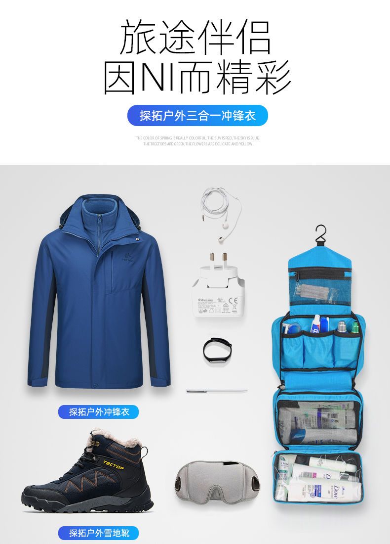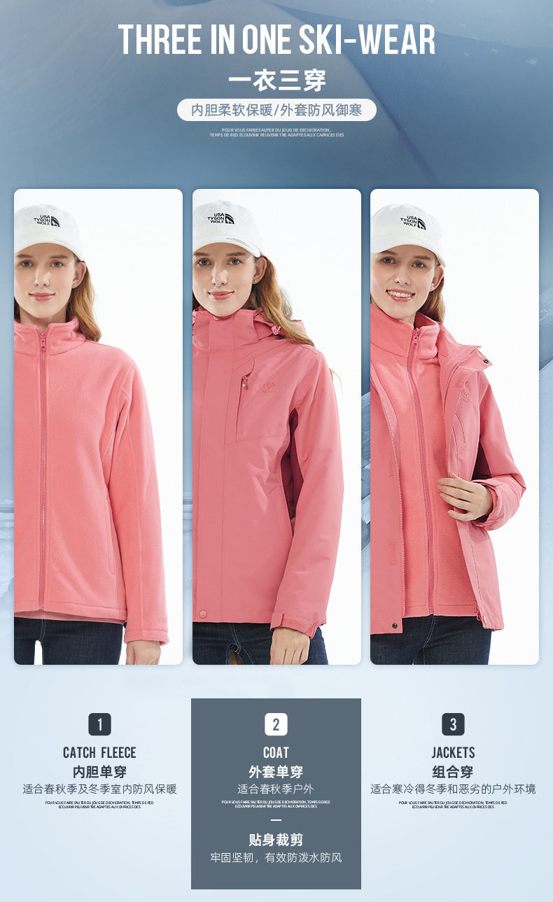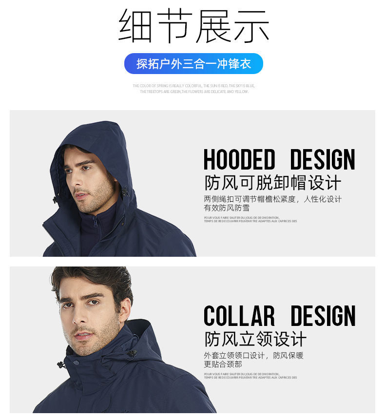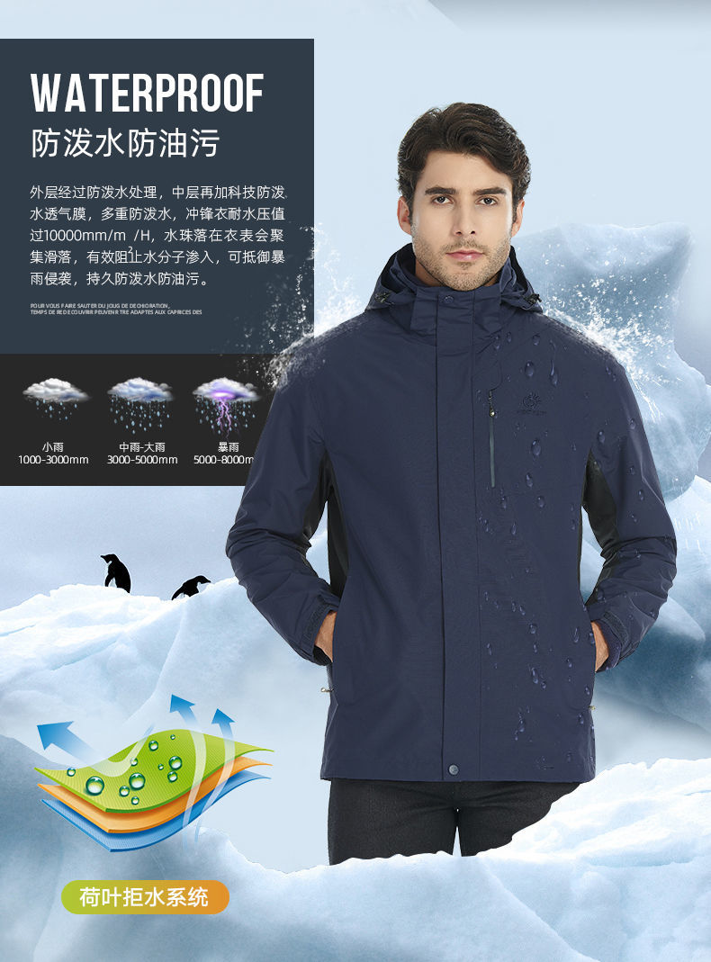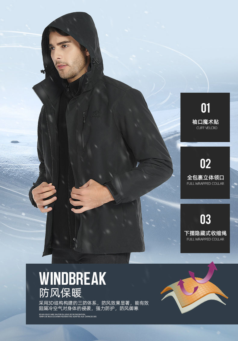 探拓冲锋衣男女秋冬季三合一可拆卸加绒保暖防风防水户外登山外套