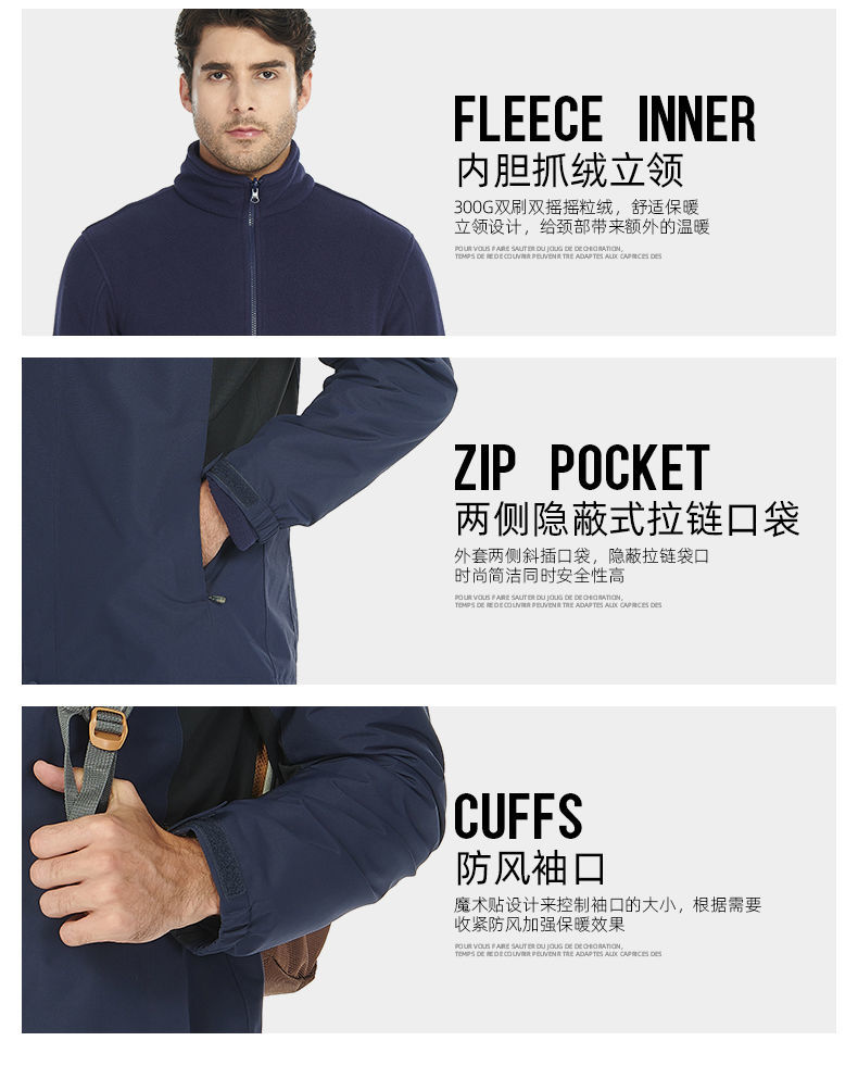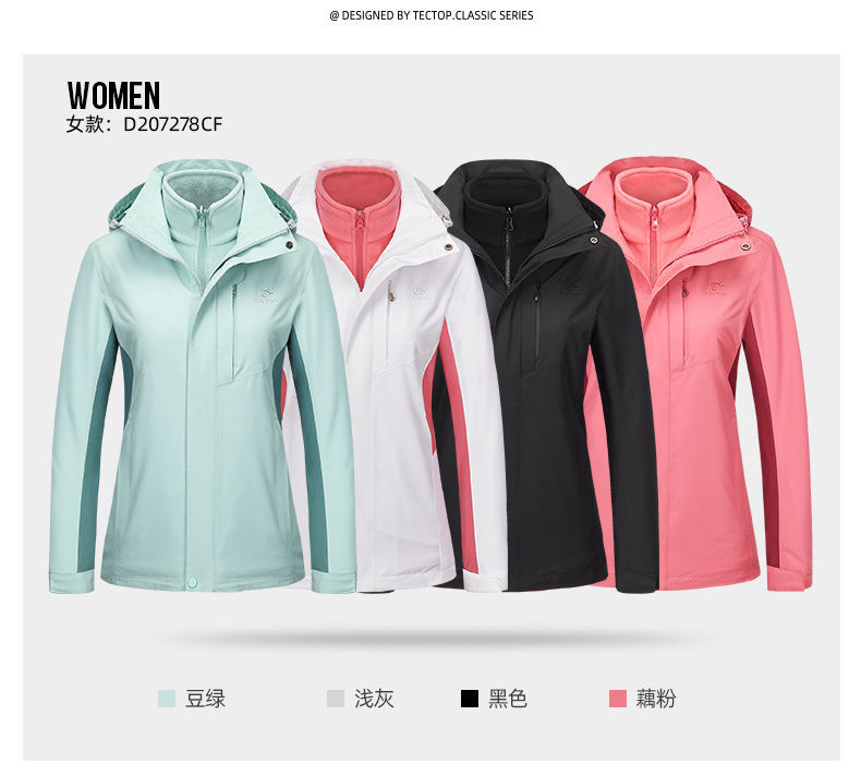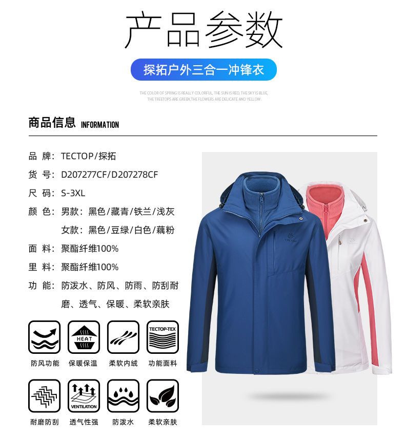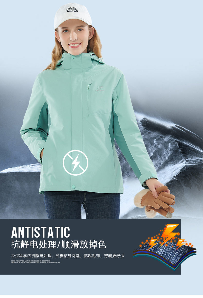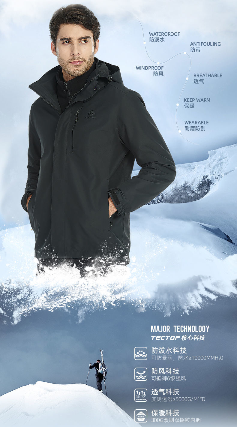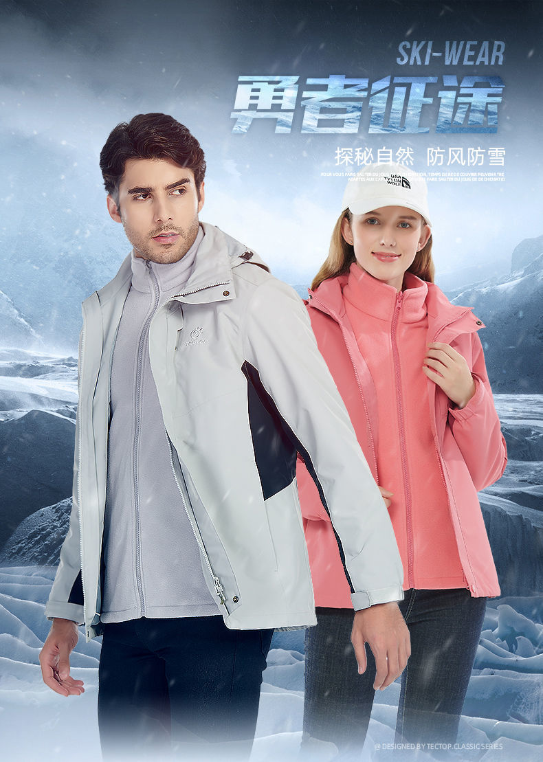 探拓冲锋衣男女秋冬季三合一可拆卸加绒保暖防风防水户外登山外套