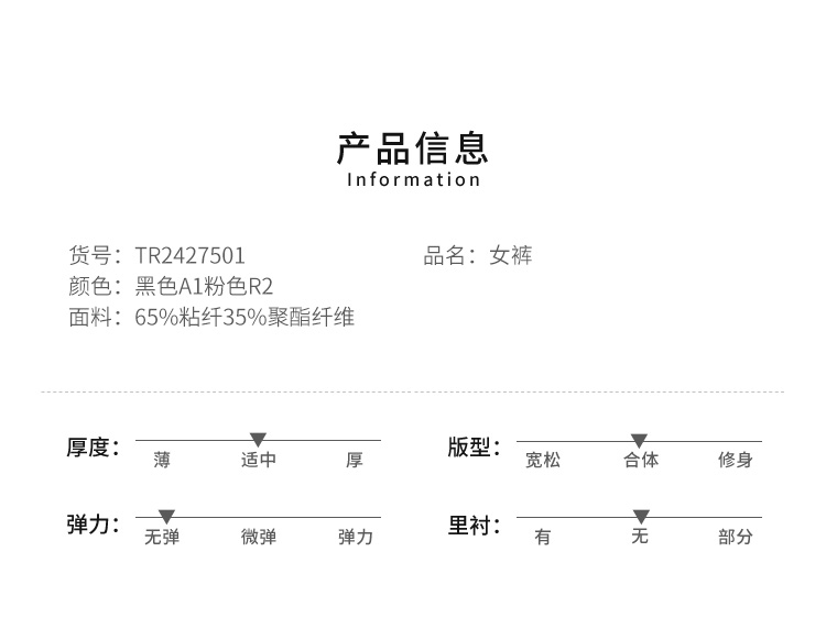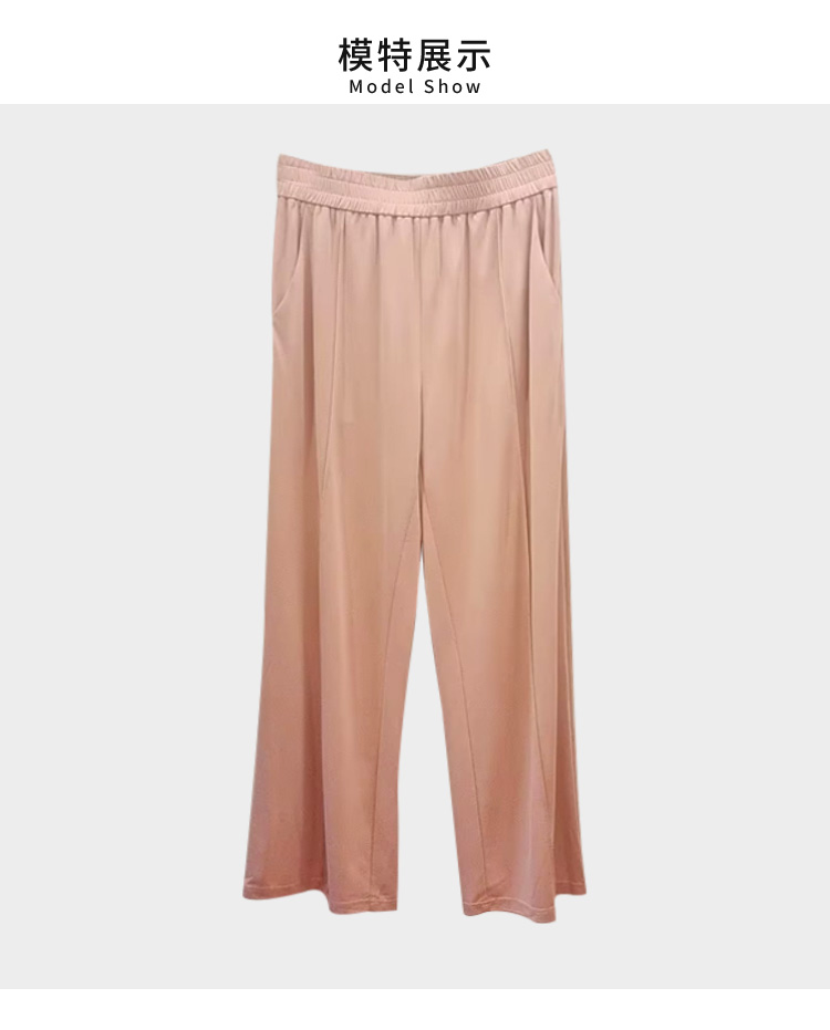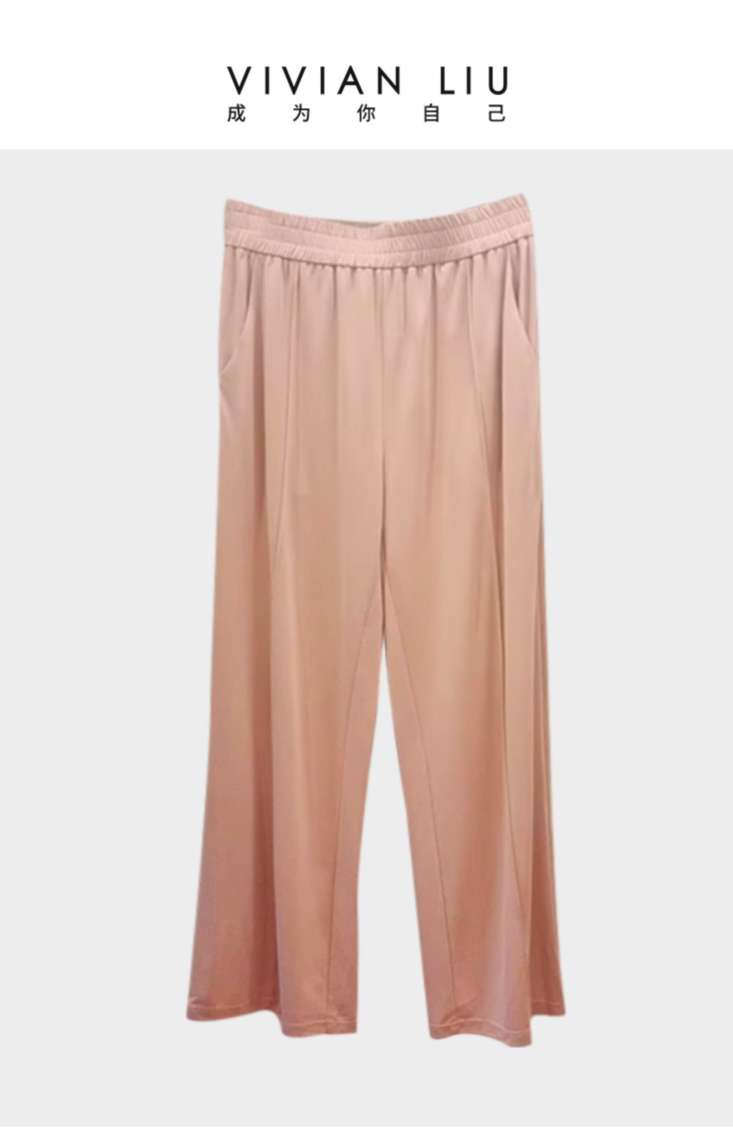 VIVIAN LIU TR2427501春女装新款时尚斜插兜松紧腰宽松针织长裤