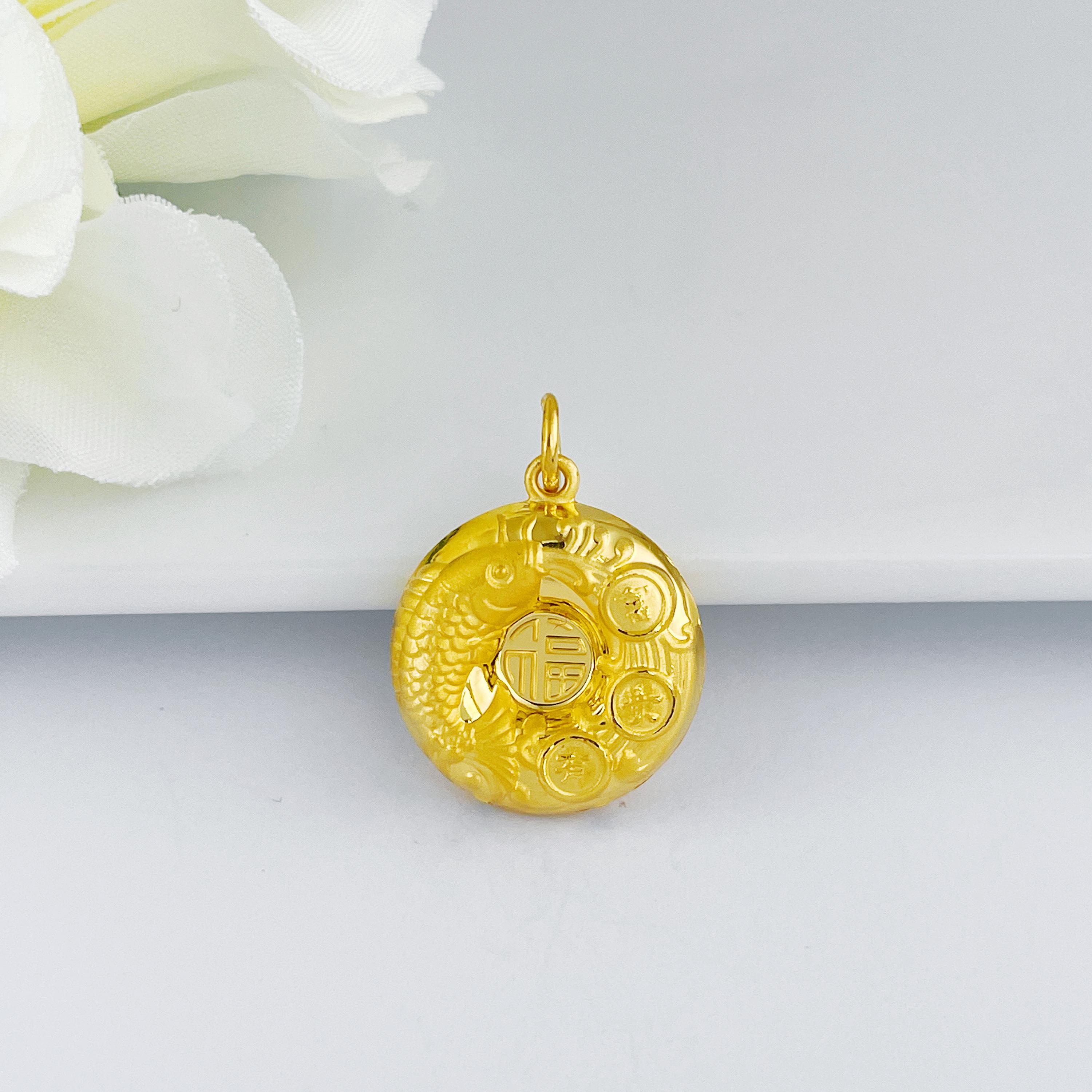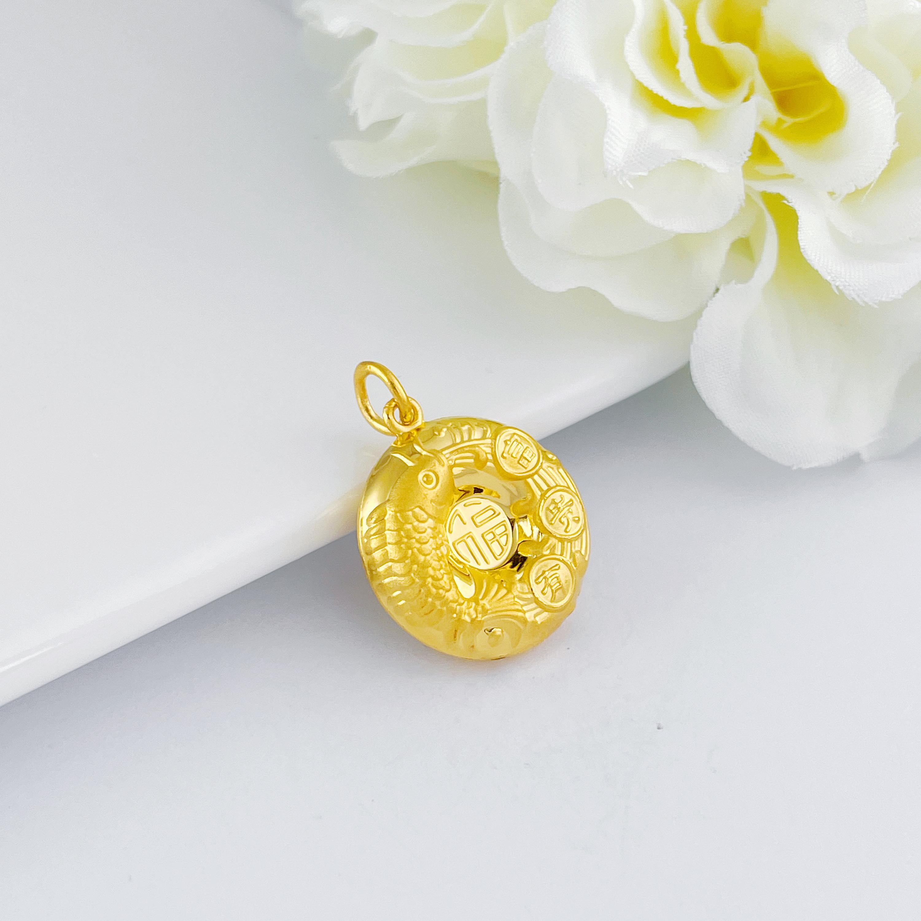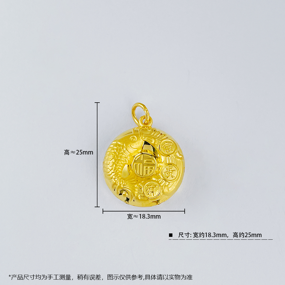 【限时克减150元】足金999.9 双面富贵有鱼空心福字平安扣吊坠(AF020DZ00079)(预售产品下单后不退款不退货不换货不补差价)