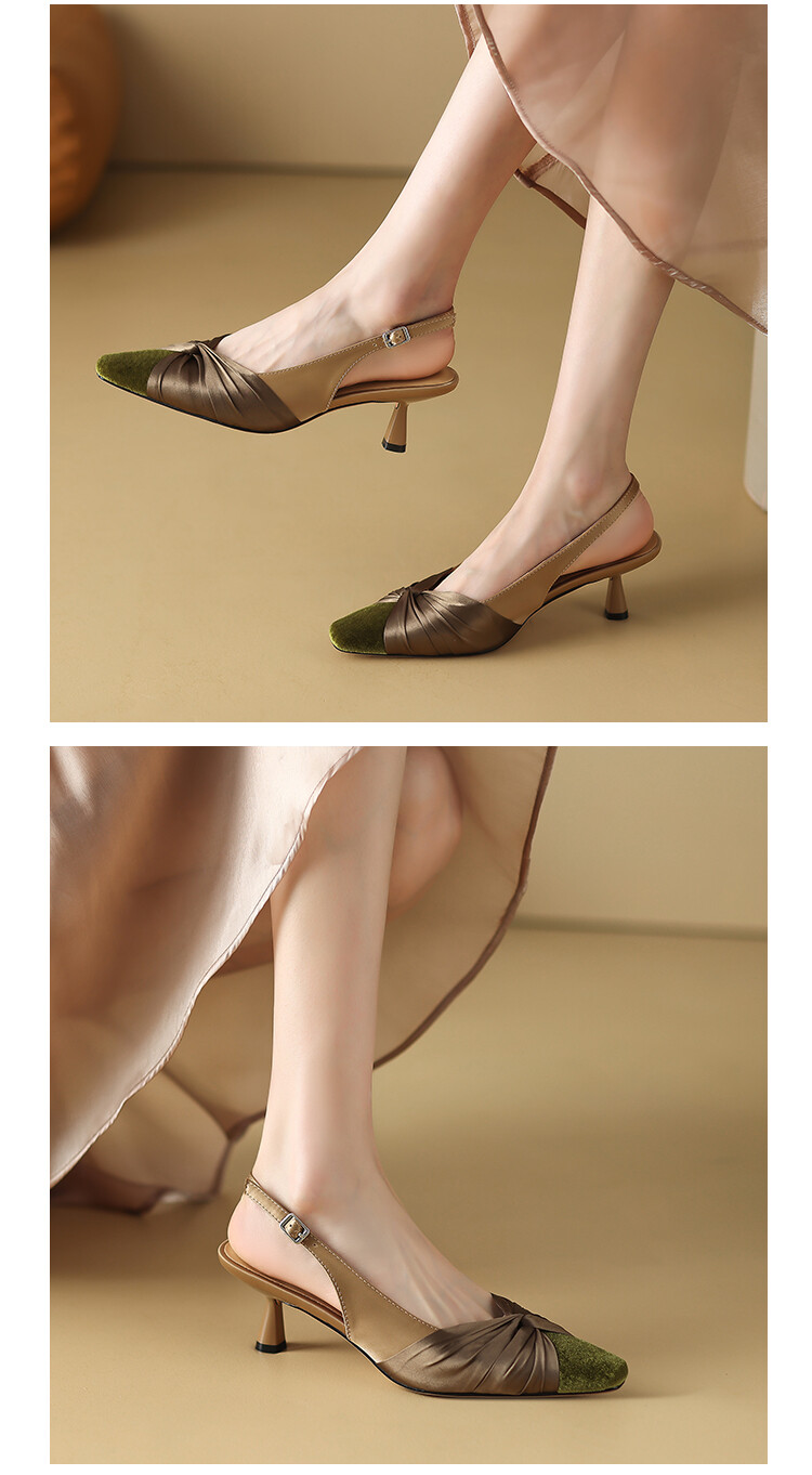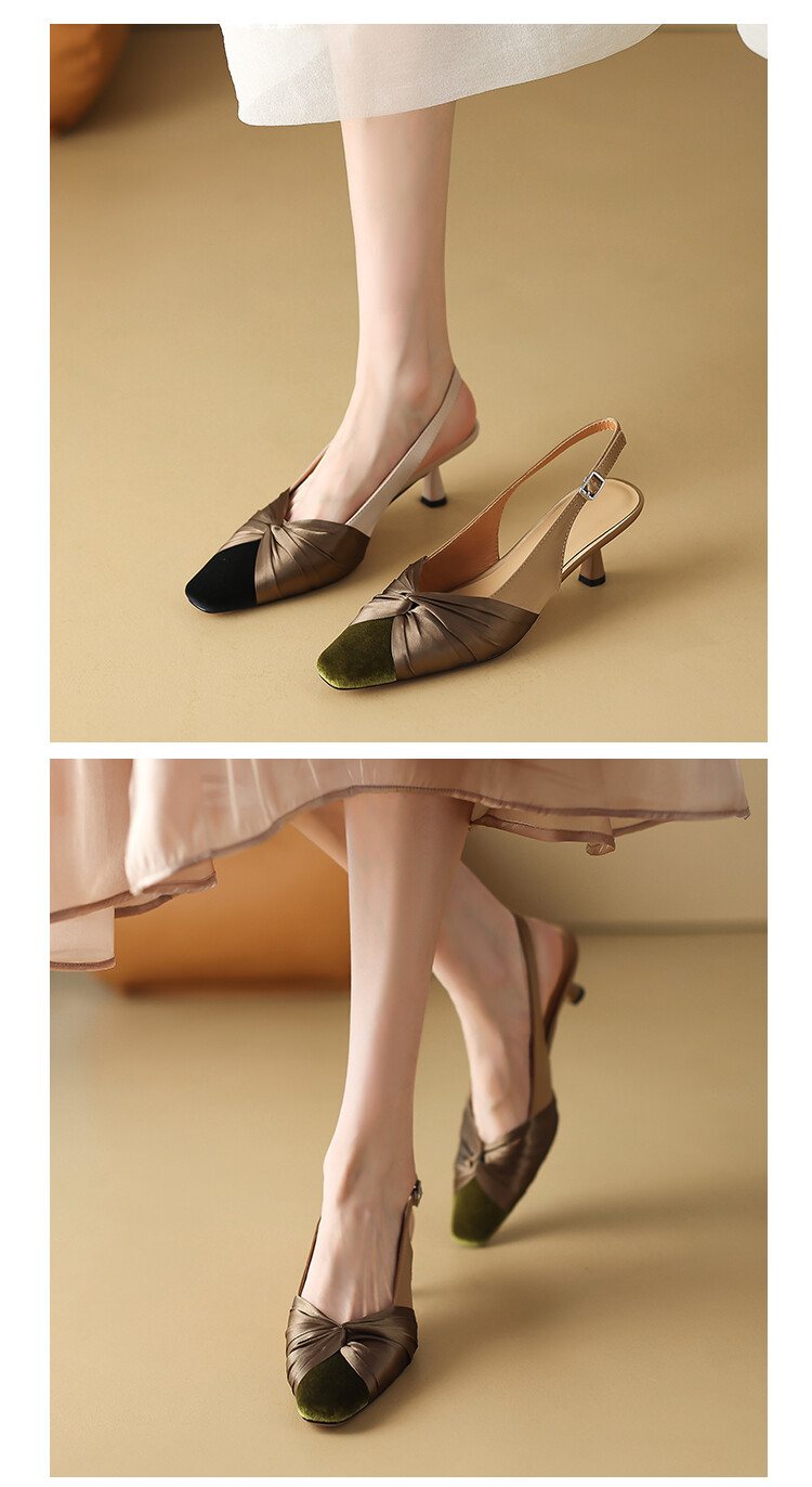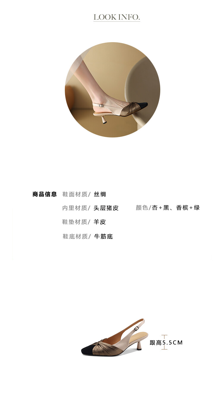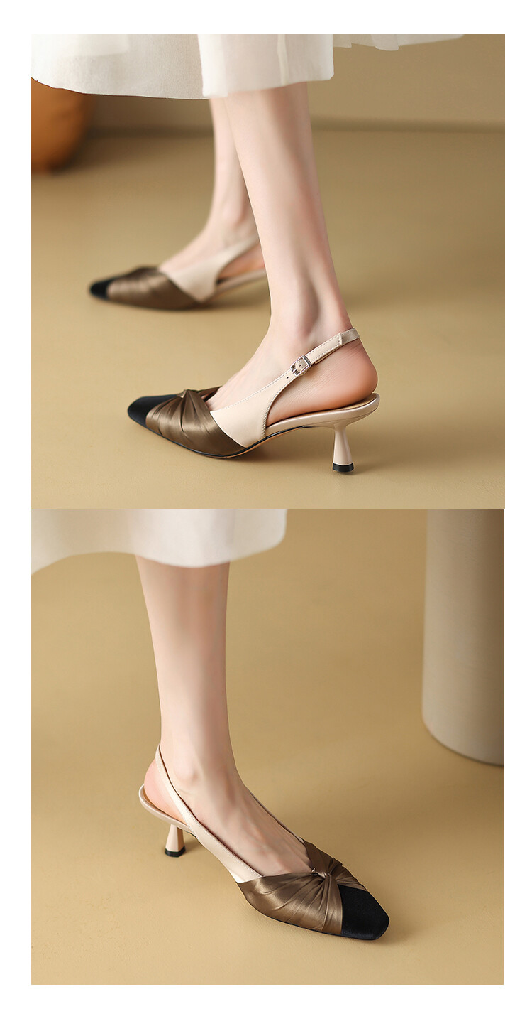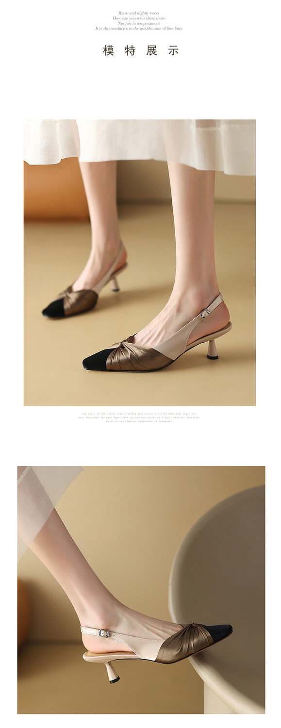 【预售5天】法式绸缎尖头细跟高跟鞋2024春夏季露跟后空凉鞋拼色气质单鞋子女XXMY&461