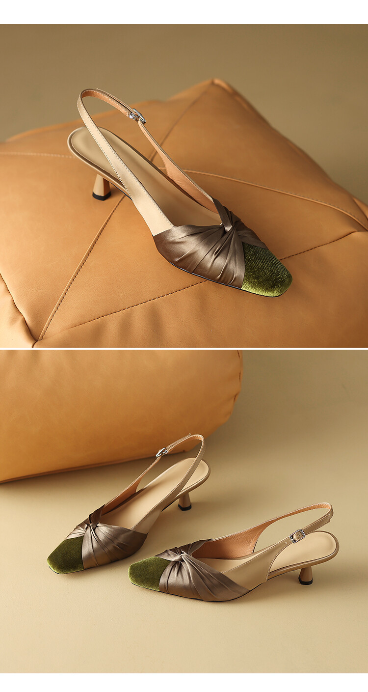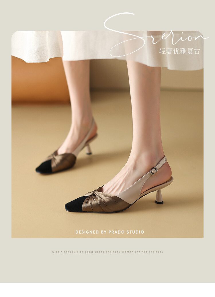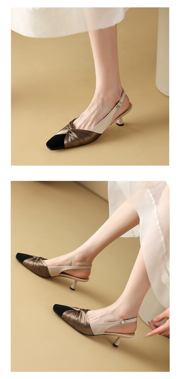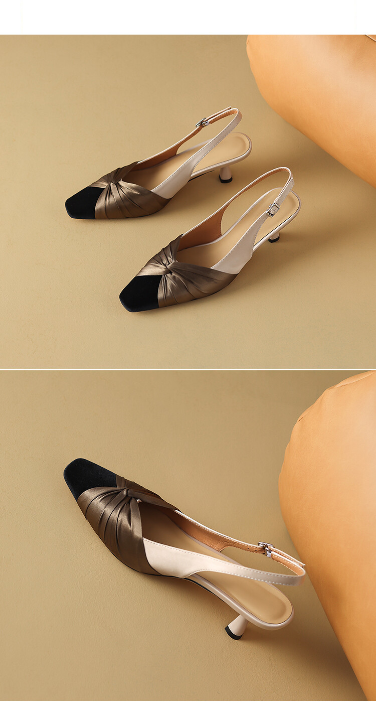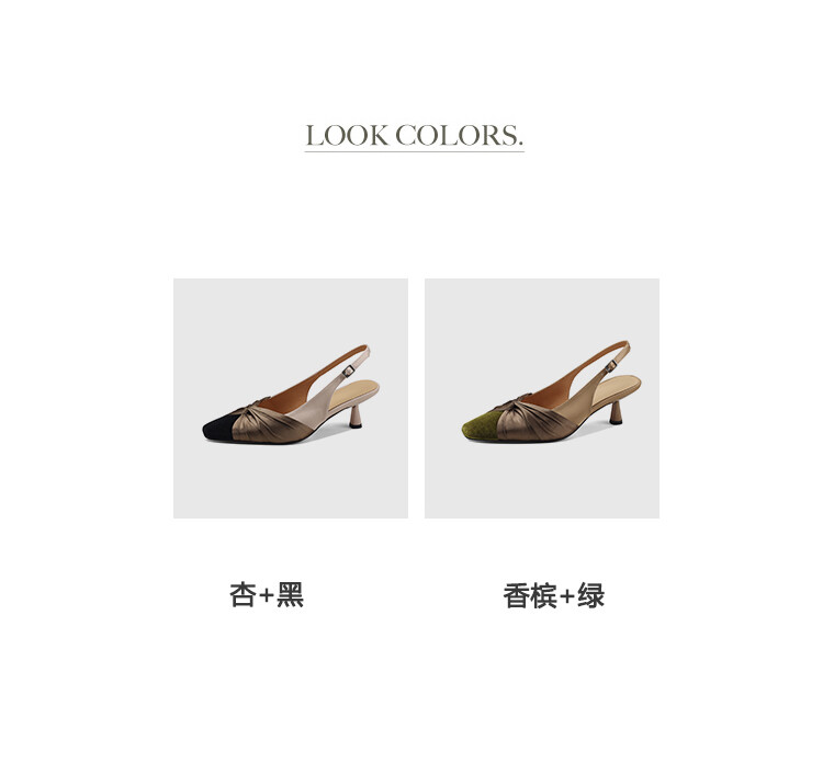 【预售5天】法式绸缎尖头细跟高跟鞋2024春夏季露跟后空凉鞋拼色气质单鞋子女XXMY&461