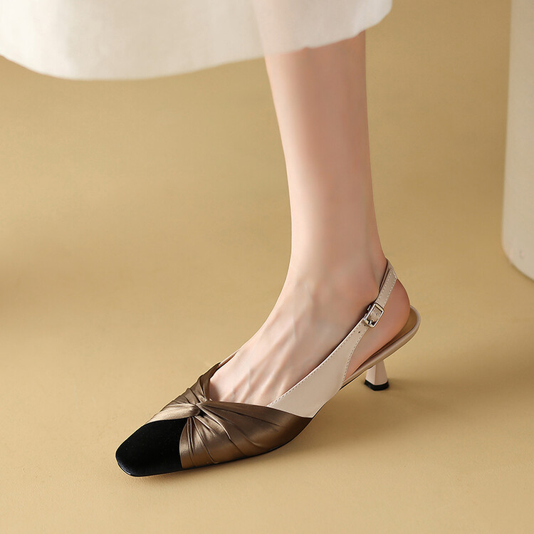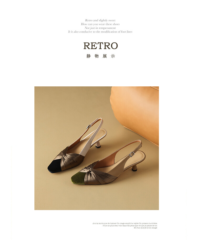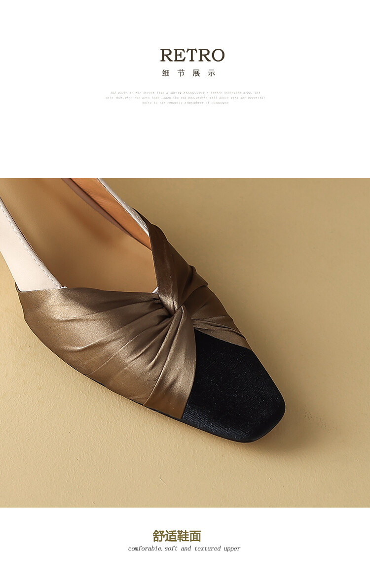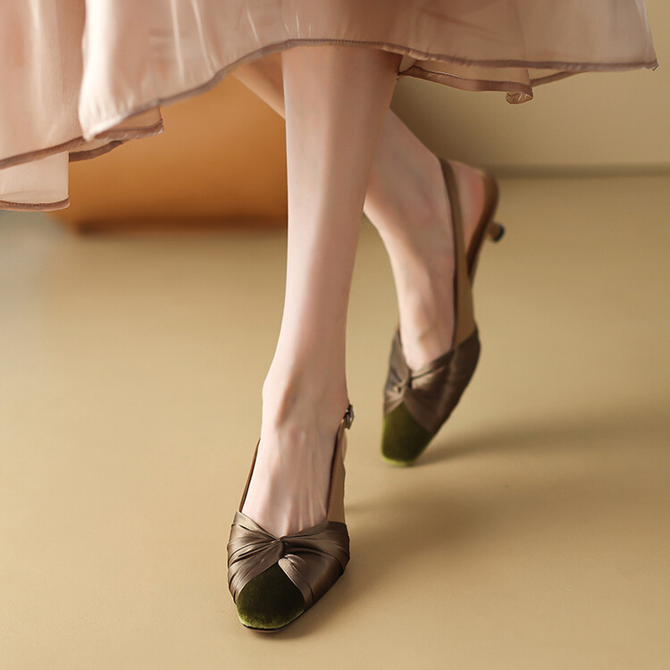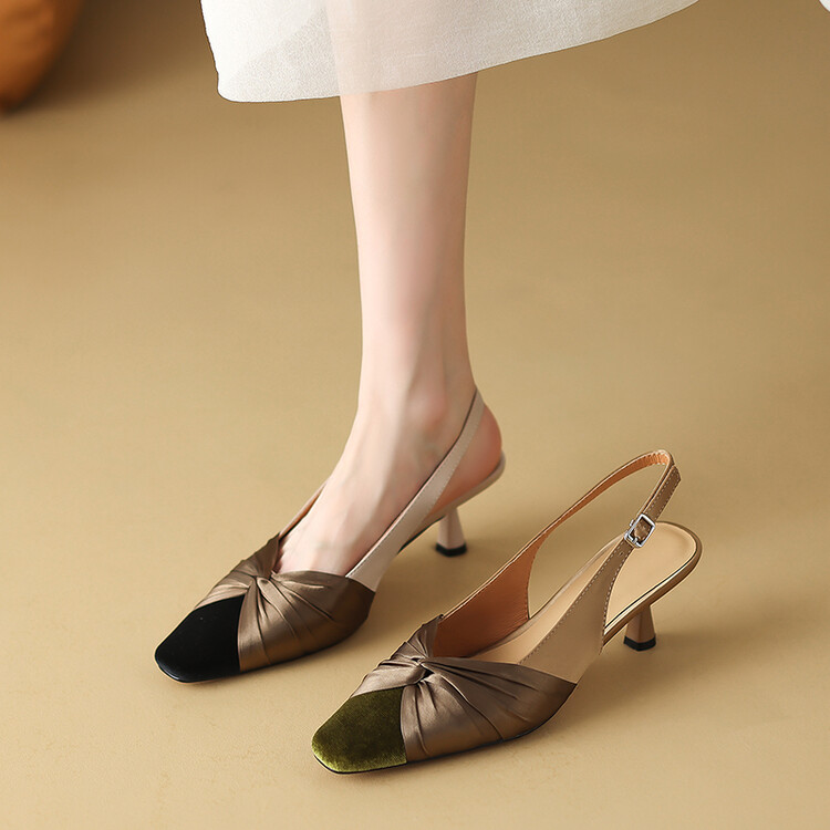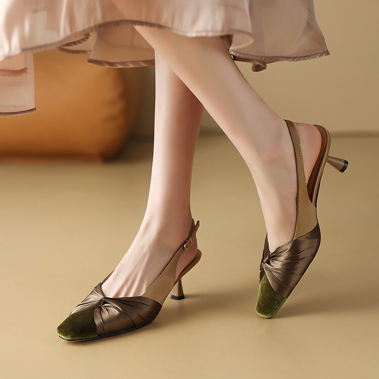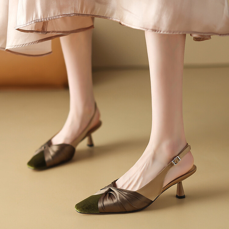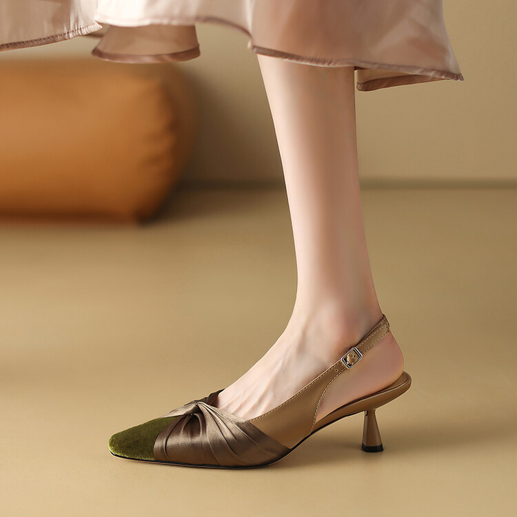 【预售5天】法式绸缎尖头细跟高跟鞋2024春夏季露跟后空凉鞋拼色气质单鞋子女XXMY&461