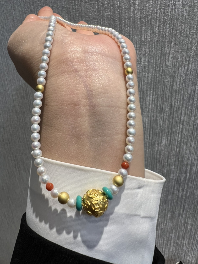 "招财进宝,八方来财"古法baby珠项链