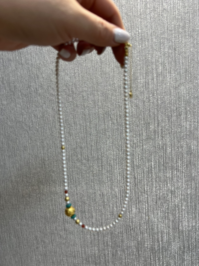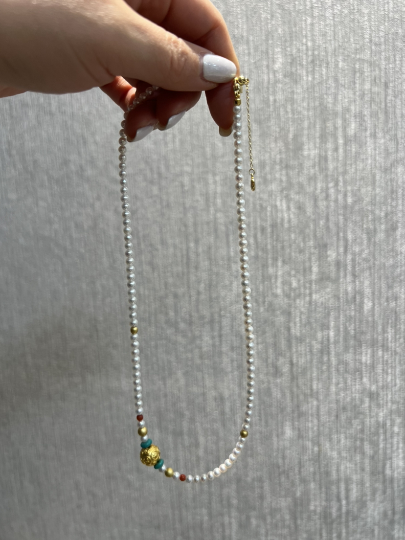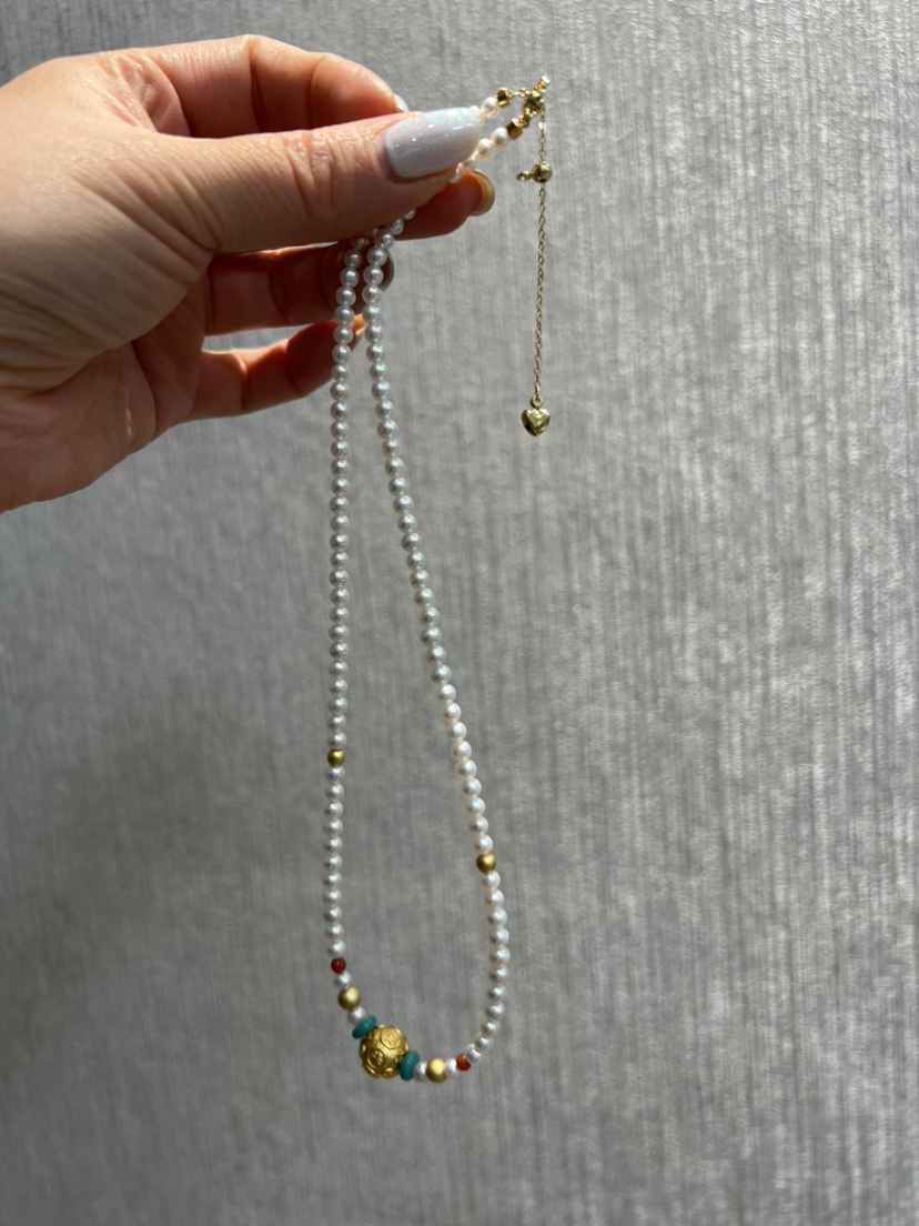 4-4.5淡水AK极强光baby珠加上南红绿松石的点缀~