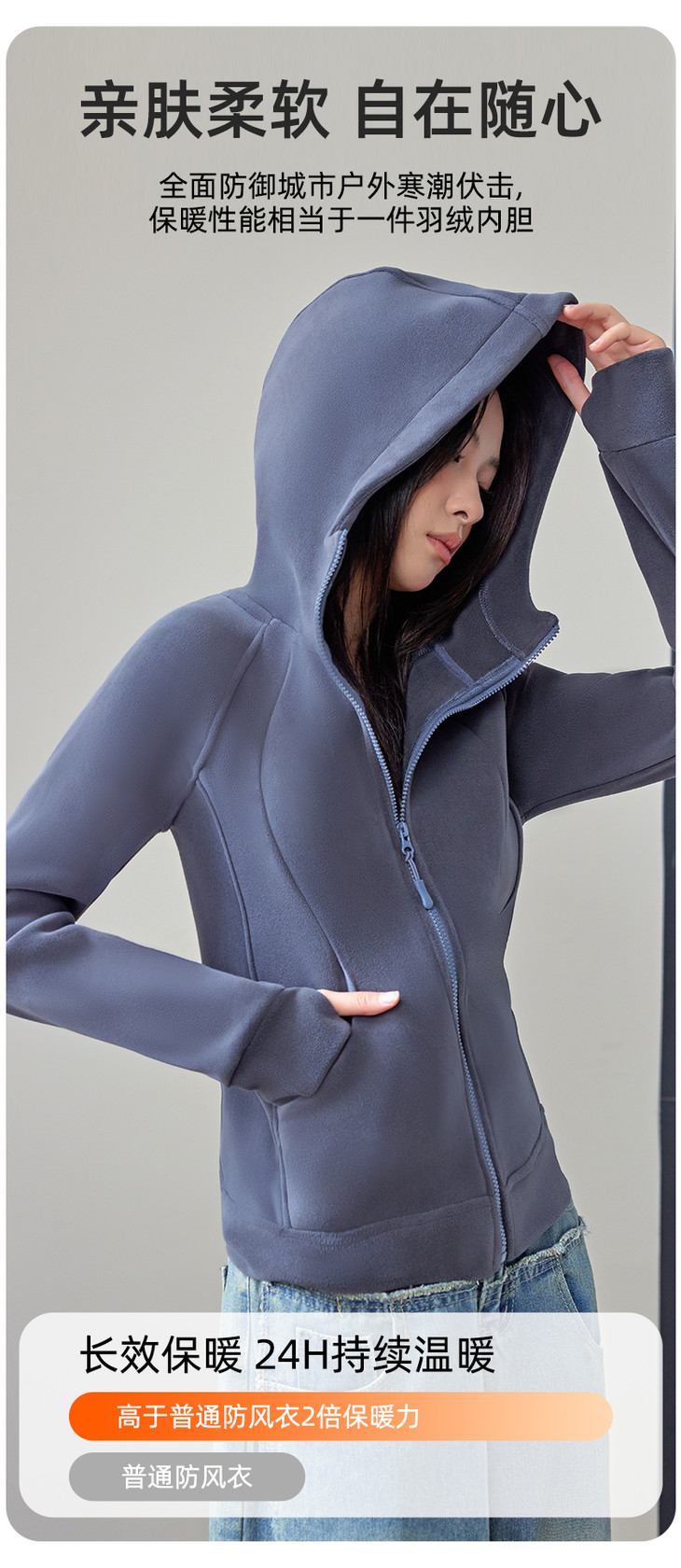 lulu同款修身防风连帽卫衣 双面奥利绒 亲肤暖感 御寒锁温 保暖不显臃肿