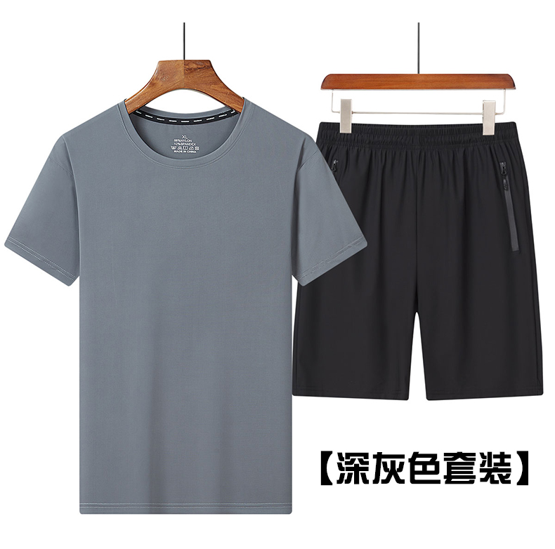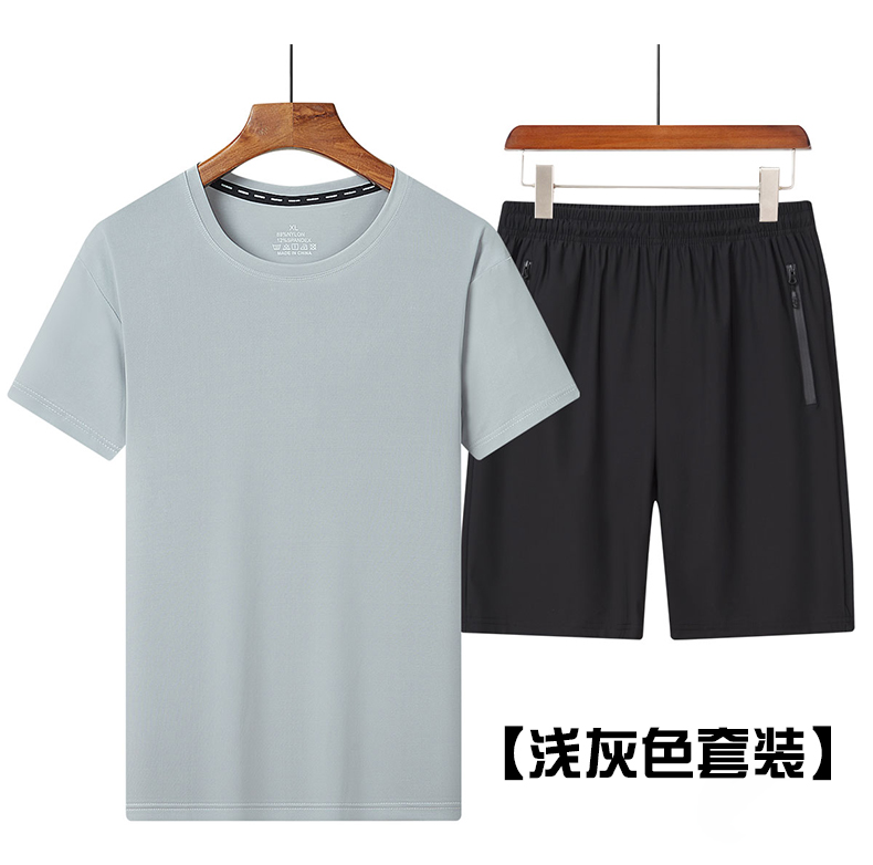 【仅需69元!】培蒙夏季冰丝套装 短袖+短裤清凉舒适运动男士套装两件套 7703