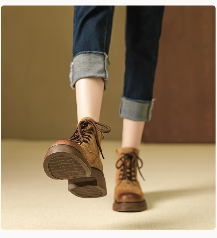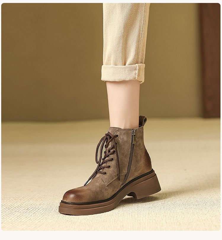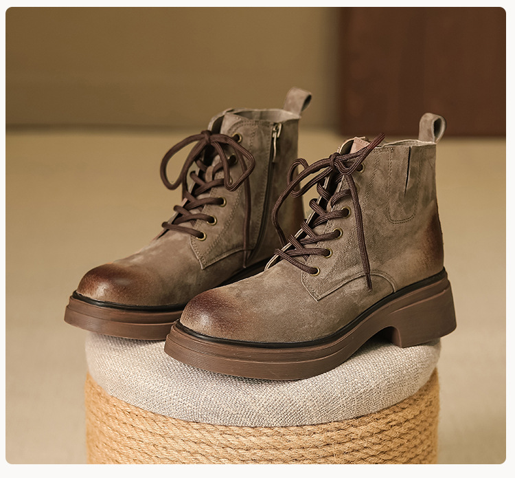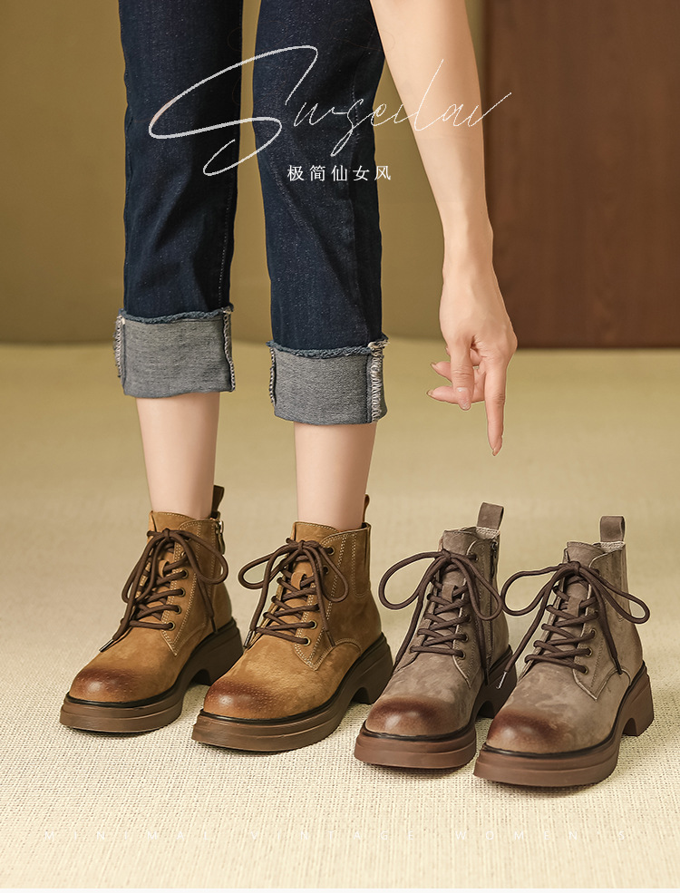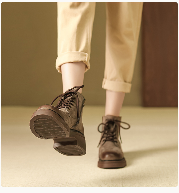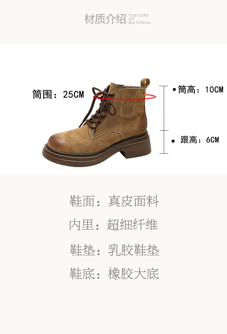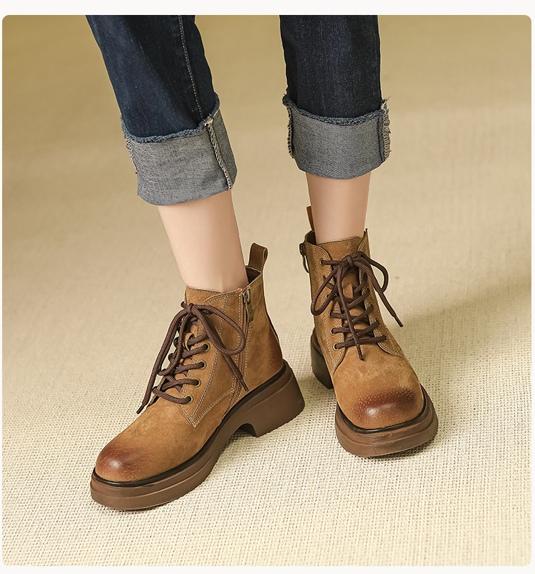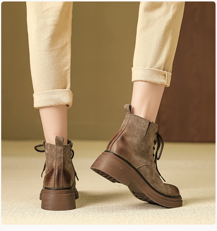 【女鞋专场】全真皮复古时尚系带马丁靴女2023年秋冬新款圆头厚底擦色短靴女款