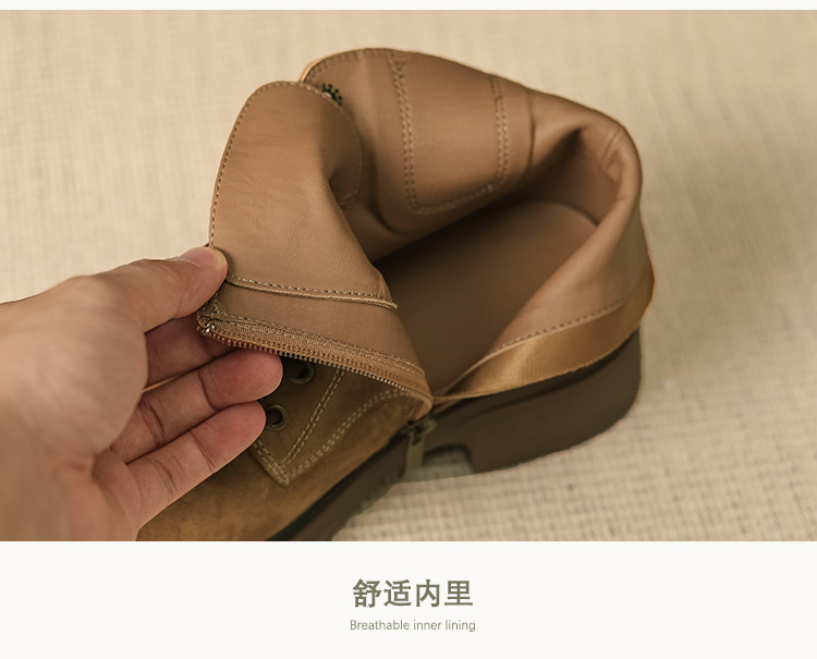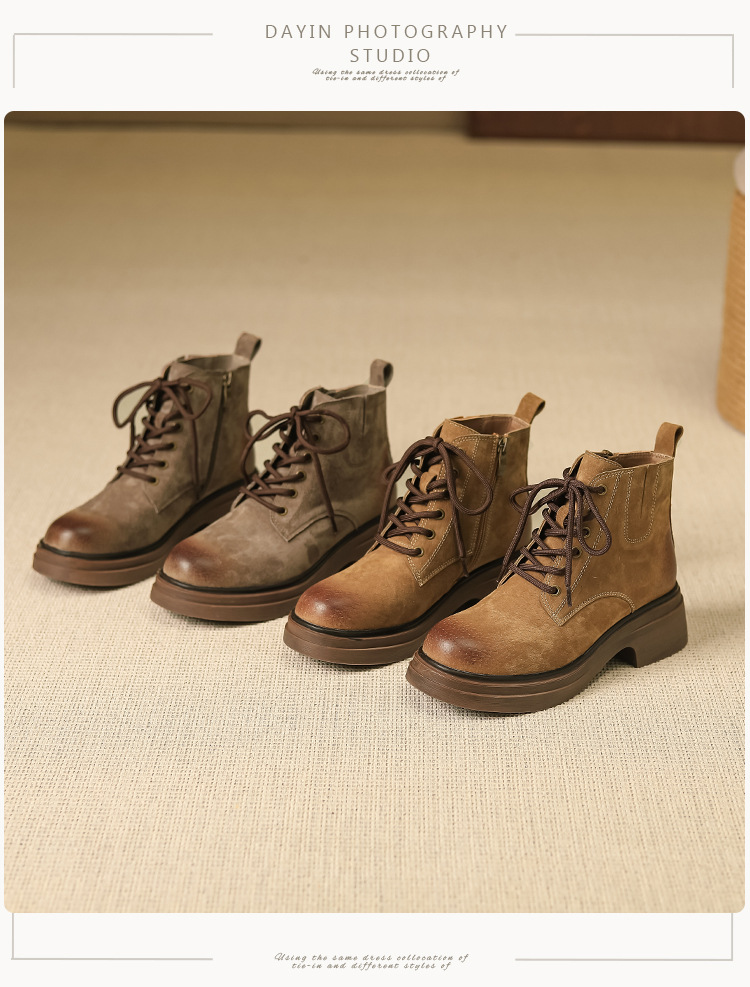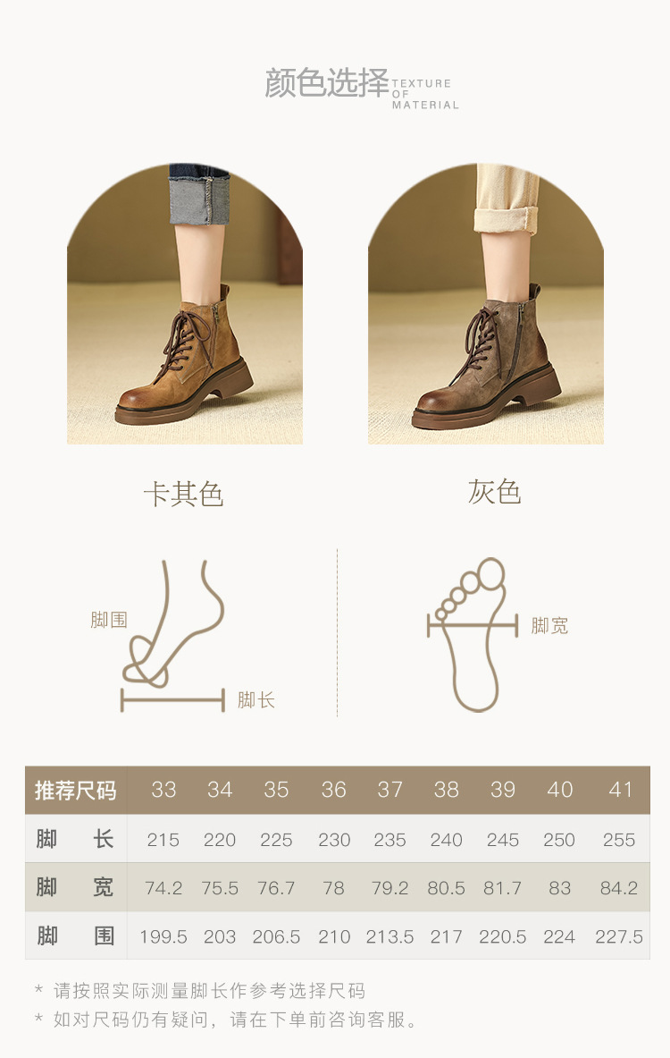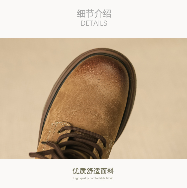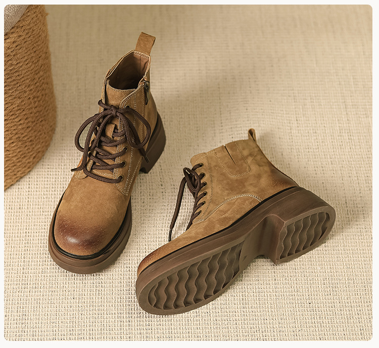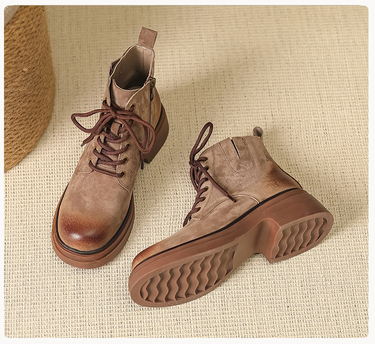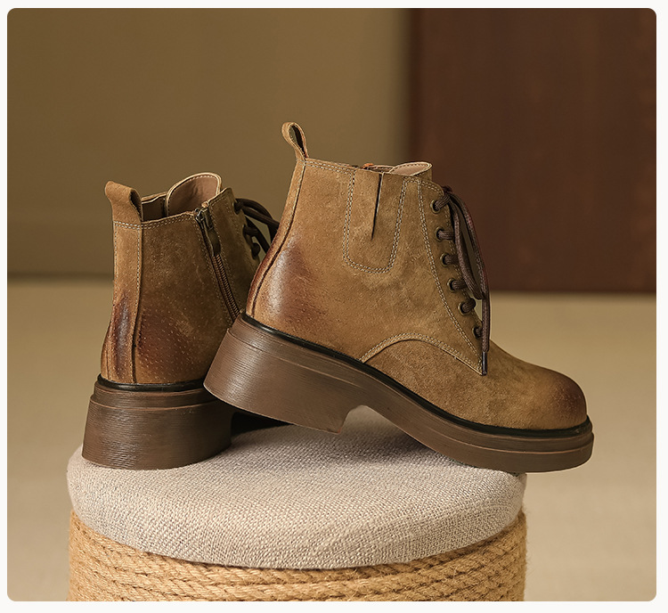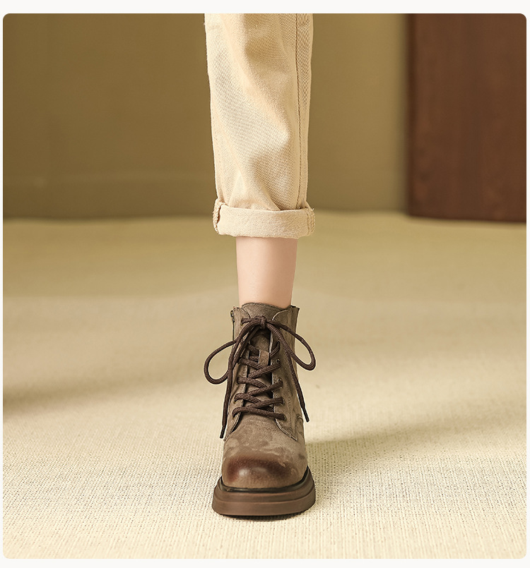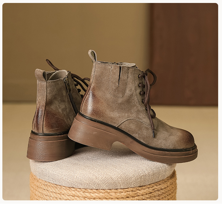 【女鞋专场】全真皮复古时尚系带马丁靴女2023年秋冬新款圆头厚底擦色短靴女款