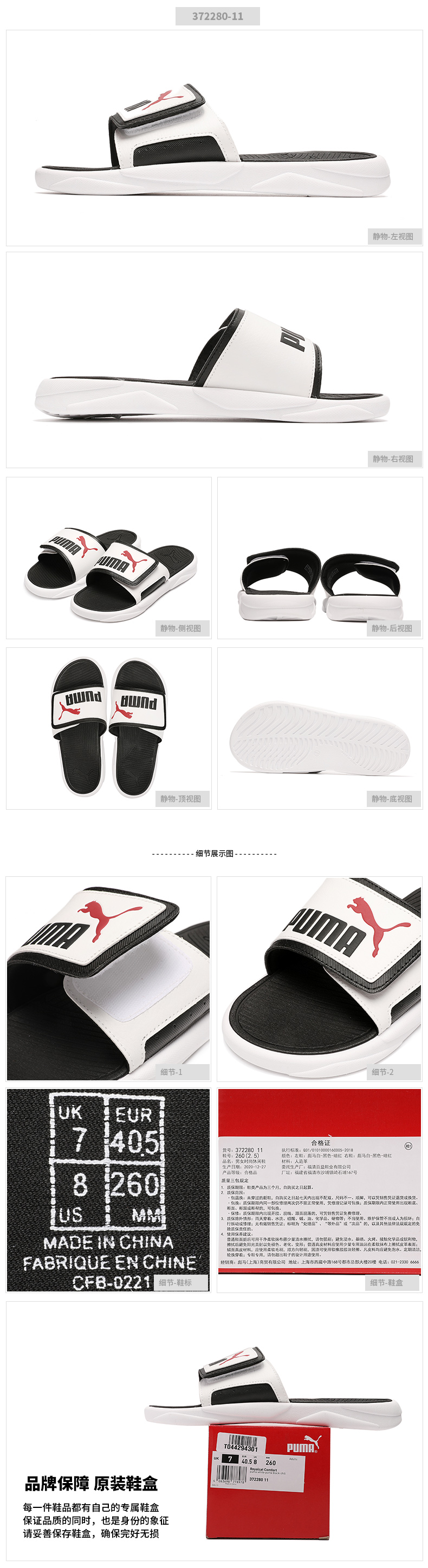 PUMA彪马运动拖鞋男鞋女鞋2021夏季情侣魔术贴沙滩凉鞋 372280-11