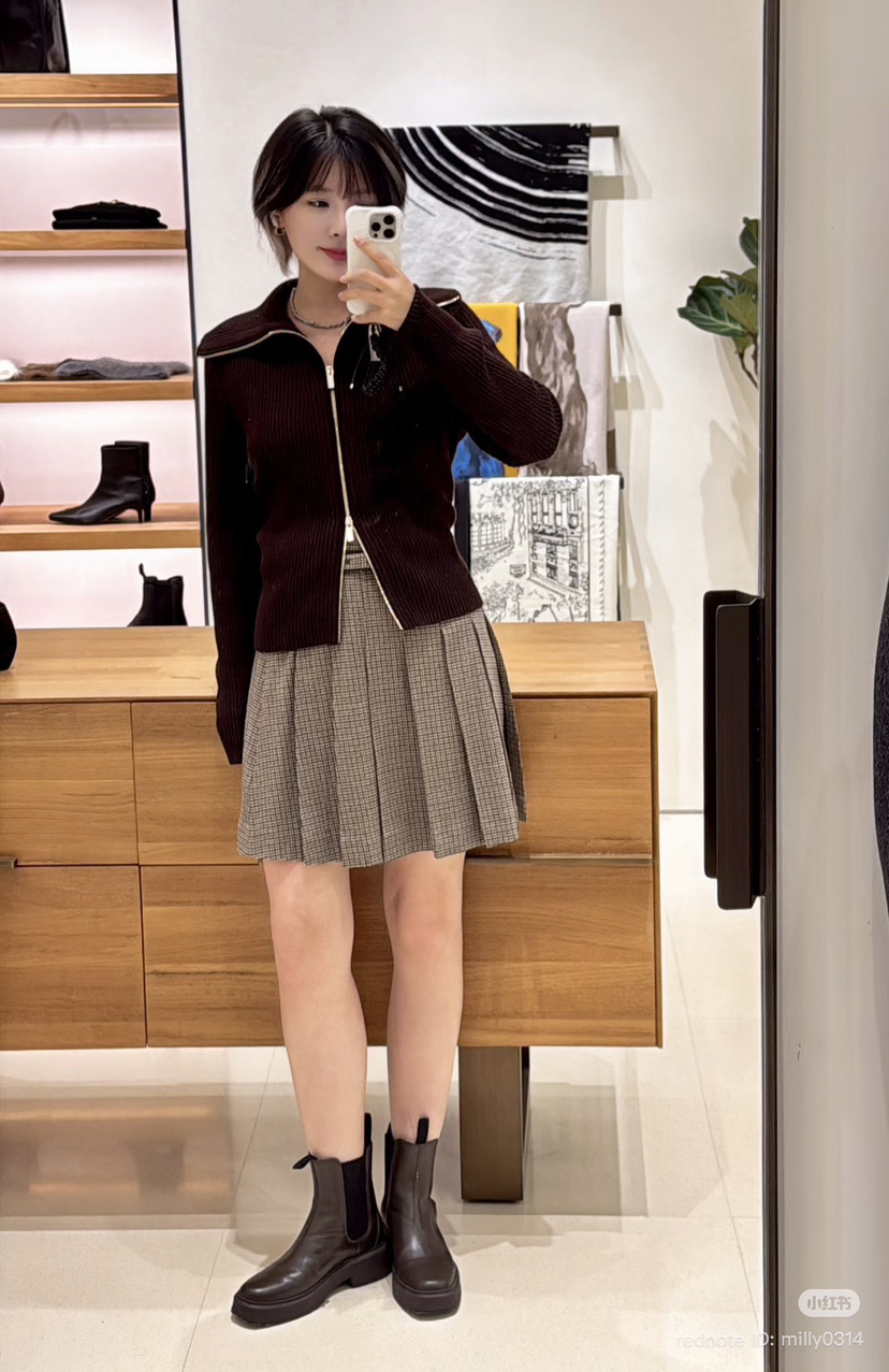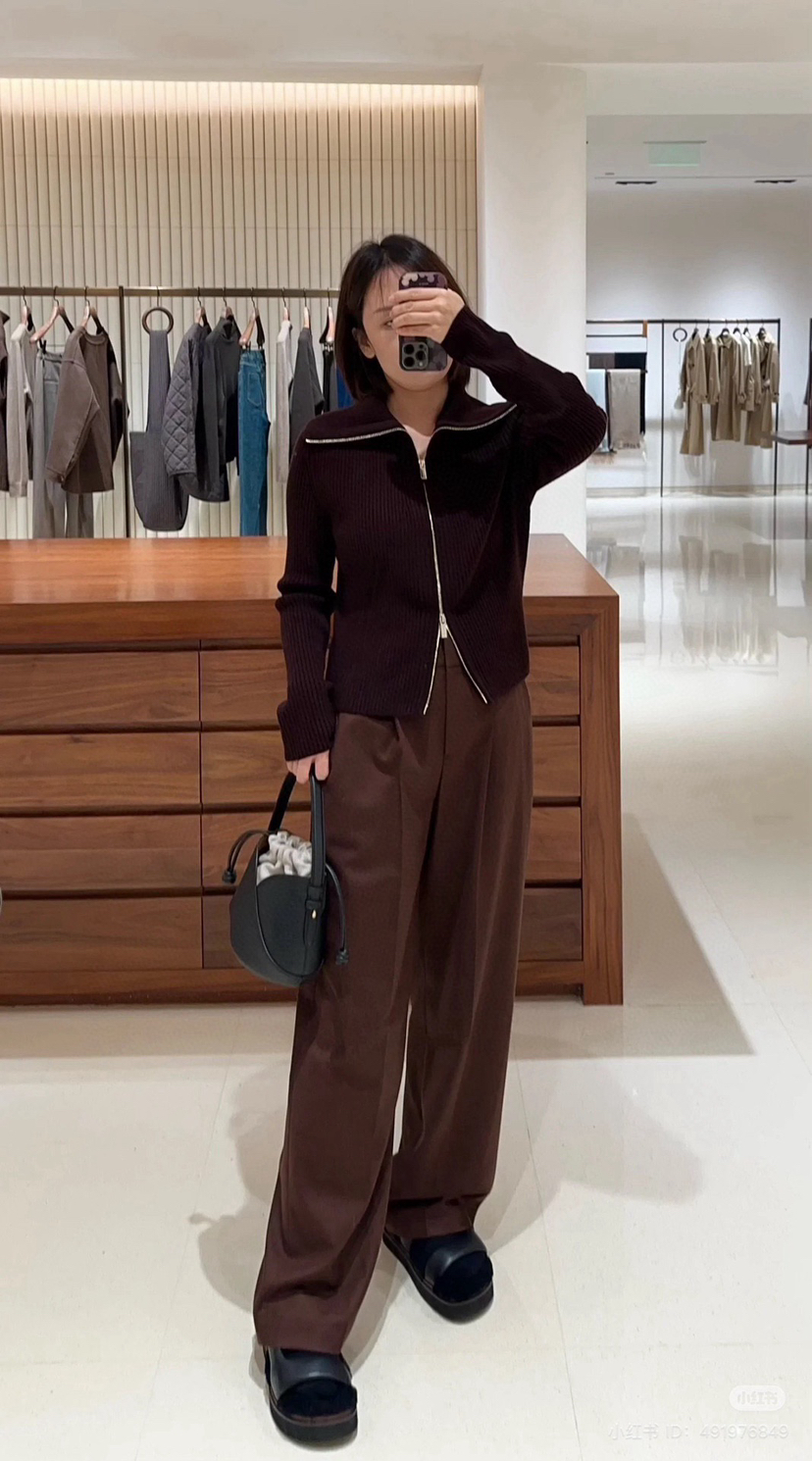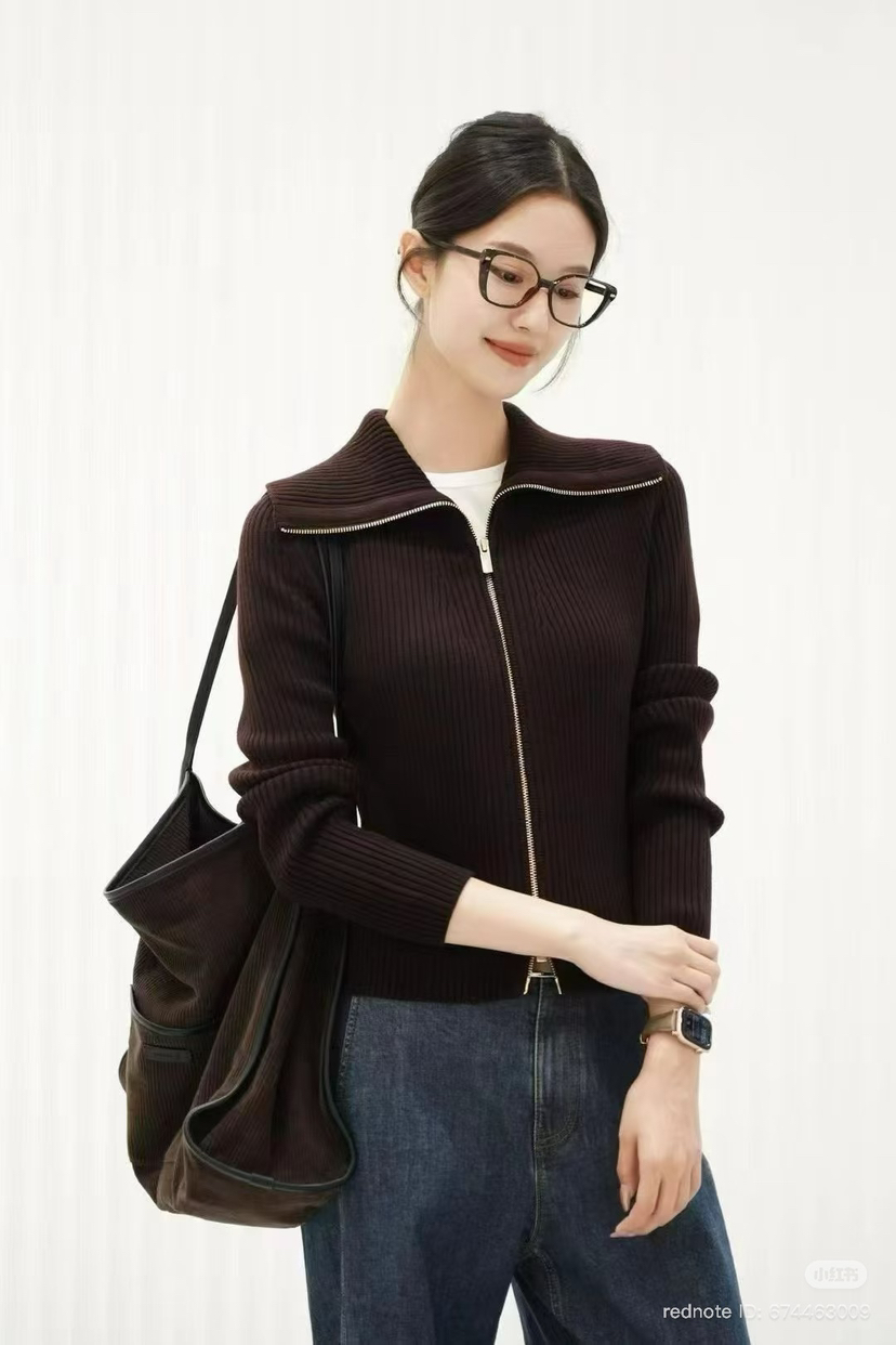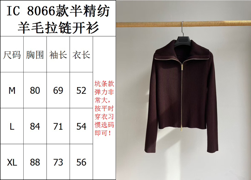 22-3 独家圆正 小禾 半精纺羊毛 栗子红 拉链针织开衫 我穿XL