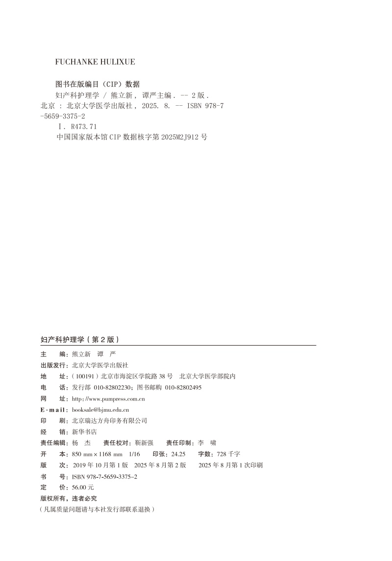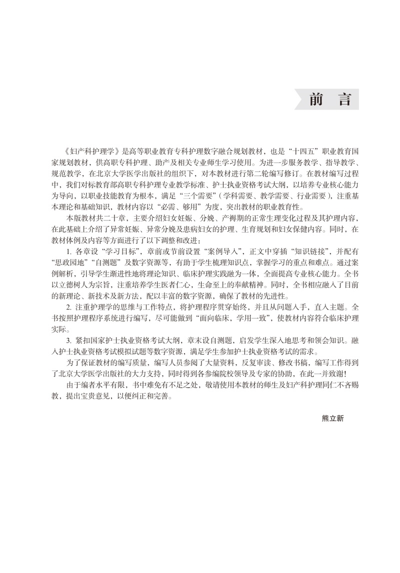 妇产科护理学 第2二版 十四五卫生高等职业教育专科校院合作“双元”规划教材 熊立新 谭严 妇产科学 护理学 北京大学医学出版社