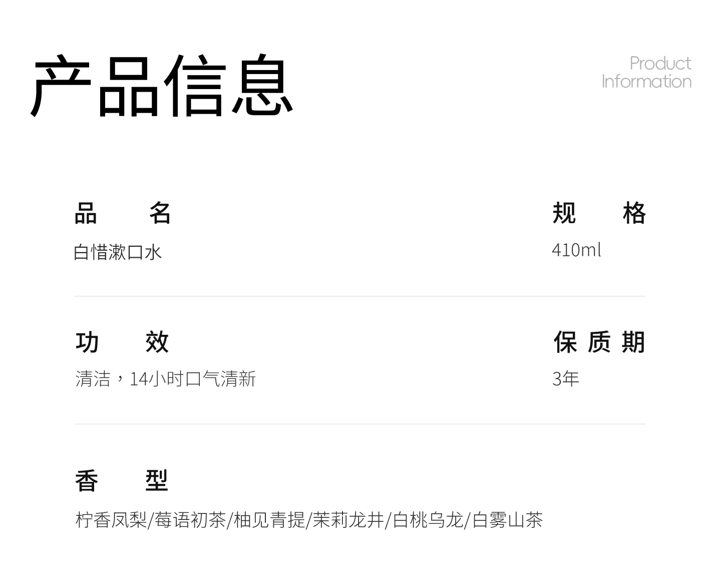 ☆白惜瓶装漱口水410ml/瓶(赠12ml*10条漱口水)