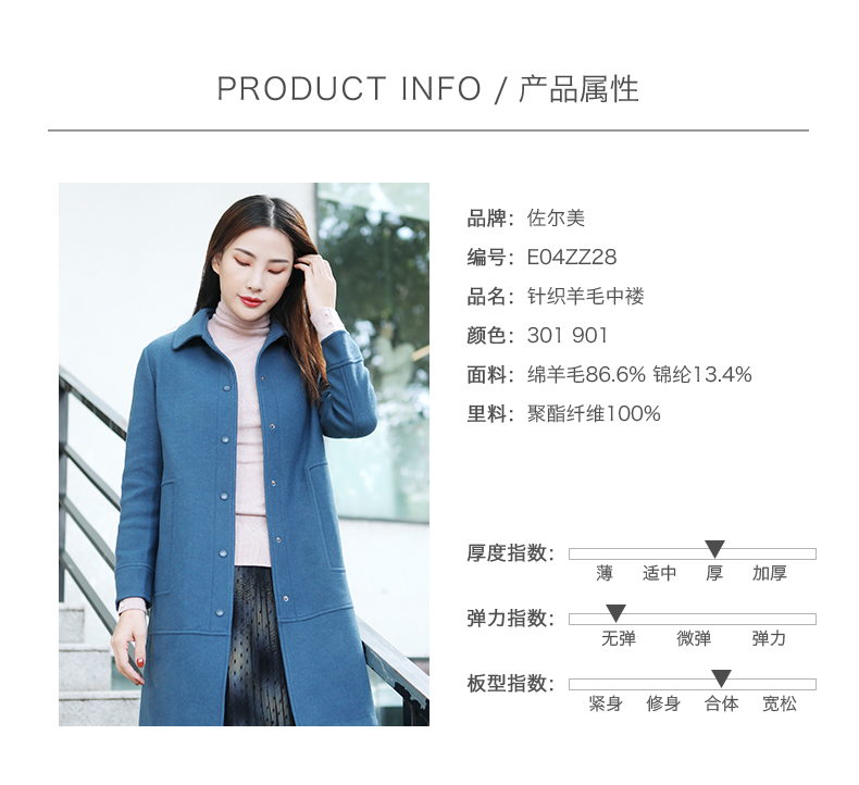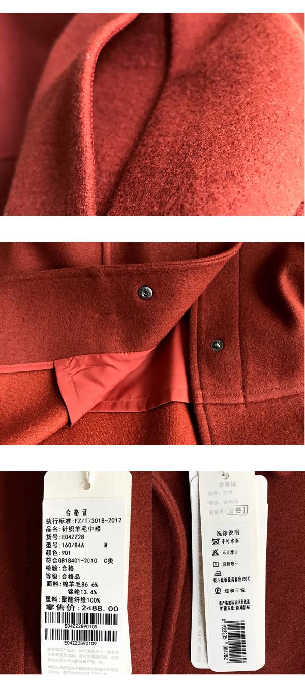 佐尔美商场同款气质简约中长款针织羊毛大衣女E04ZZ28