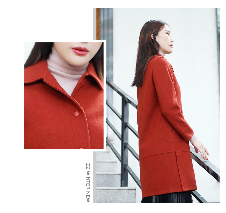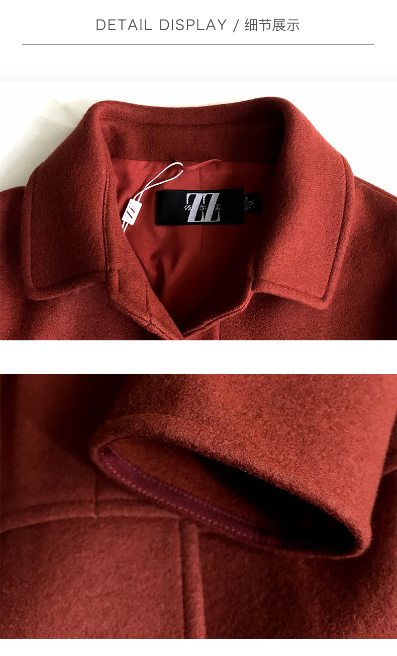 佐尔美新品秋冬新品纯色复古单排扣短款女毛呢外套E64ZD24